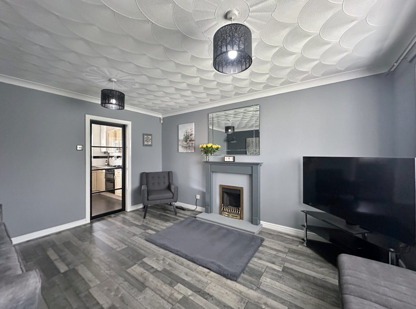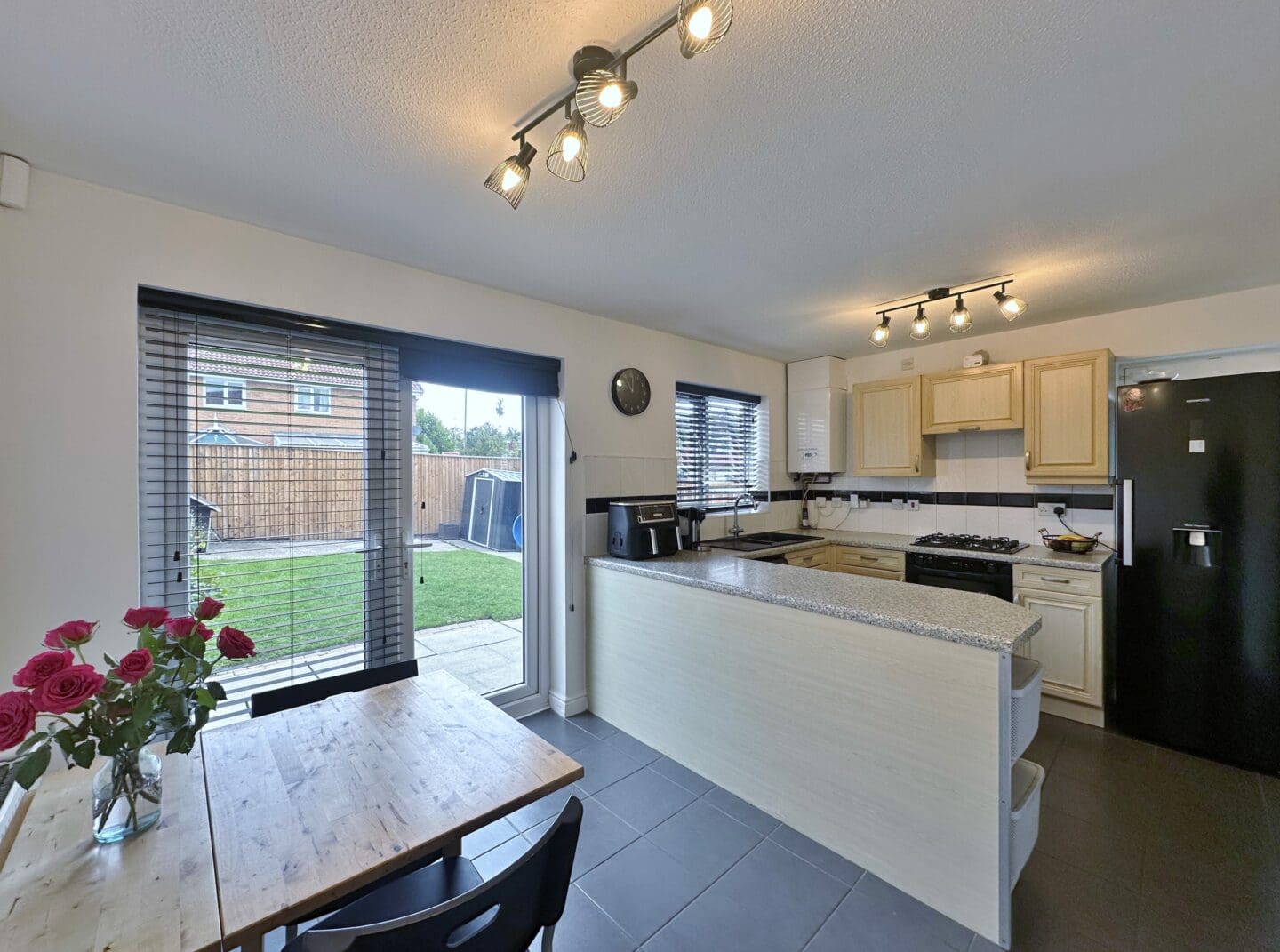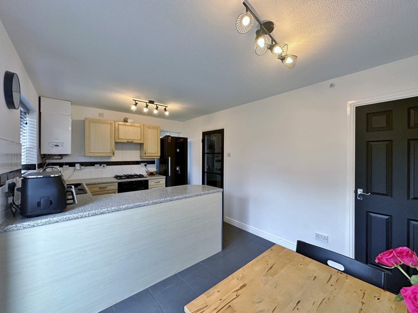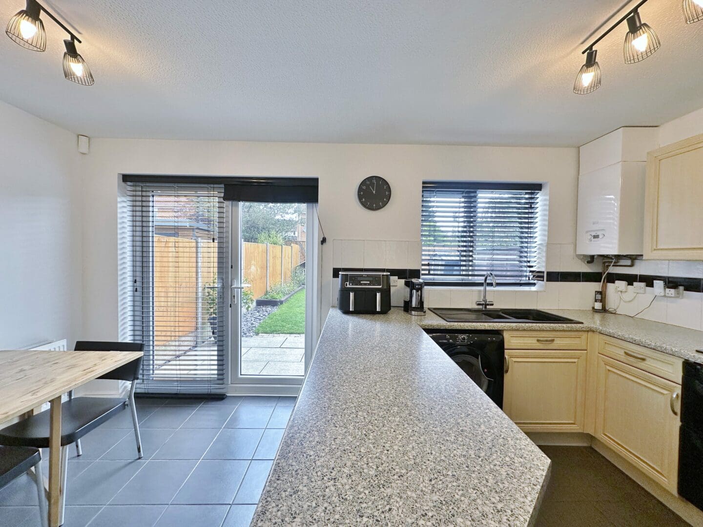 From the moment you step inside, a hallway leads through to a spacious lounge, filled with natural light, and a well planned kitchen diner. The kitchen is fitted with a range of modern units and appliances, while patio doors open seamlessly onto the attractive rear garden, making it a perfect space for both everyday family life and entertaining. To the first floor, the accommodation continues to impress with a master bedroom complete with an en suite shower room. Two further bedrooms and a stylish family bathroom complete the layout. The property also benefits from a recently fitted boiler, still under warranty, giving buyers added peace of mind.