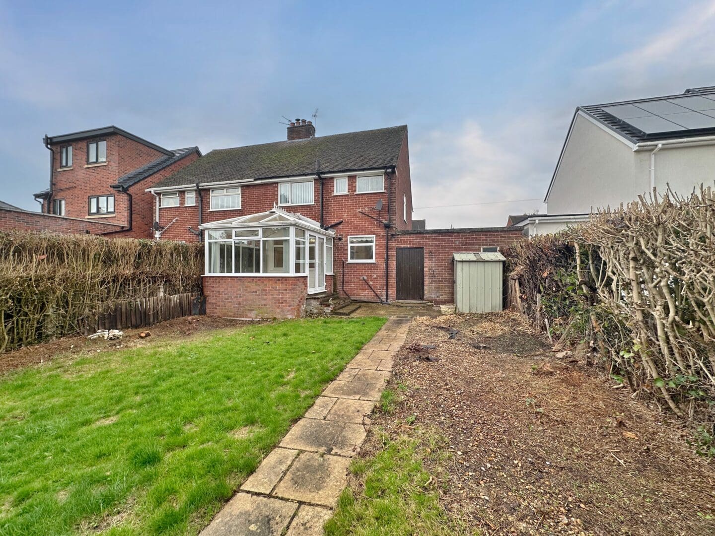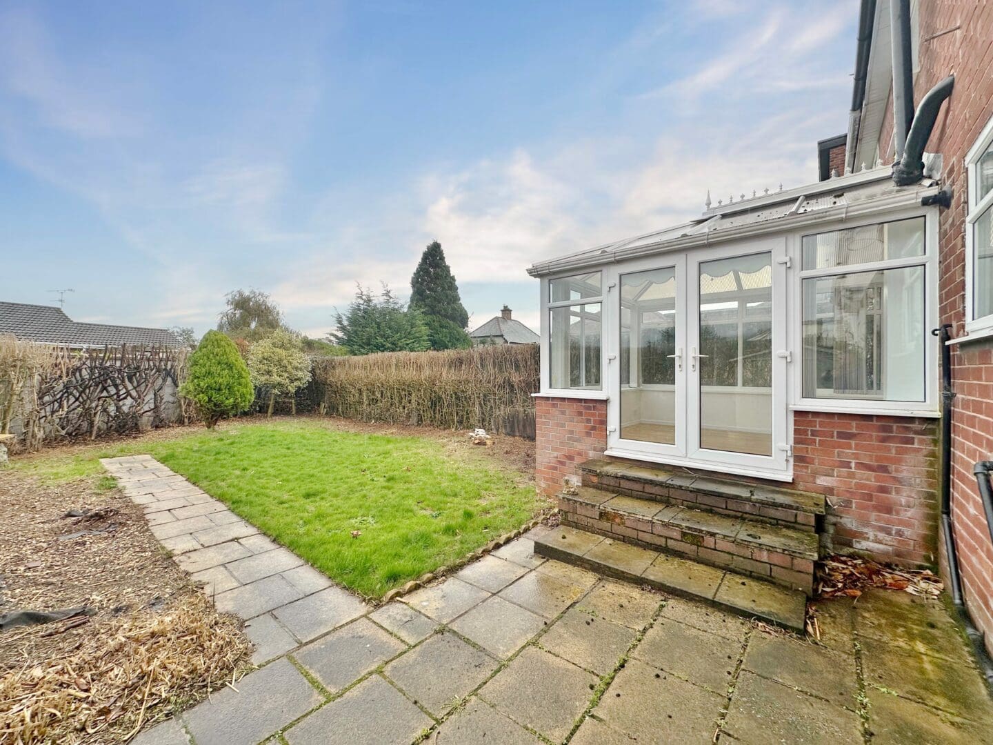 Upon entering, you are greeted by a welcoming hallway leading to a spacious lounge with feature fireplace. The dining room flows seamlessly into the conservatory, offering lovely views of the rear garden and providing an excellent space for entertaining or relaxing. Completing the ground floor is a fitted kitchen, offering plenty of storage and workspace. To the first floor, there are three well proportioned bedrooms, all light and airy, along with a three piece bathroom suite. Externally, the property benefits from off road parking, front garden and to the rear, a generous private garden mainly laid to lawn with patio area all enjoying a high degree of privacy There is also a useful outhouse with a WC, adding further convenience.