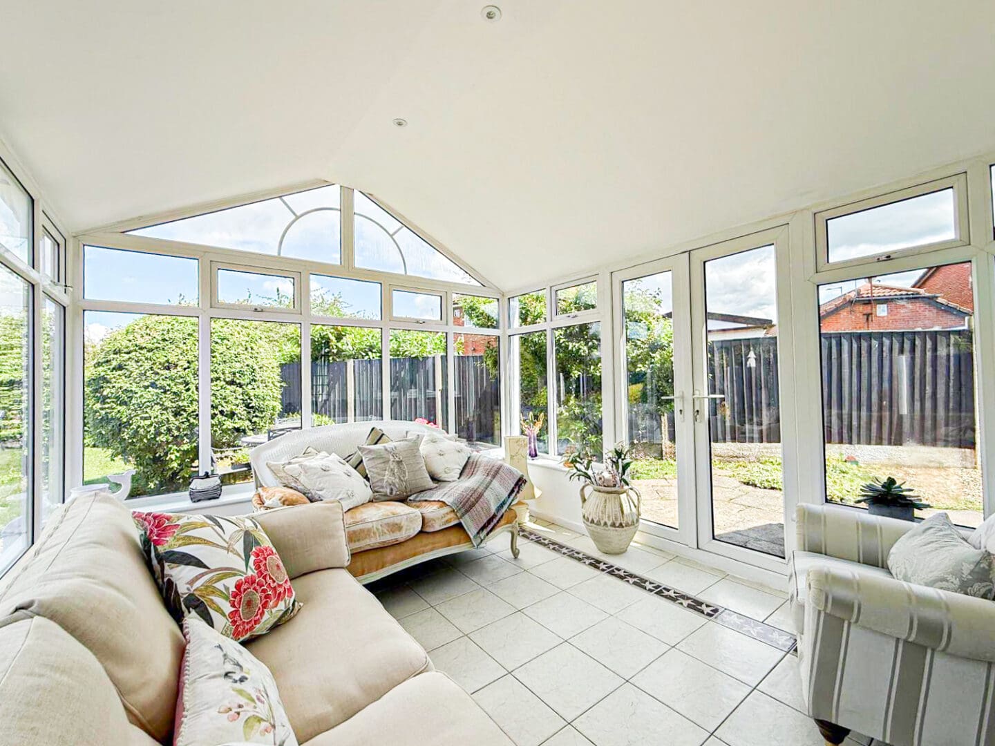 Following through the entrance hall, you are led into a spacious reception room which enjoys a bay window flooding the space with natural light. Finished in a tasteful neutral décor which complements the feature fireplace and attractive wood style flooring, this presents a welcoming space to relax and entertain guests. This is followed by a modern kitchen complete with a range of stylish fitted base and wall units and complementary worktops providing plentiful surface space. The sleeping accommodation consists of two well-proportioned bedrooms, each beautifully presented and receiving an abundance of daylight. The master bedroom boasts fitted wardrobes whilst the second bedroom, currently in use as a dining room, features a set of French doors into the conservatory which provides a charming additional sitting area where views of the garden can be enjoyed. Adding the finishing touch to the interior of this wonderful home is a contemporary style family shower room.
