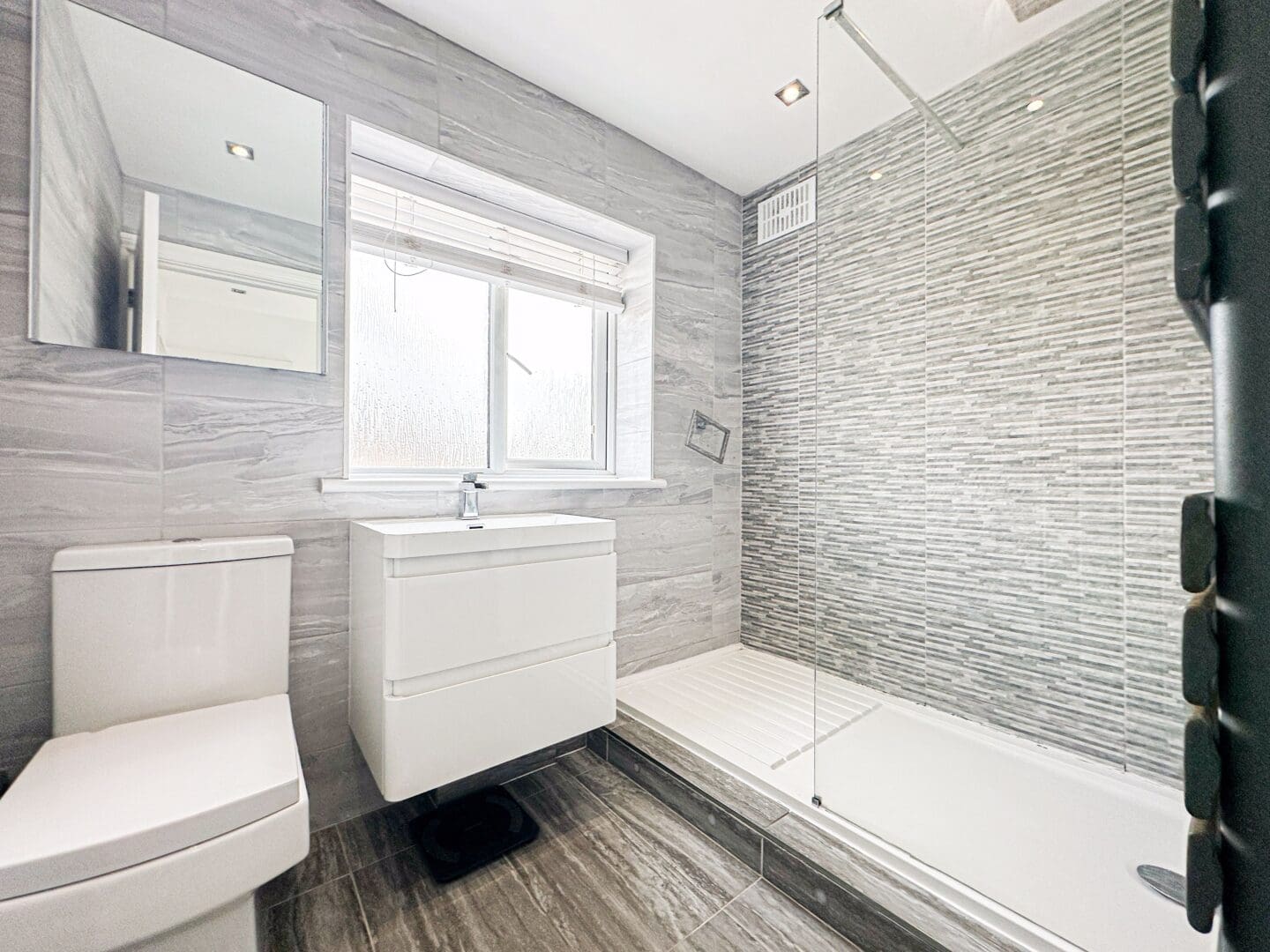 The high quality continues to the first floor, where you will discover two generously sized double bedrooms and a well-proportioned single bedroom, each finished to an impeccable standard featuring plush carpeting throughout, with the two primary bedrooms enjoying fitted wardrobes. Accompanying the sleeping accommodation and adding the finishing touch to this exceptional home is a luxurious contemporary style three-piece family bathroom suite.