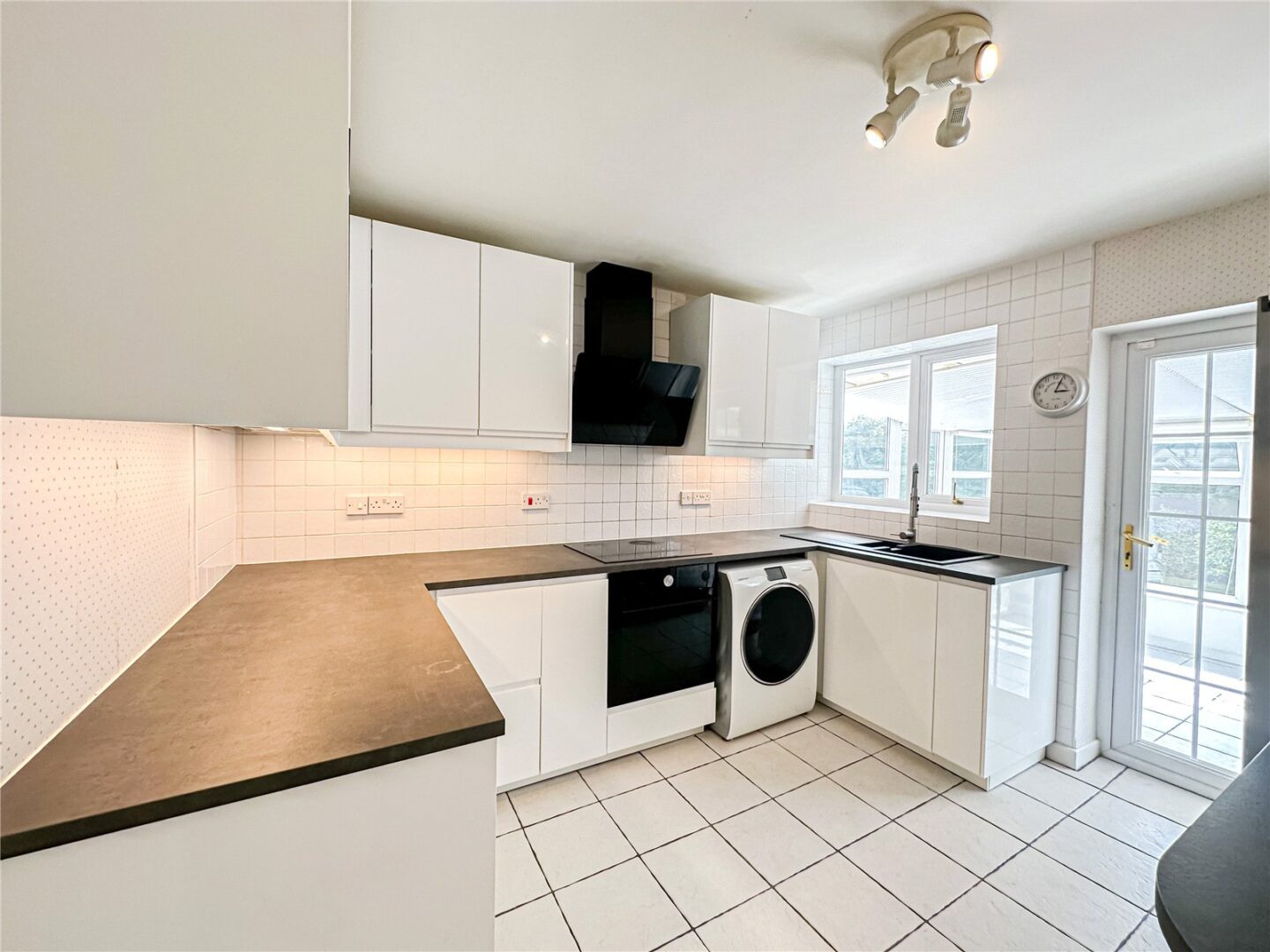 The accommodation comprises an inviting entrance hall with parquet-style flooring leading into a bright and spacious family lounge, complete with sliding doors that open directly onto the rear garden. The modern fitted kitchen provides ample storage and workspace and leads into a well-maintained conservatory – an ideal space to relax and enjoy views of the garden.