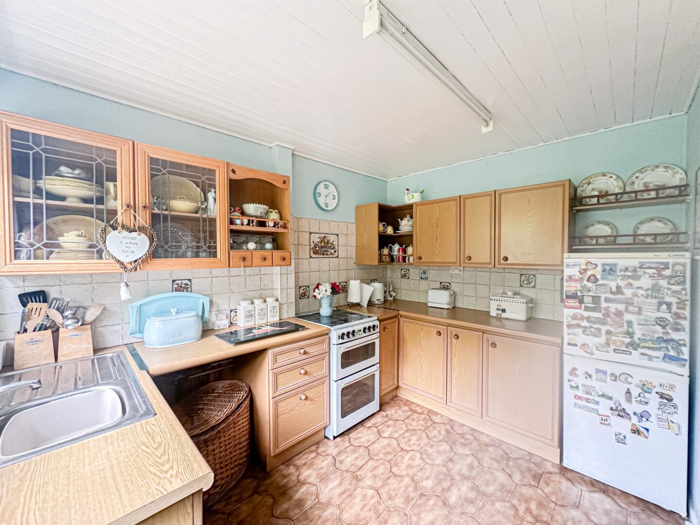 You are greeted into the property by an inviting entrance hall leading into a welcoming family lounge, finished in a neutral décor which complements the feature fireplace. This is followed by a sizable fitted kitchen which offers scope for modernisation, and concluding the ground floor is a convenient WC.