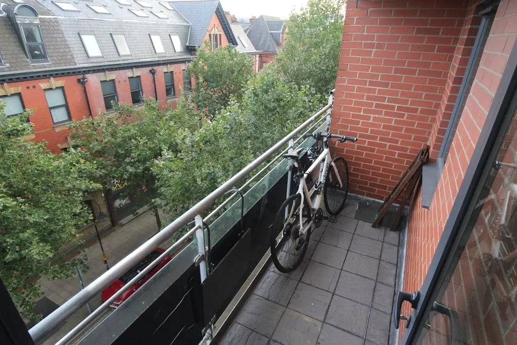 There are two generously sized double bedrooms, including a master with an en-suite shower room and French doors opening onto a private balcony – the perfect spot to relax and enjoy city views. A stylish three-piece family bathroom completes the accommodation.