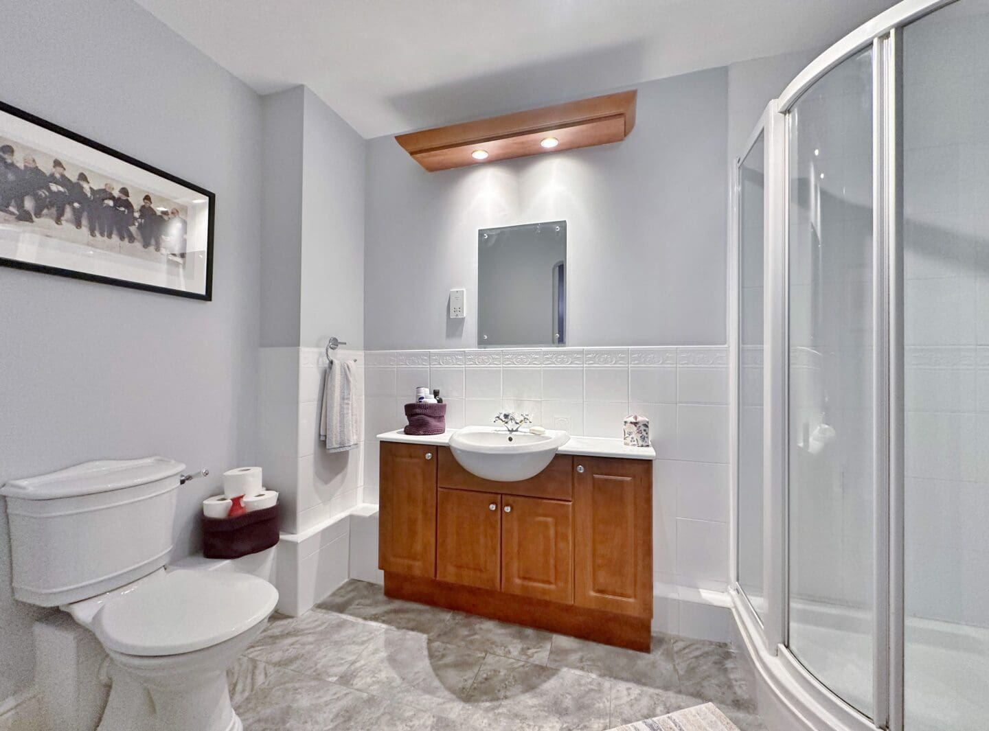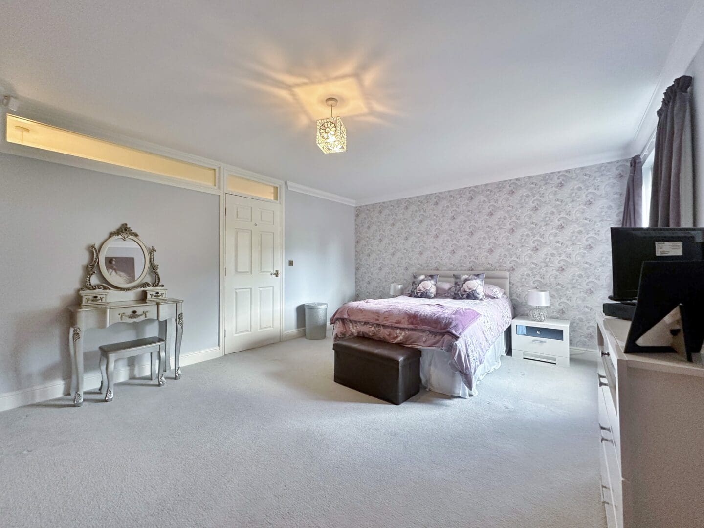 Beautifully presented throughout, the accommodation comprises an entrance hallway with storage, a generous lounge/dining room with Juliette balcony, and a large modern kitchen. There are two double bedrooms, including a principal bedroom with cleverly concealed en suite within fitted wardrobes, plus a separate four piece family bathroom.