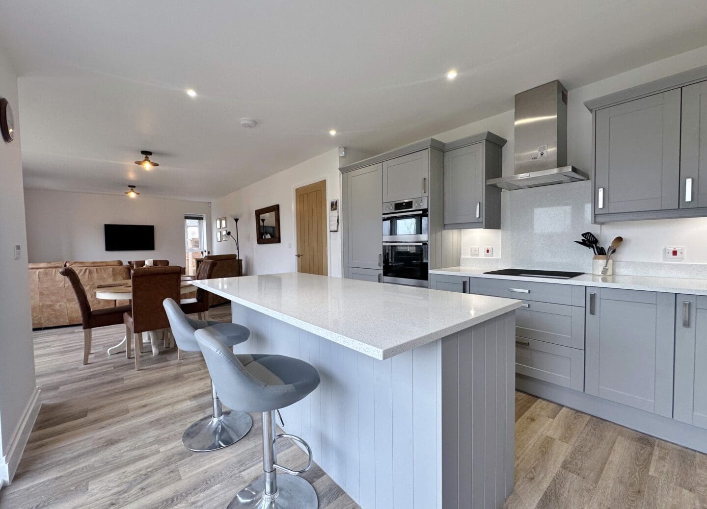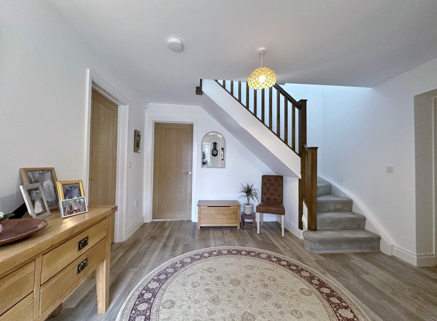 In brief you have a large welcoming hallway with cloakroom and W.C. Separate spacious lounge and to the rear of the property a stunning open plan living kitchen diner, with two sets pf bi-folding doors flooding the room with natural light, bespoke fitted kitchen with appliances and central island and a cosy living area all enjoying delightful views over the garden and across rolling countryside. The ground floor also boasts a useful utility room. To the first floor you have the master bedroom with en suite shower room, three further double bedrooms and a modern bathroom.