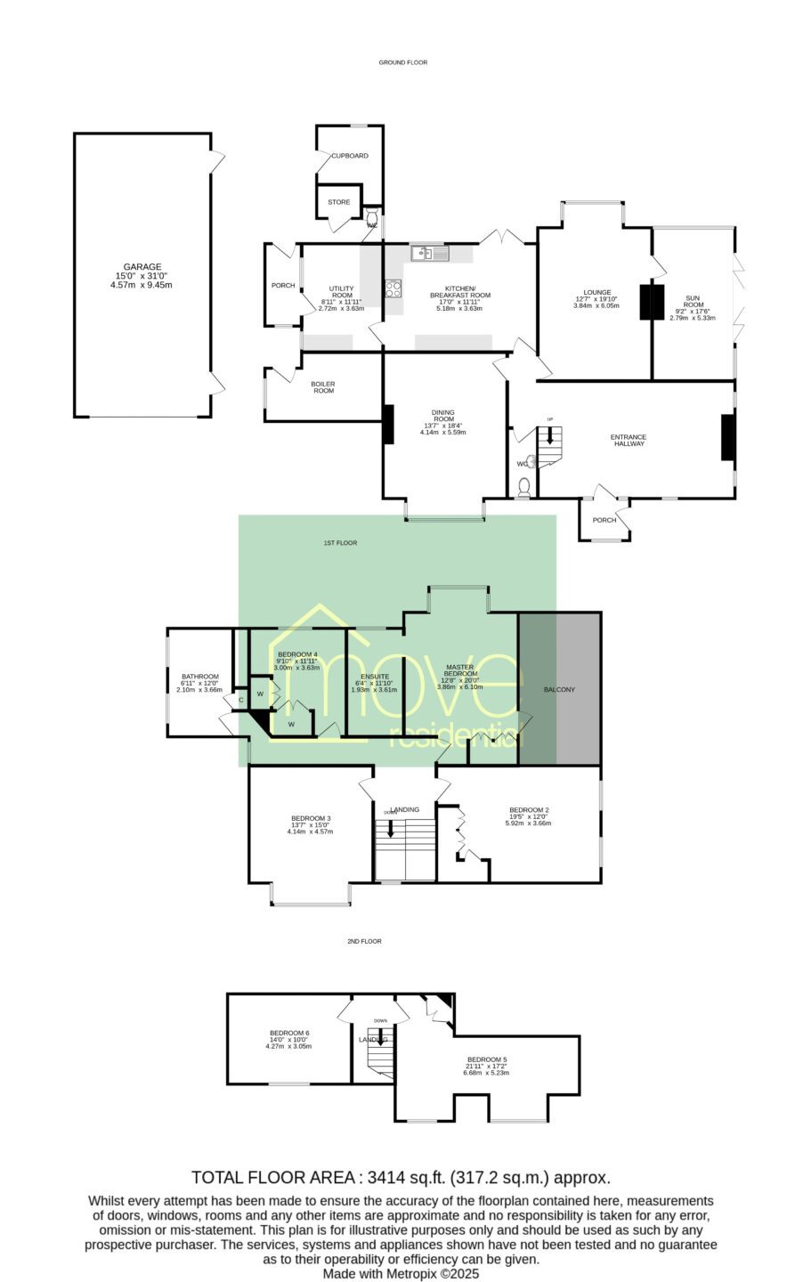 The welcoming entrance hall makes an immediate impression with its open fireplace, sweeping staircase and charming period details. The main reception rooms are both spacious and filled with natural light, including a formal lounge that opens into a bright sunroom and a generous dining room, both featuring bay windows and original fireplaces. The kitchen and breakfast area provide a sociable family space with doors leading directly out to the garden, while a separate utility room and cloakroom add practical convenience. On the first floor, four comfortable double bedrooms are arranged around the landing, each with their own unique character. The principal bedroom enjoys a private ensuite bathroom and a balcony overlooking the gardens, while the remaining rooms are served by a well-appointed family bathroom. The top floor offers two additional double bedrooms, ideal for guests, teenagers or home offices, each with attractive sloping ceilings that enhance the property’s charm.
