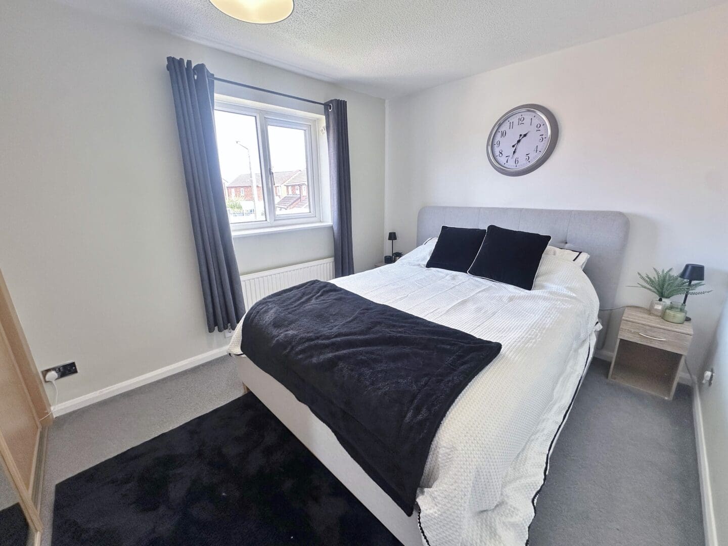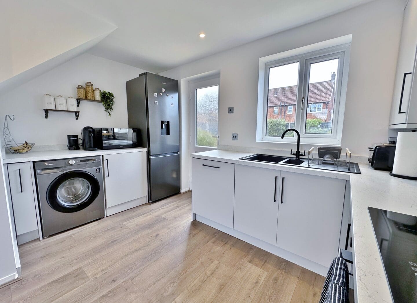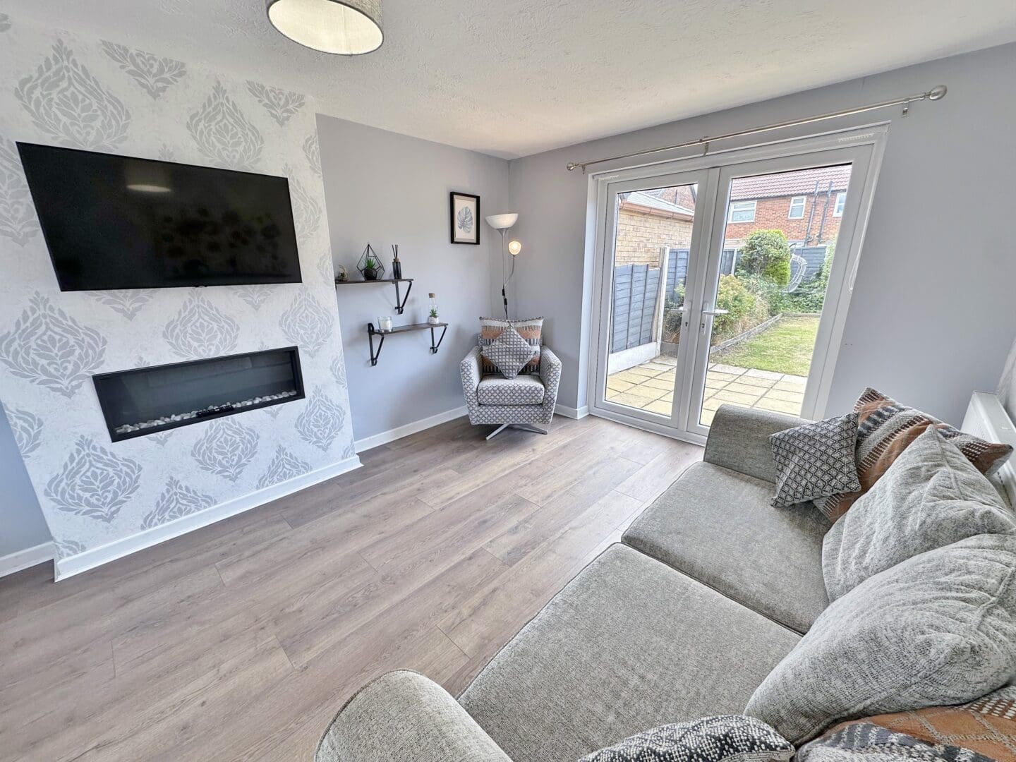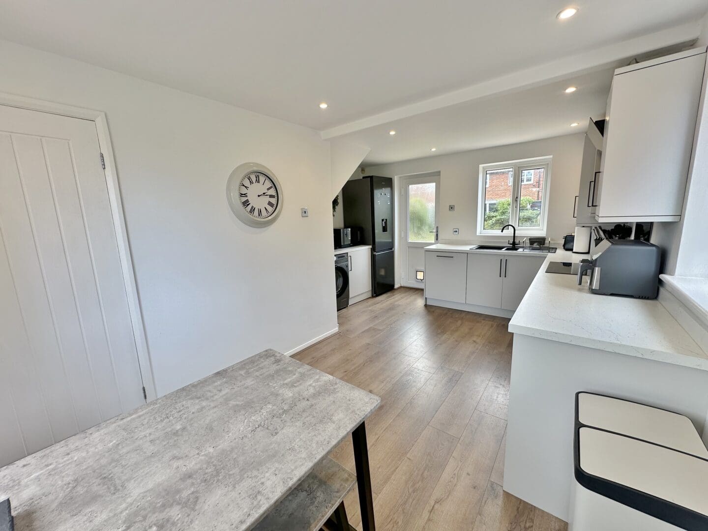 The accommodation briefly comprises a welcoming hallway, a spacious lounge with a stylish feature fireplace, and a large, well fitted kitchen with patio doors leading directly to the beautiful rear garden, the perfect space for entertaining or enjoying sunny days. Upstairs, the property offers two generous double bedrooms, a well proportioned third bedroom and a sleek, modern bathroom. Each room is tastefully finished, providing ready to move into comfort. Outside, the home continues to impress with ample off road parking and a low maintenance front garden.