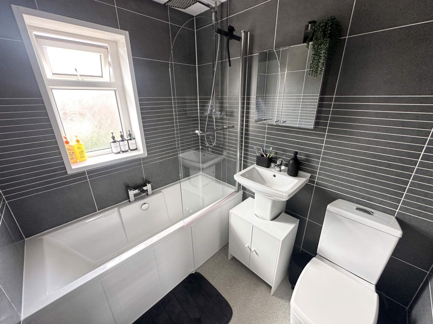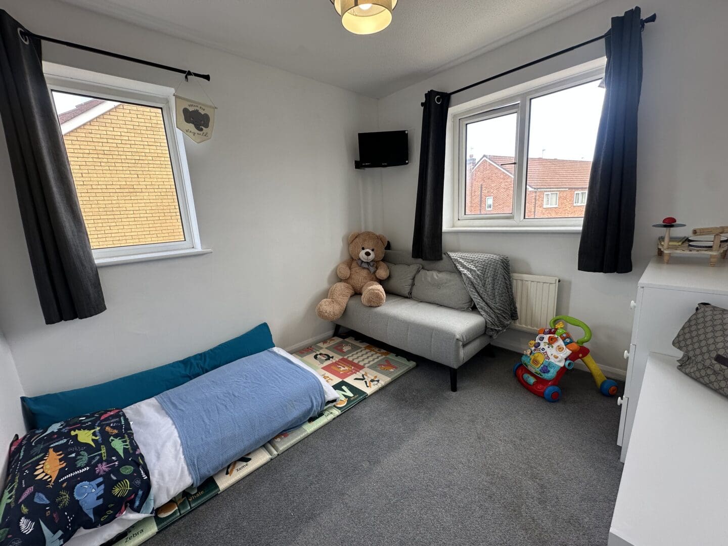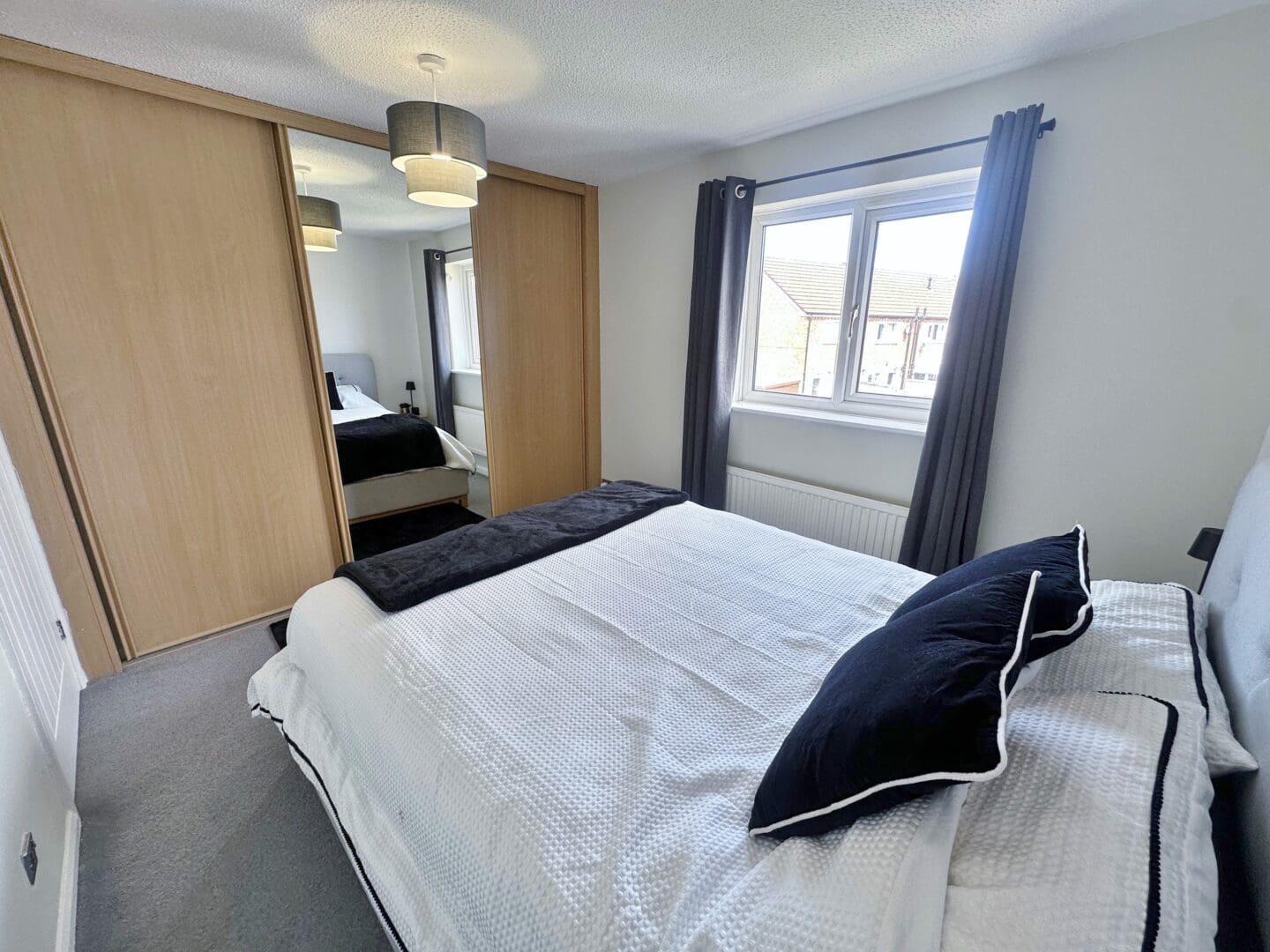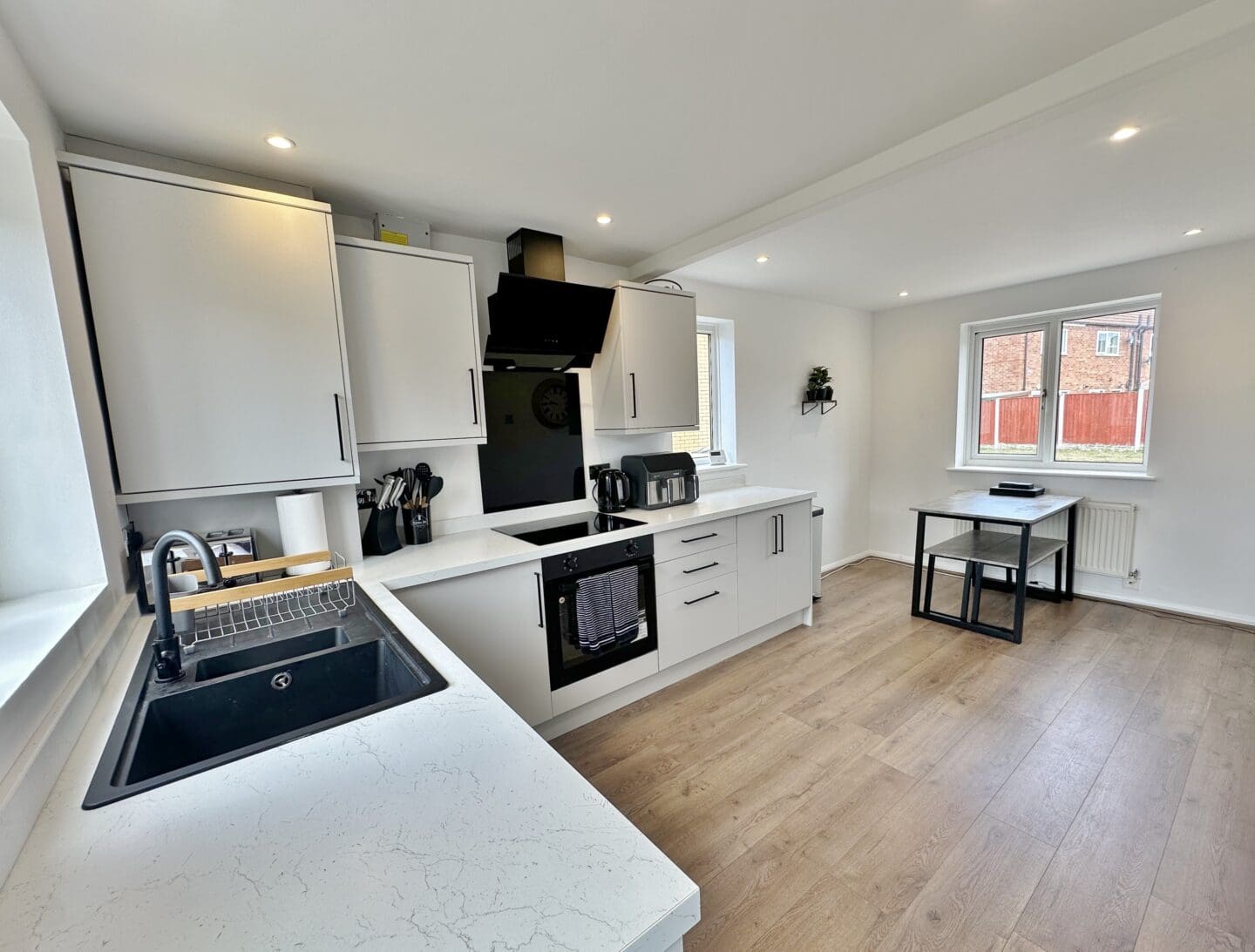 The accommodation briefly comprises a welcoming hallway, a spacious lounge with a stylish feature fireplace, and a large, well fitted kitchen with patio doors leading directly to the beautiful rear garden, the perfect space for entertaining or enjoying sunny days. Upstairs, the property offers two generous double bedrooms, a well proportioned third bedroom and a sleek, modern bathroom. Each room is tastefully finished, providing ready to move into comfort. Outside, the home continues to impress with ample off road parking and a low maintenance front garden.