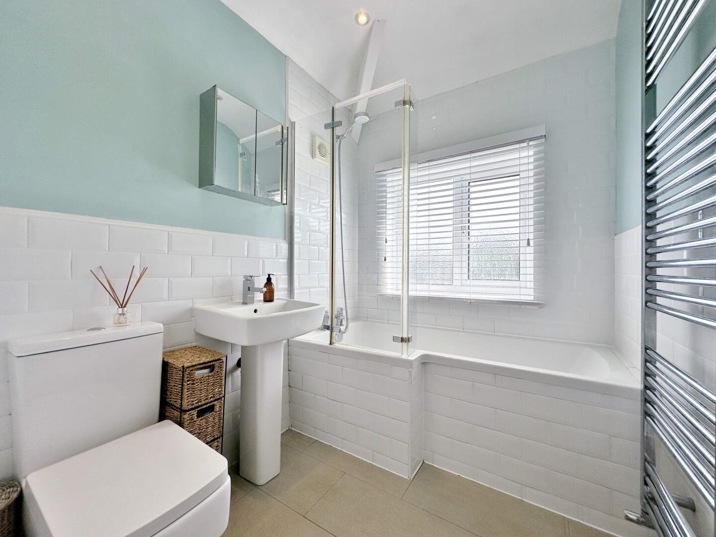 Upon entry, you are welcomed into a spacious hallway leading to a bright and inviting living room with a beautiful bay window that floods the space with natural light and with a feature log burning stove. The heart of the home lies in the generously sized kitchen, which opens into a versatile conservatory, perfect for dining or relaxing while enjoying views over the garden. A separate utility room and convenient downstairs WC add practicality. Upstairs, the home boasts three well proportioned bedrooms, including two spacious doubles and a comfortable single room, the family bathroom completes the first floor.