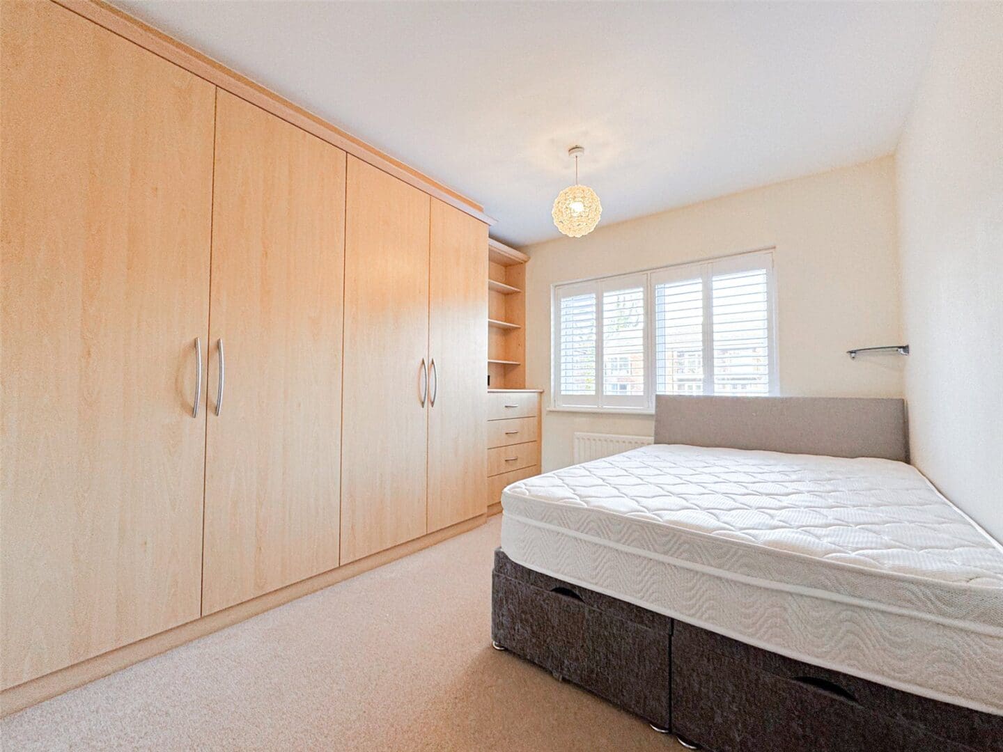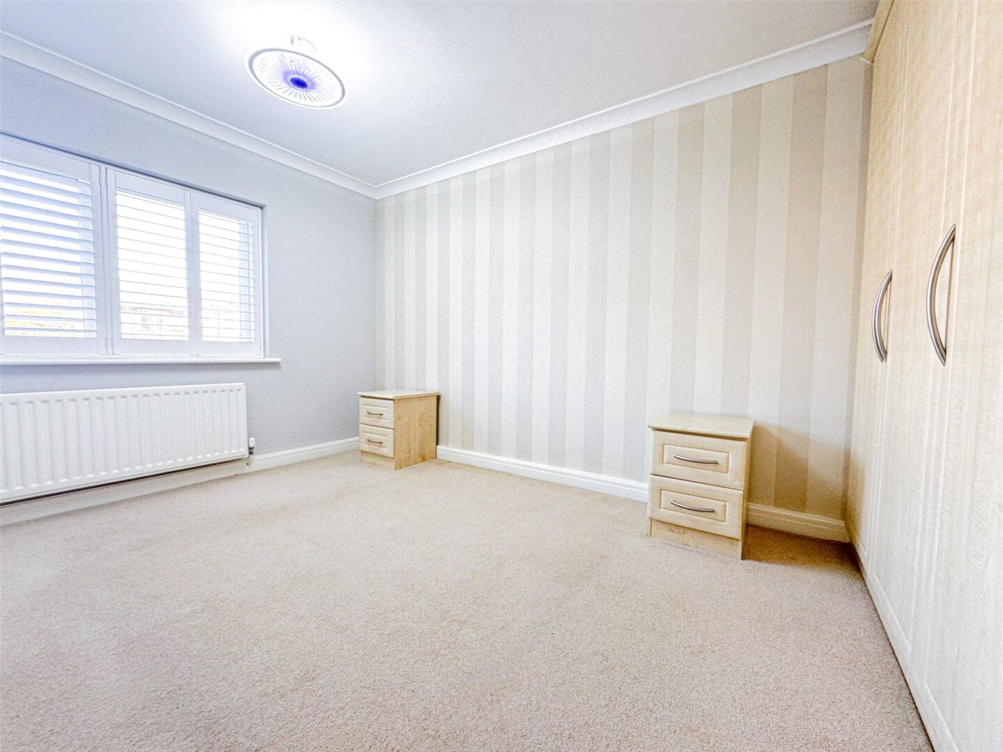 Both double bedrooms are generously sized and benefit from fitted wardrobes, while the contemporary bathroom is fully tiled and features a bath, overhead shower, and stylish vanity unit.