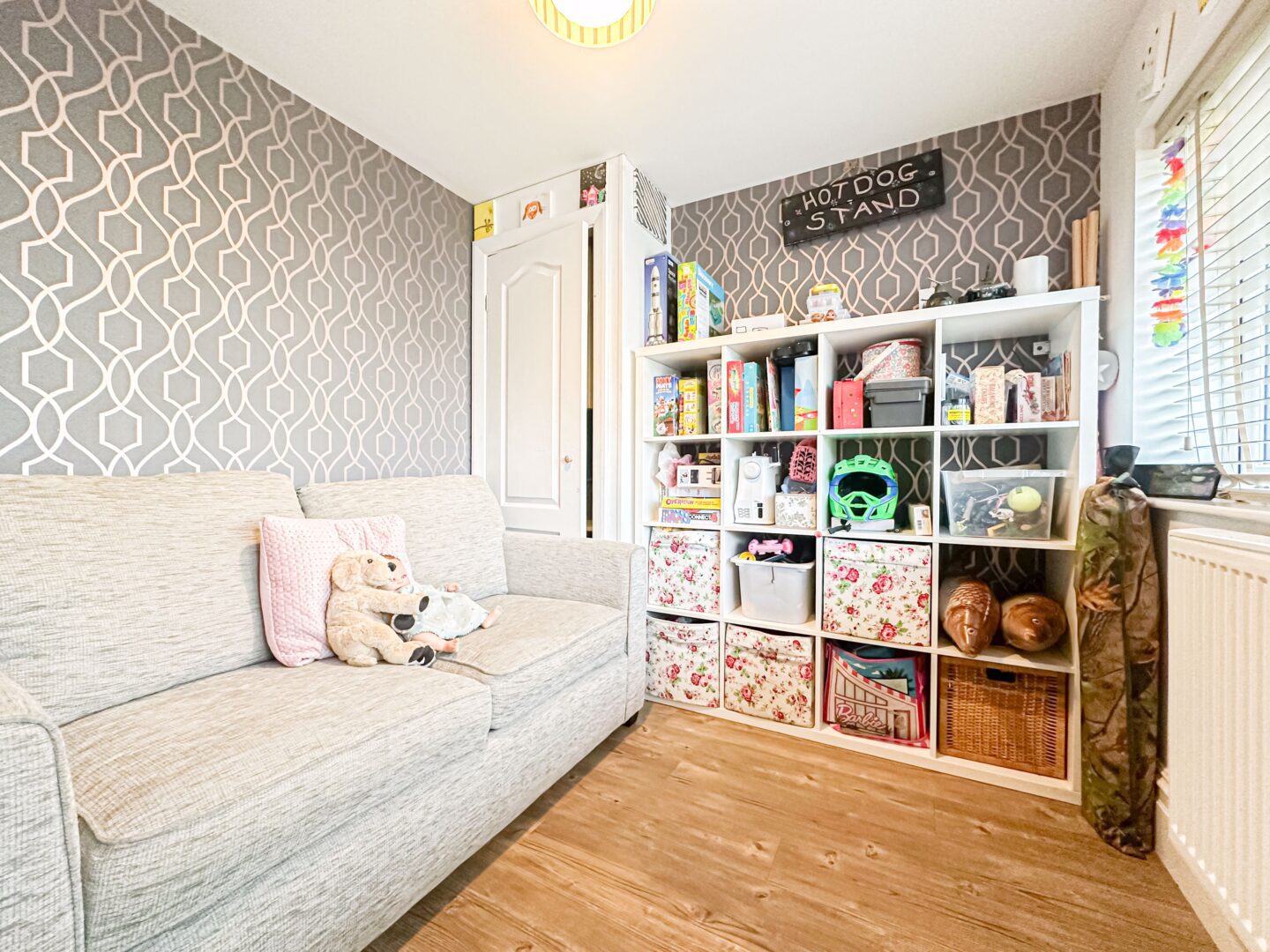 Externally, the property is further enhanced by a meticulously maintained rear garden which backs directly onto the fields behind. Consisting of a neatly manicured lawn offering ample room for recreational activities, and a raised decking area presenting the ideal spot for al-fresco dining and entertaining, this offers a fantastic outdoor space for the whole household to enjoy. To the front, a substantial driveway provides ample off-road parking for two vehicles.
