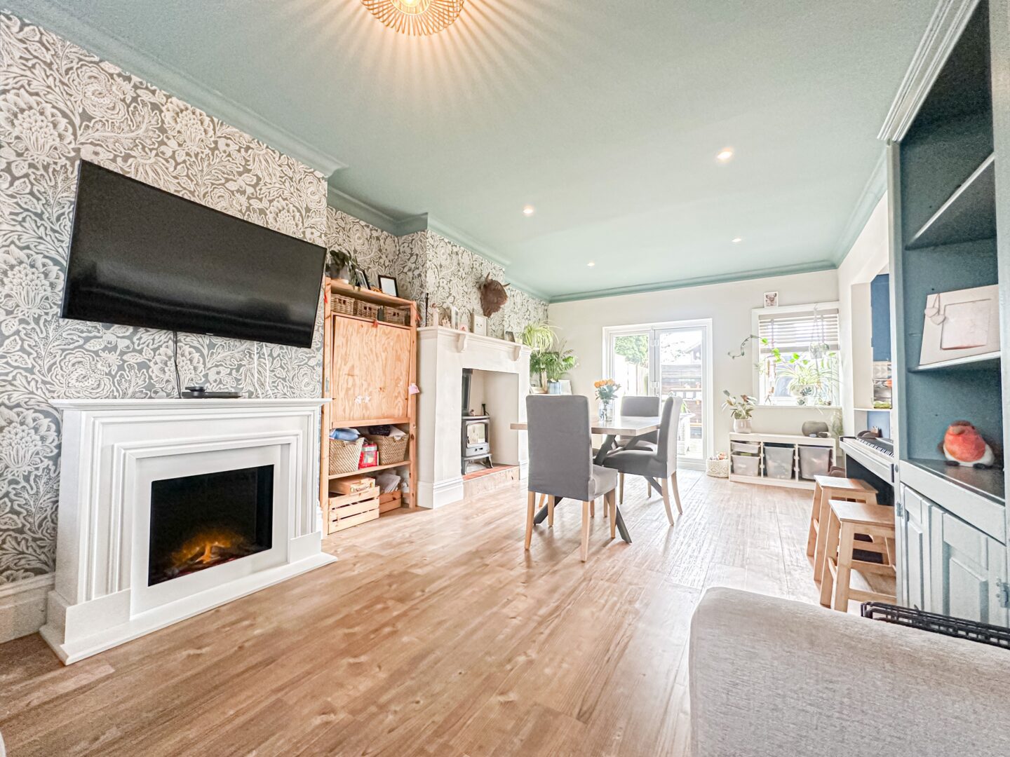 An inviting entrance hall greets you into the property, leading through to a generous and impeccably presented open plan kitchen dining and living space which offers the ultimate social setting for enjoying family mealtimes and entertaining guests. A welcoming lounge area centres around an eye-catching feature fireplace and flows seamlessly through to a delightful dining area boasting a log-burning stove as well as a set of bi-fold doors providing access out to the rear garden. The kitchen is complete with a range of stylish fitted units, complementary worktops providing plentiful surface space, and a selection of integrated appliances. Accessed via the kitchen is a well-equipped utility room, and continuing through you will discover a deluxe shower room, a cosy snug, and concluding the extensive ground floor is a handy boot room.