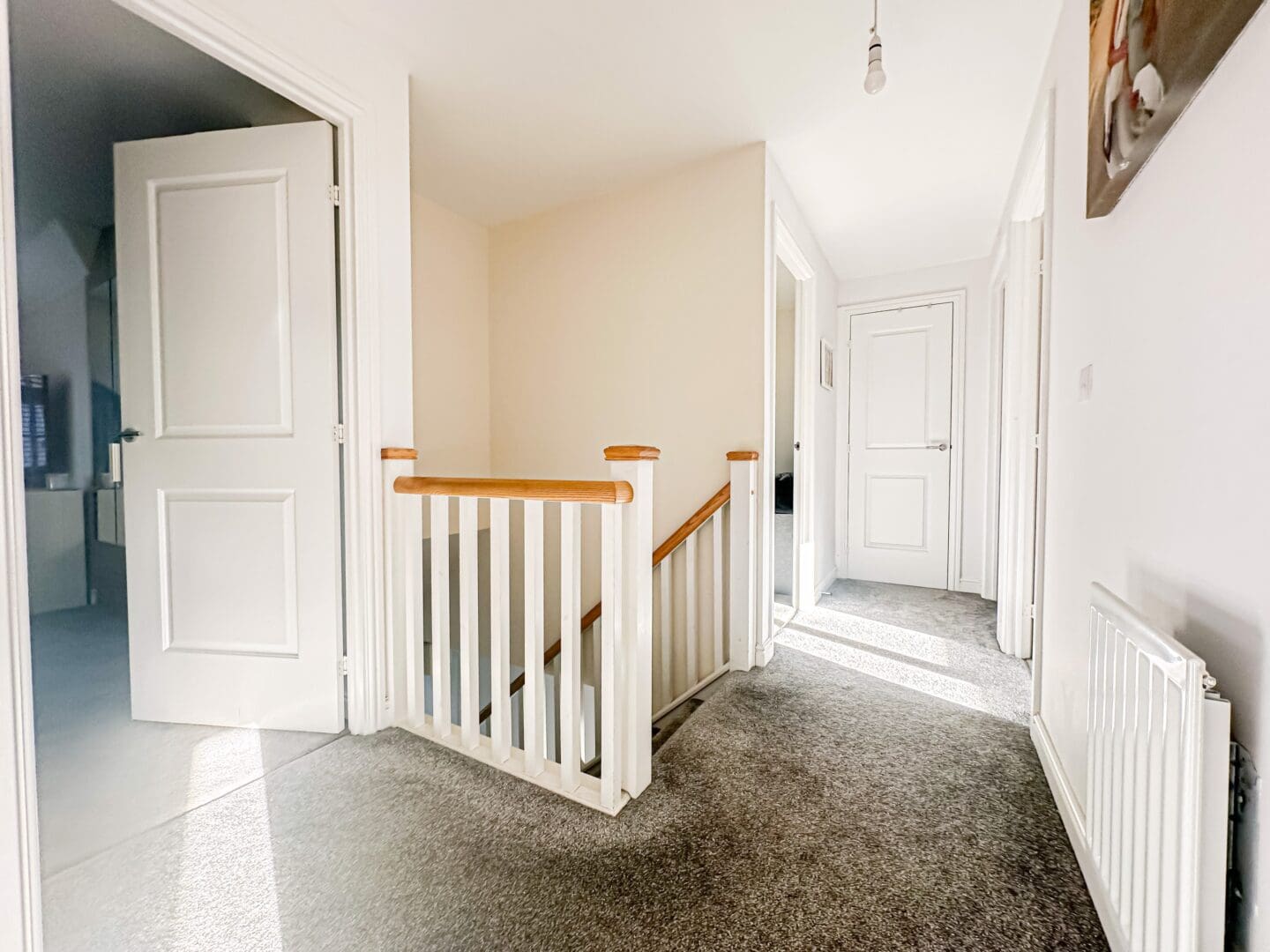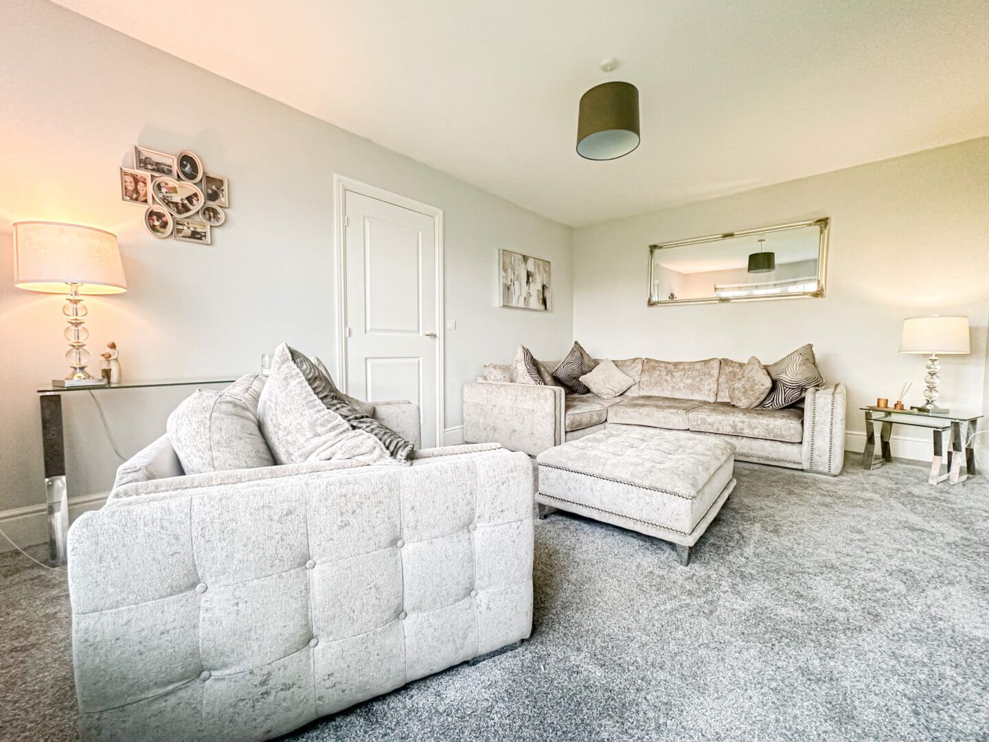 Upon entering the residence you are greeted by an inviting entrance hall which leads through to a spacious and beautifully presented reception room. Flooded with natural light and finished in a tasteful décor featuring plush carpeting, this presents a welcoming space to relax and unwind which has a luxurious feel. At the heart of the home is a generously sized kitchen diner which provides a fabulous social setting, equally suited to enjoying family mealtimes and entertaining guests. The kitchen is complete with a range of stylish fitted base and wall units, complementary worktops providing plentiful surface space, and a selection of sleek integrated appliances. There is ample room to accommodate a dining area where a set of French doors provide views and access out to the rear garden, illuminating the space in daylight. Concluding the ground floor is a well-equipped utility room and convenient WC.