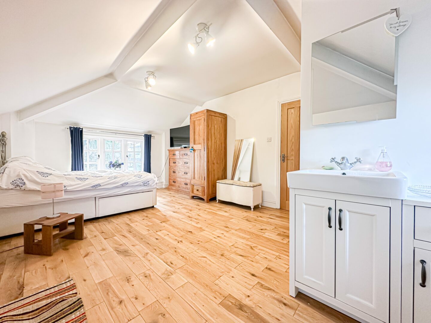 The high quality continues up to the first floor where you will discover three generously sized bedrooms, each beautifully presented and receiving plenty of daylight, featuring characterful slanted ceilings. The master bedroom enjoys the added luxury of ensuite facilities, and adding the perfect finishing touch to the interior of this exceptional home is a showstopping three-piece family bathroom suite, featuring a luxurious clawfoot bathtub.