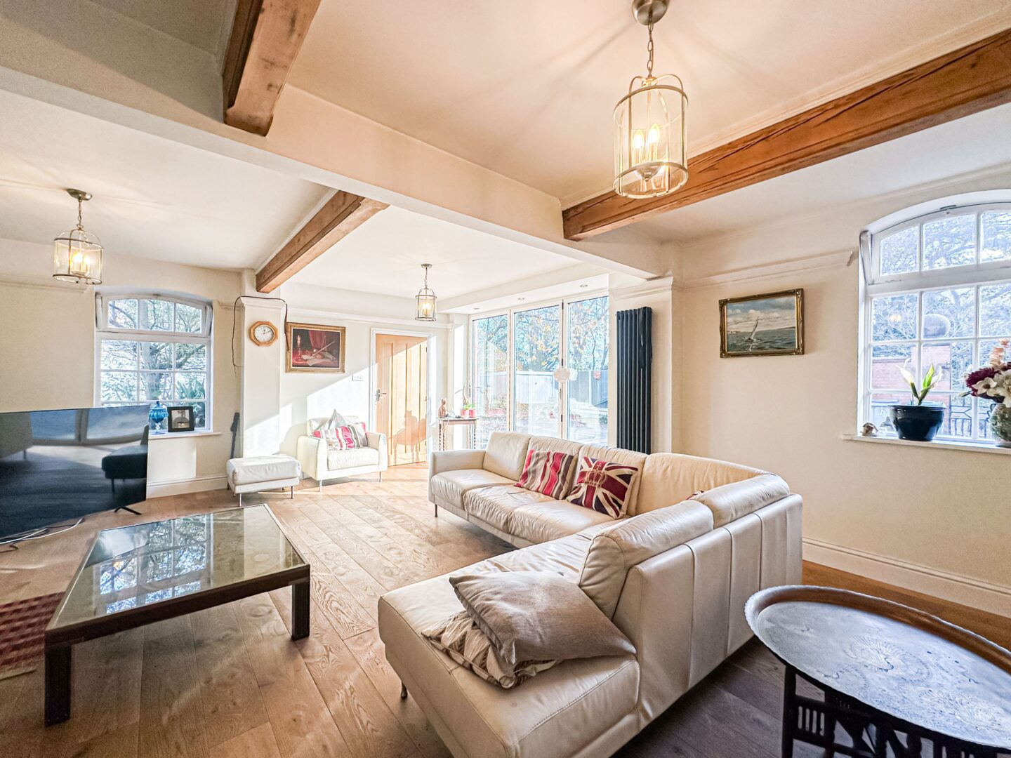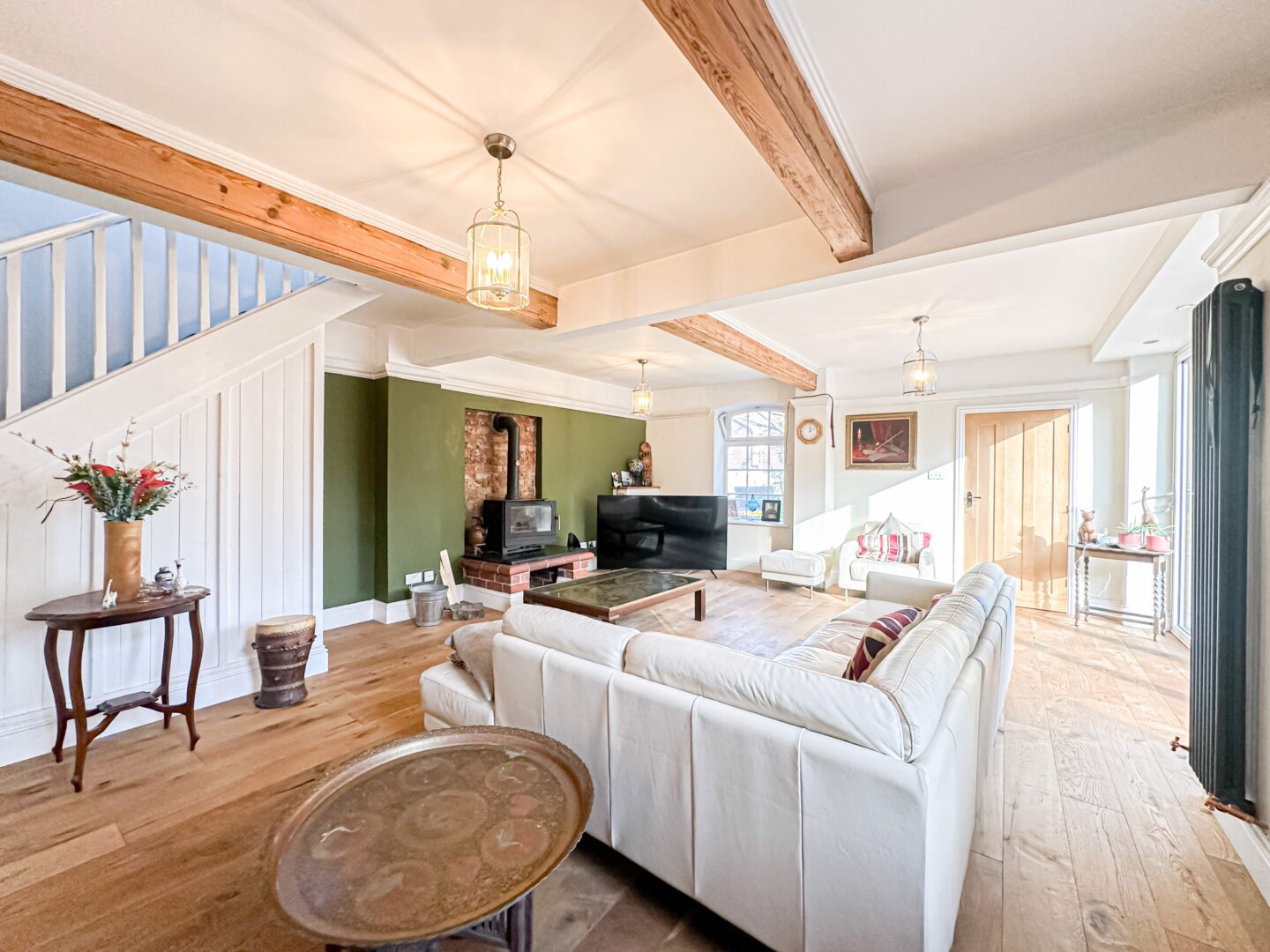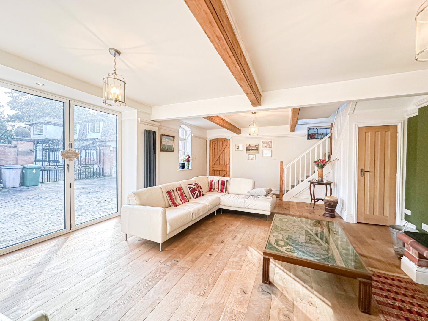 Upon entering the residence, you are greeted by a stylish fitted kitchen which is complete with a range of base and wall units and complementary worktops providing plentiful surface space. This is followed by a spacious reception room which is flooded with natural light courtesy of a set of bi-fold doors, providing seamless access to the courtyard. Impeccably finished in a tasteful décor which complements the attractive wood style flooring and exposed beams, this presents a welcoming space to relax and entertain guests. Concluding the ground floor is a bright and airy study, ideal for those who work remotely.