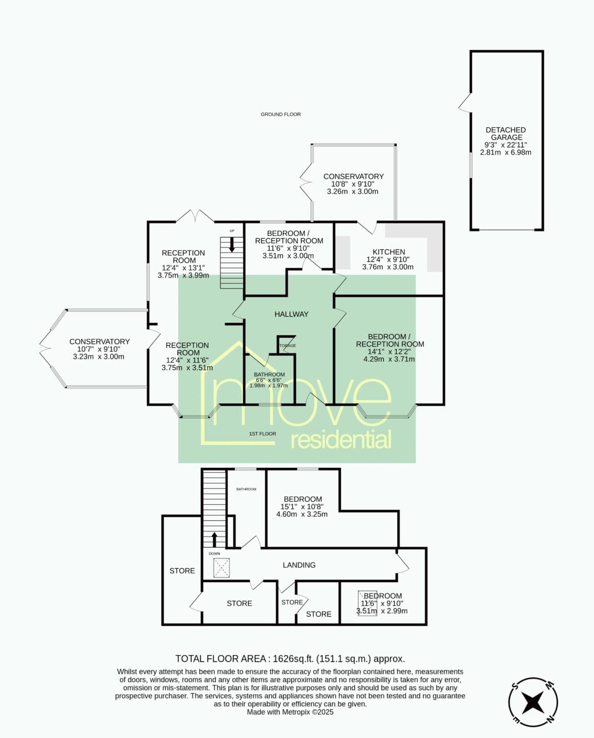 Occupying a substantial plot, the possibilities here are vast. The property offers over 1,600 square feet of versatile accommodation arranged across two floors. The welcoming hallway leads to a spacious main reception room running the full depth of the home, complete with access to the first of two conservatories. A fitted kitchen adjoins the second conservatory, providing a lovely spot to enjoy the garden outlook. The ground floor also features two well proportioned bedrooms, which could alternatively serve as additional reception rooms, and a family bathroom completes this level. Upstairs, there are two further bedrooms, a second bathroom and ample storage space, making the layout ideal for flexible family living.