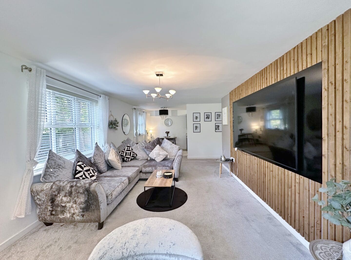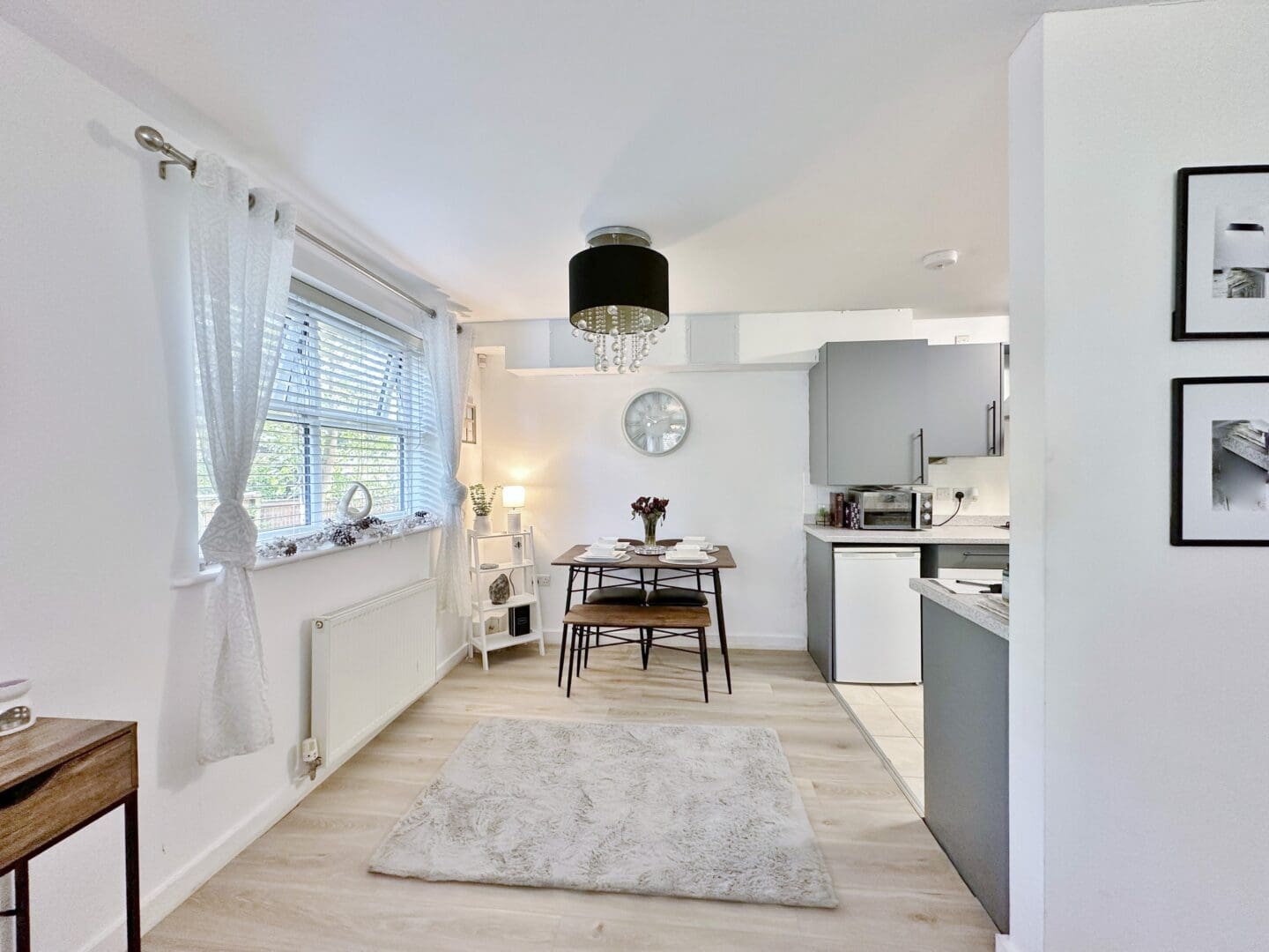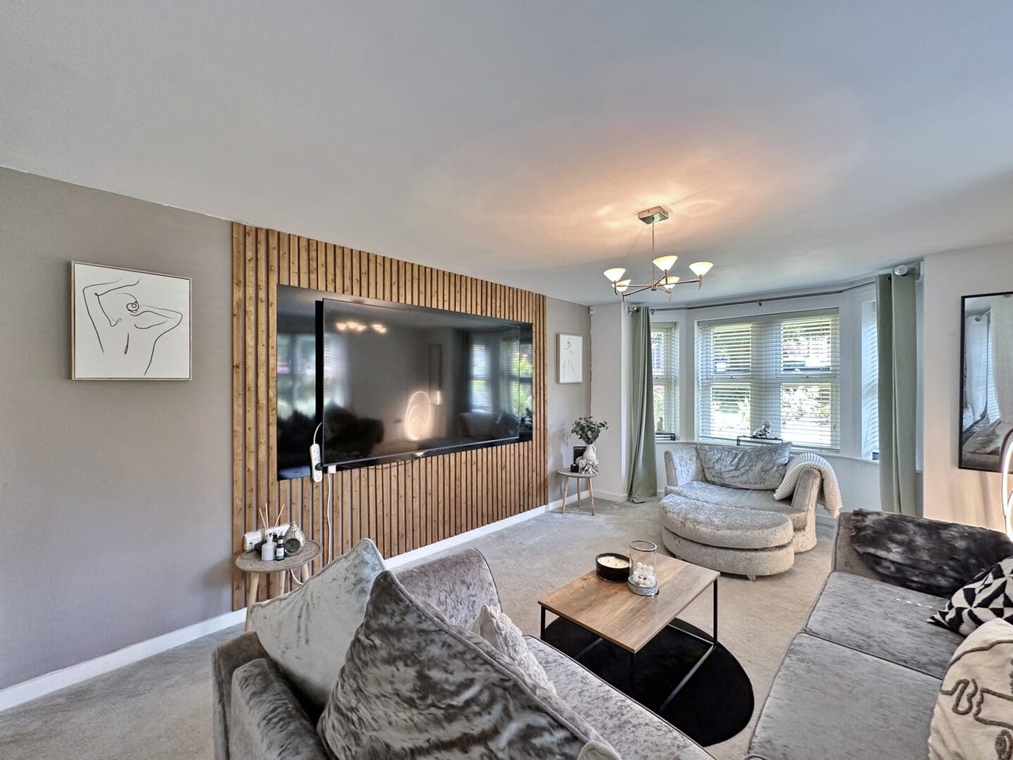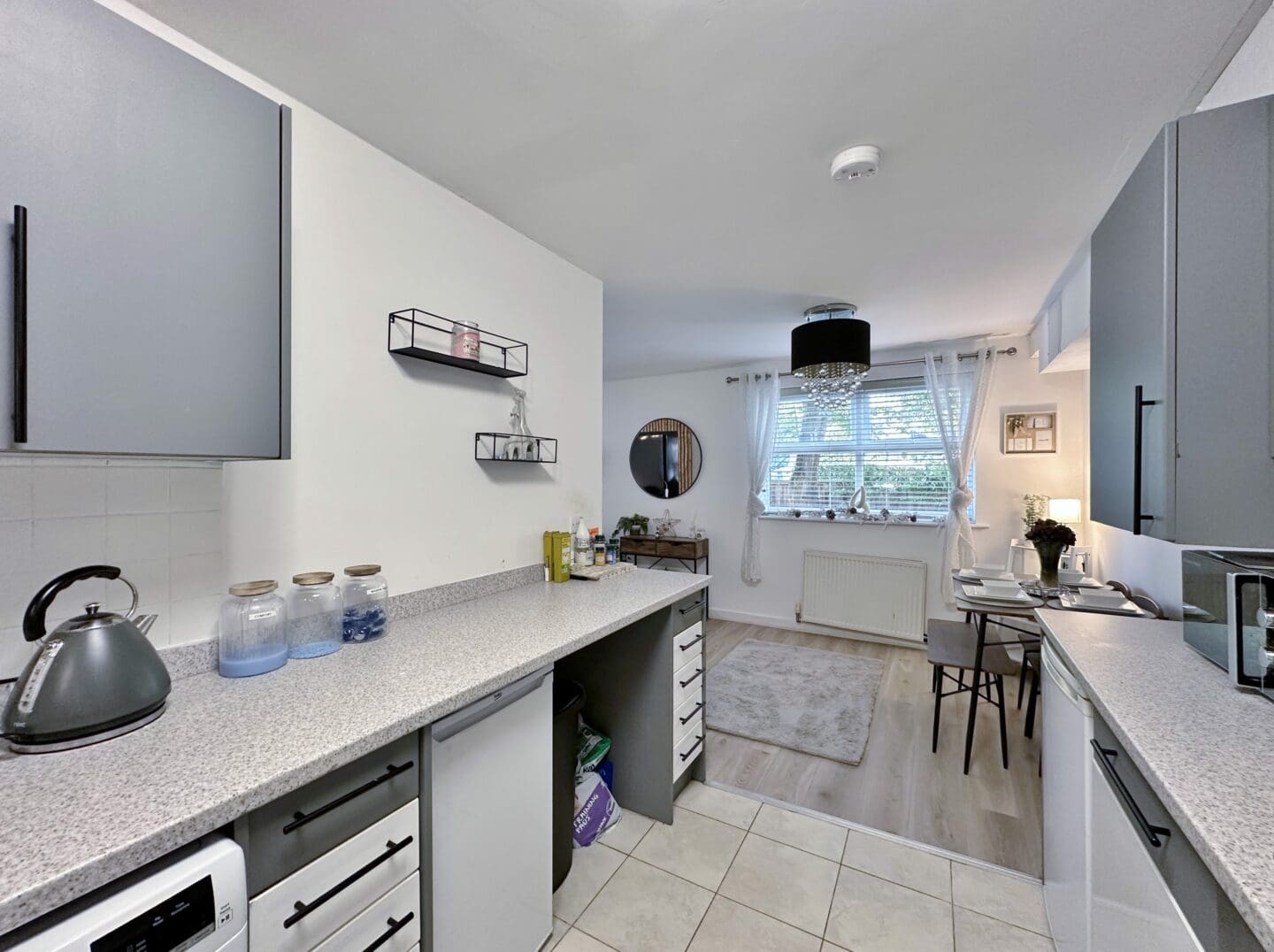 Inside, the accommodation includes a welcoming entrance hallway with useful storage, a bright and spacious lounge with bay window and feature media wall which opens to a large open kitchen diner. The principal bedroom benefits from built in storage, you also have a second double bedroom and completing the layout is a modern four piece bathroom suite finished to a high standard. Additional benefits include allocated parking and access to well kept communal lawned gardens. With its combination of stylish presentation, practical layout, and prime location, this property is not to be missed. Viewing is strongly advised.