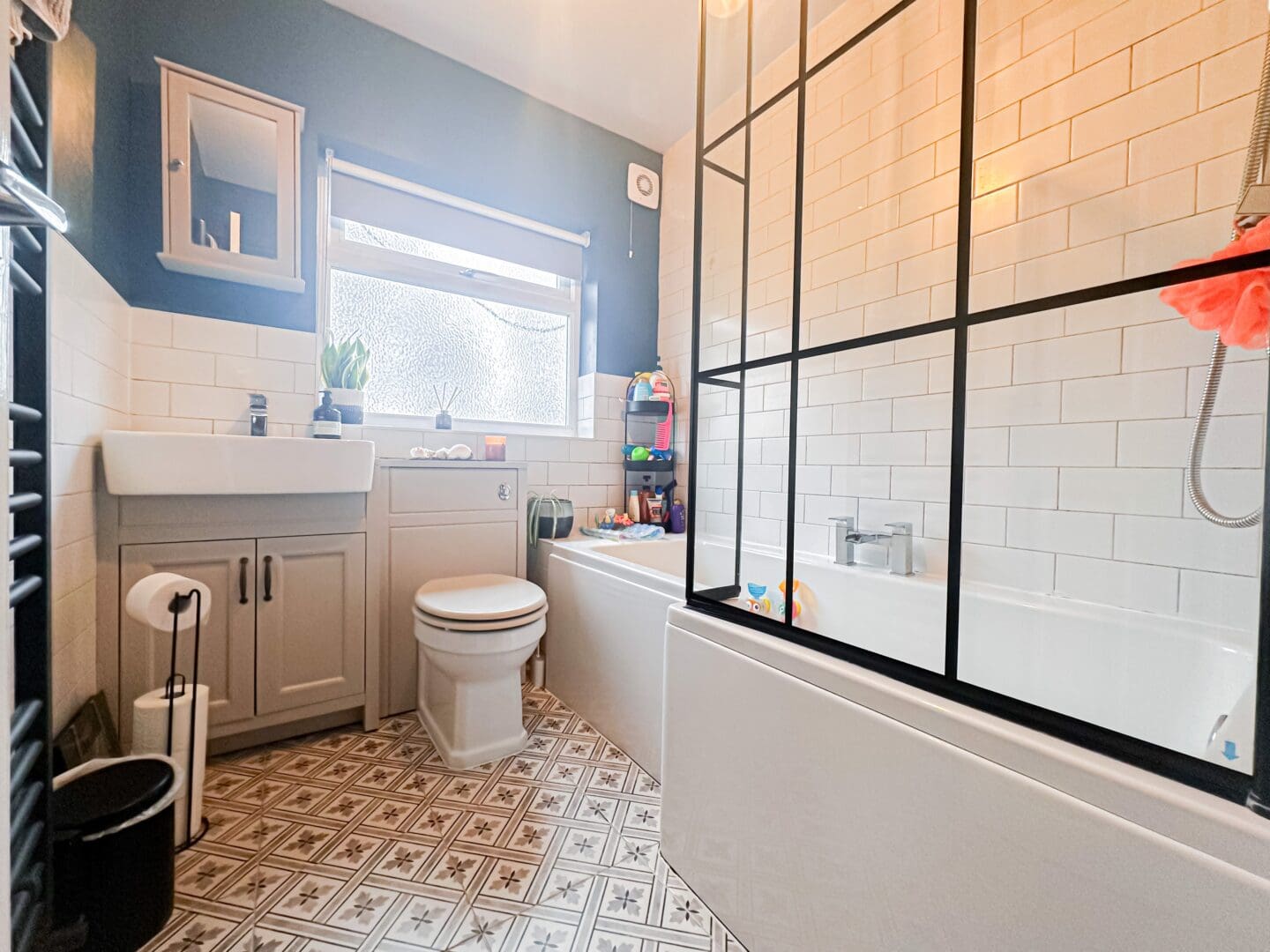 The property continues to impress as you ascend to the first floor, where you will find two generously sized double bedrooms along with a well-proportioned single room, each finished to an excellent standard and receiving plenty of daylight. Accompanying the sleeping accommodation and adding the finishing touch to the interior of this lovely home is a deluxe three-piece family bathroom suite featuring chic wall tiles and patterned flooring.
