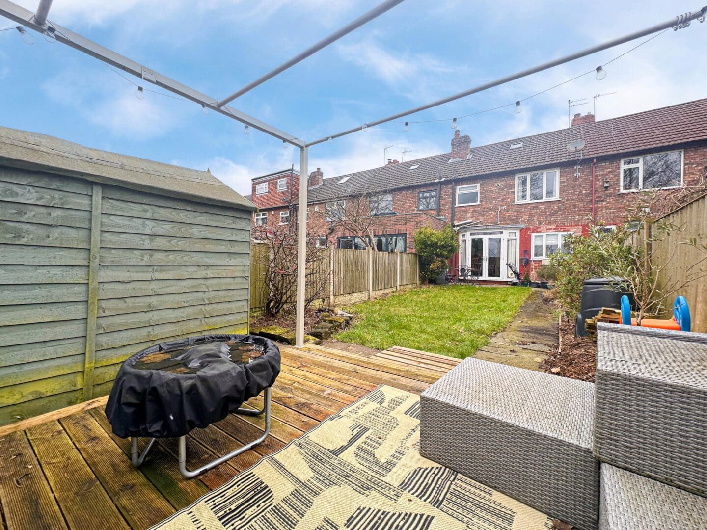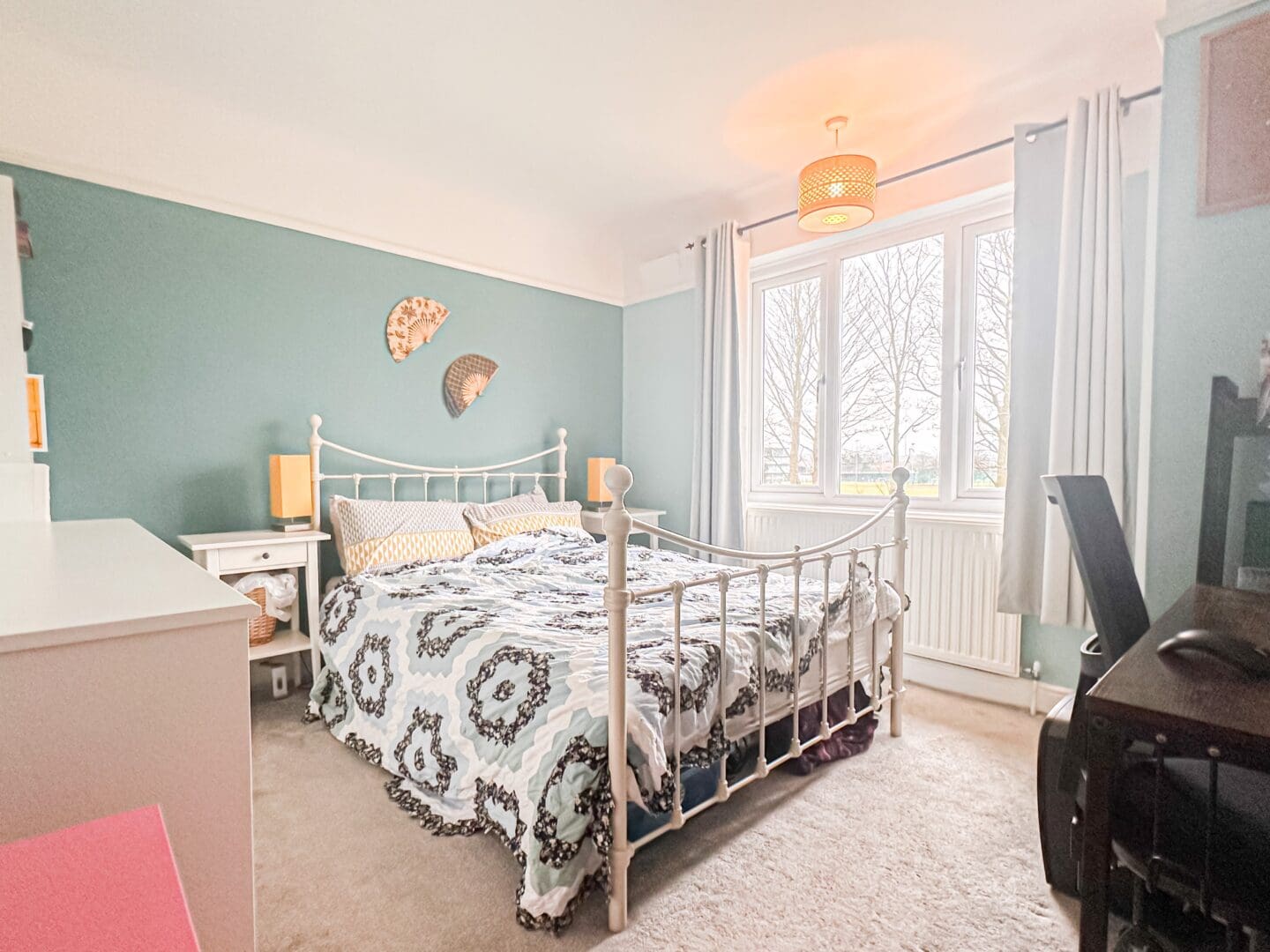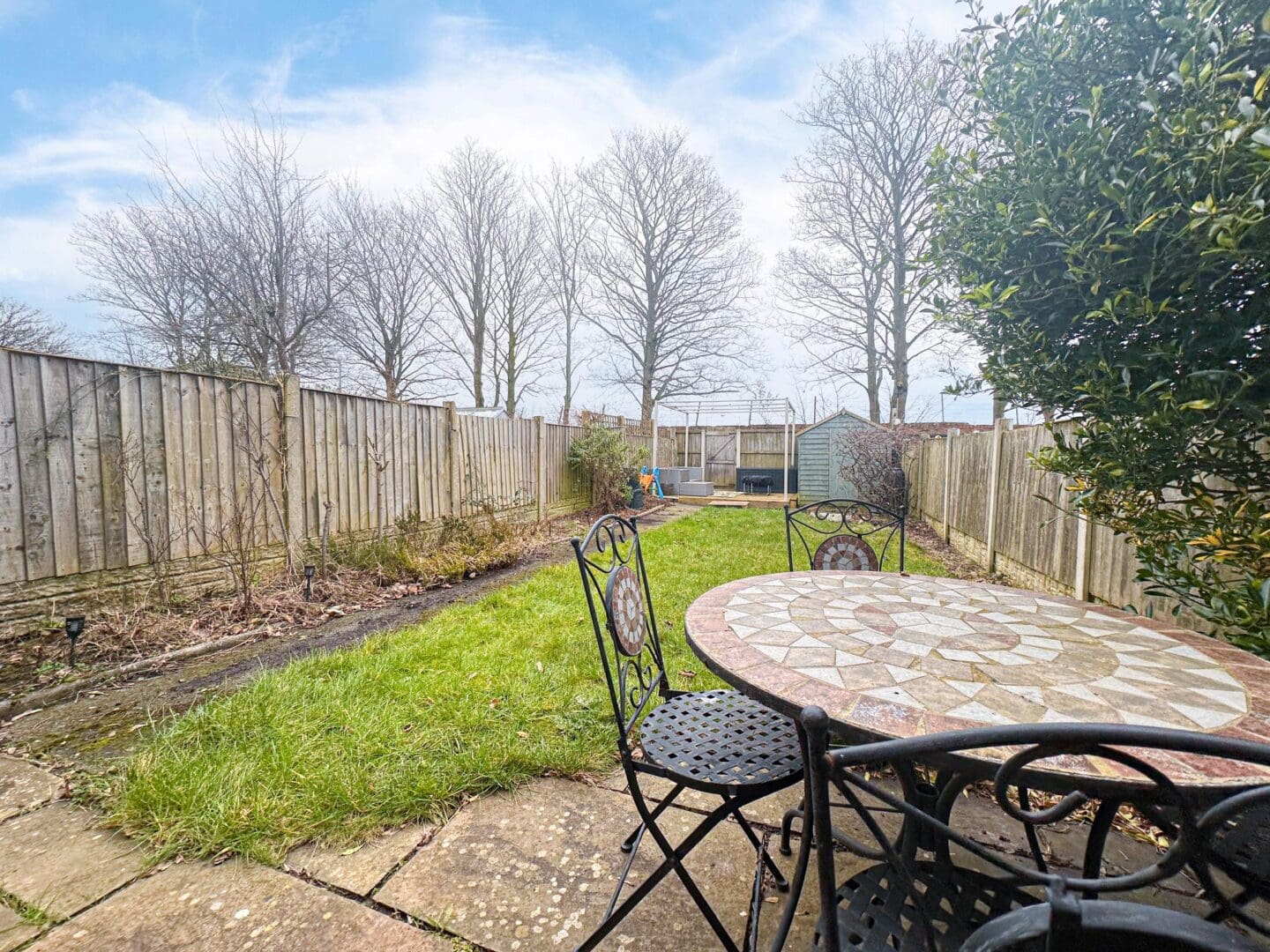 Externally, the property is further enhanced by delightful rear garden which backs onto playing fields, benefitting from not being overlooked. Providing an outdoor space for the whole household to enjoy, a neatly maintained lawn offers ample room for recreational activities, whilst a raised decking area presents the perfect spot for enjoying al-fresco dining during the summer months. To the front, a substantial driveway accommodates off-road parking.