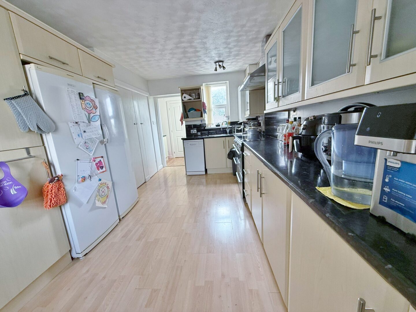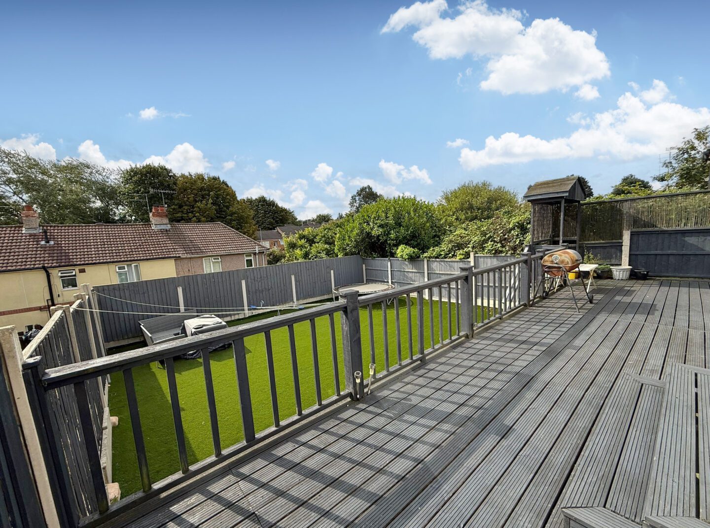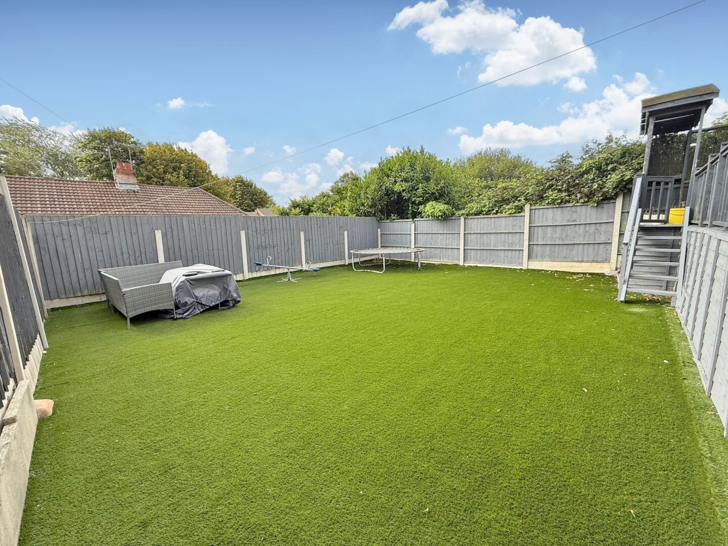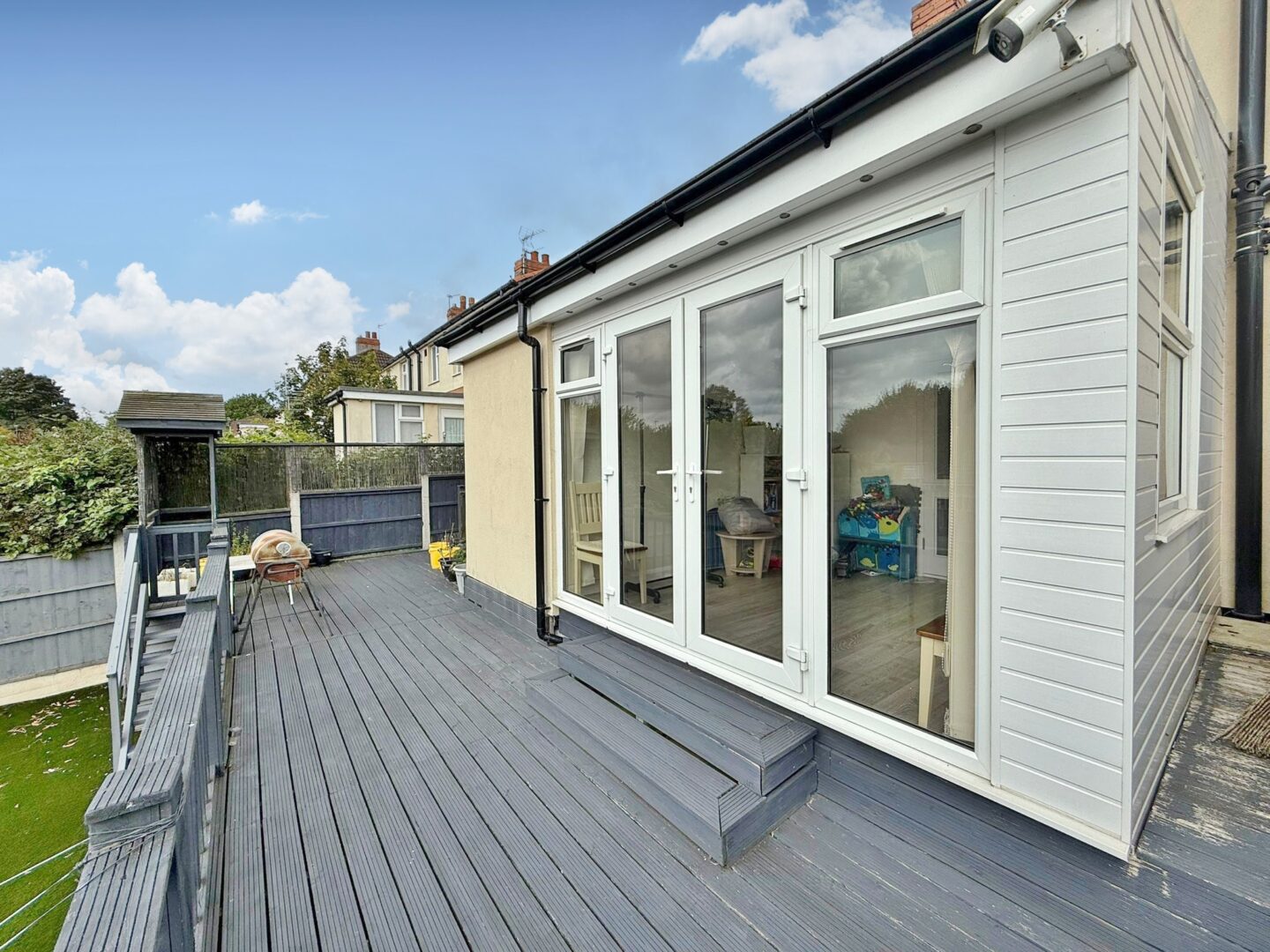 On the ground floor, the spacious living room opens into a sun room/play room, creating a light filled area perfect for relaxing or entertaining. The dining kitchen provides plenty of space for family meals, complemented by a useful utility room/W.C and additional storage area. Upstairs, there are three bedrooms and a well presented family bathroom. Bedrooms one and two are good-sized doubles, while bedroom three works well as a single room, nursery, or home office. The large rear garden completes this property perfectly, designed for ease of maintenance with a raised decking area leading down to an artificial lawn, ideal for enjoying the space all year round.