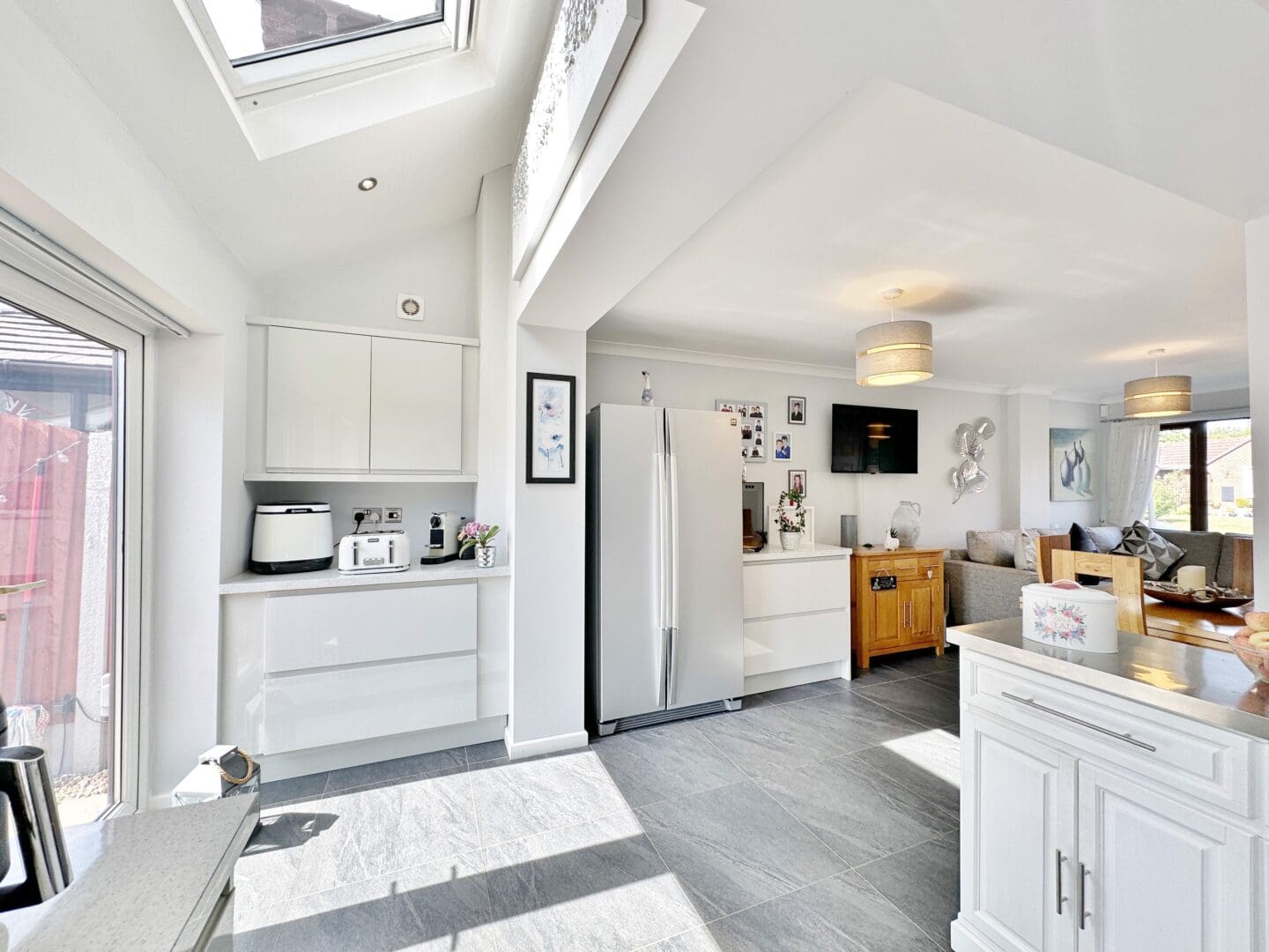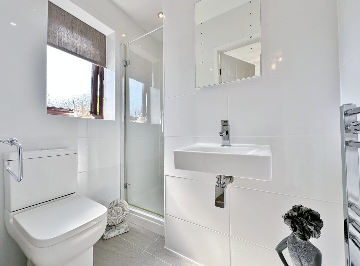 Originally configured as a four bedroom property, the current layout has been adapted to offer three spacious double bedrooms. This flexible design could easily be reconfigured back to four bedrooms if desired. The principal bedroom benefits from a private en-suite, while the two additional bedrooms are served by a contemporary family shower room.