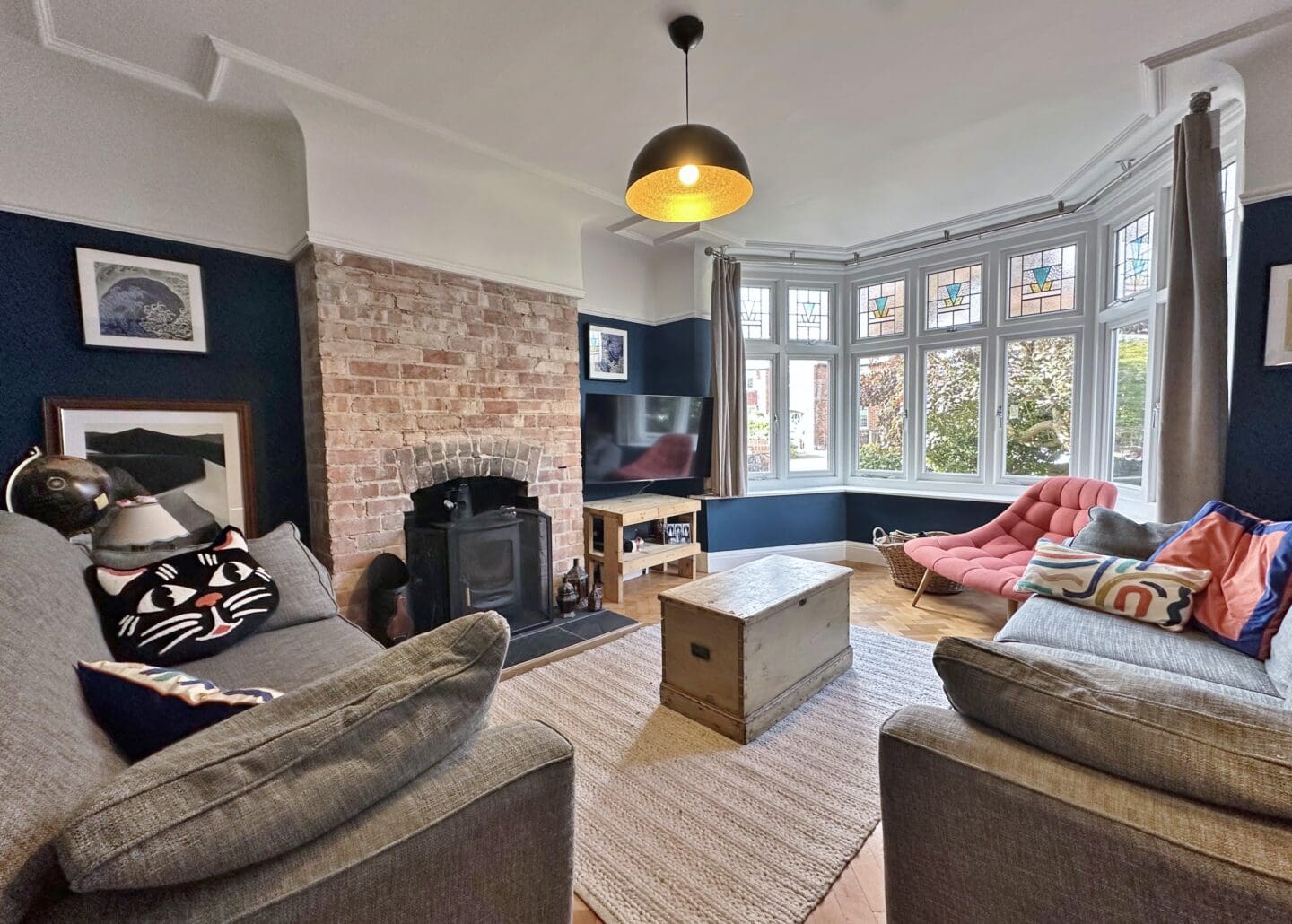 Upon entering, you are greeted by a welcoming hallway that leads to a bright and spacious front lounge. This room is enhanced by a walk in bay window and a charming log burning fireplace set into an exposed brick chimney breast, creating a warm and inviting atmosphere. To the rear, there is a second reception room, also featuring an exposed brick chimney breast, with patio doors that open out onto the delightful rear garden. Completing the ground floor is a large, well fitted kitchen diner, offering an ideal space for both family living and entertaining. The first floor boasts three well proportioned bedrooms, including a master bedroom with a bay window, a generous second double bedroom, and a third single bedroom. The luxurious family bathroom is fitted with a stylish four-piece suite, incorporating a freestanding bath and a walk in shower cubicle.