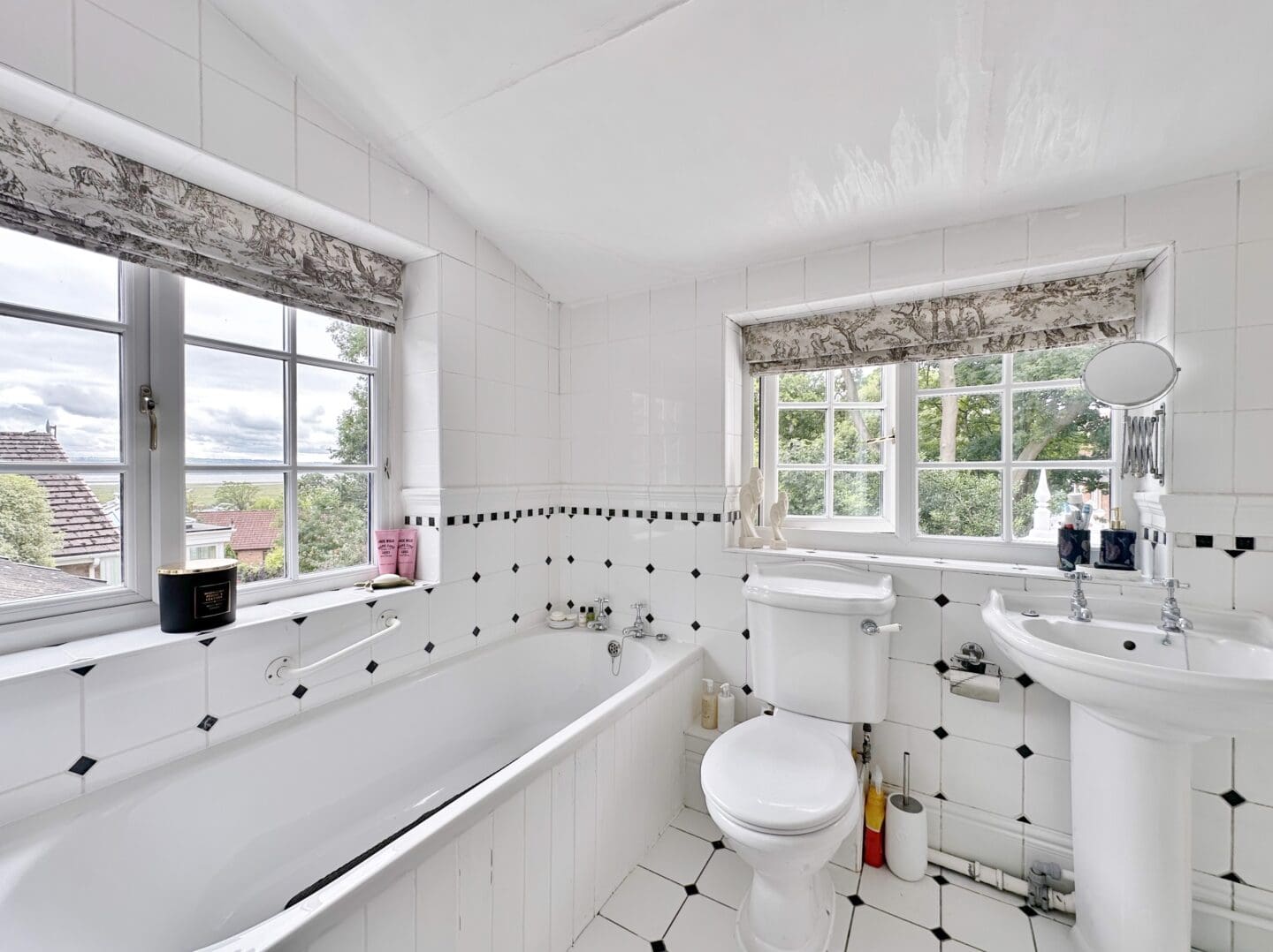 The home is embraced by wraparound greenery, offering excellent outdoor space, seclusion, and off-road parking for several vehicles. Inside, the property impresses with bright, well proportioned living areas. A welcoming lounge features a traditional bay window and a charming fireplace, perfect for relaxing evenings. The kitchen flows effortlessly into both the dining area and the sun filled conservatory and a downstairs W.C and utility room further enhance the home’s practicality. Upstairs, three generously sized double bedrooms provide ample storage with built in wardrobes. The well appointed family bathroom is a standout feature, offering captivating panoramic views across the River Dee and into the Welsh landscape.