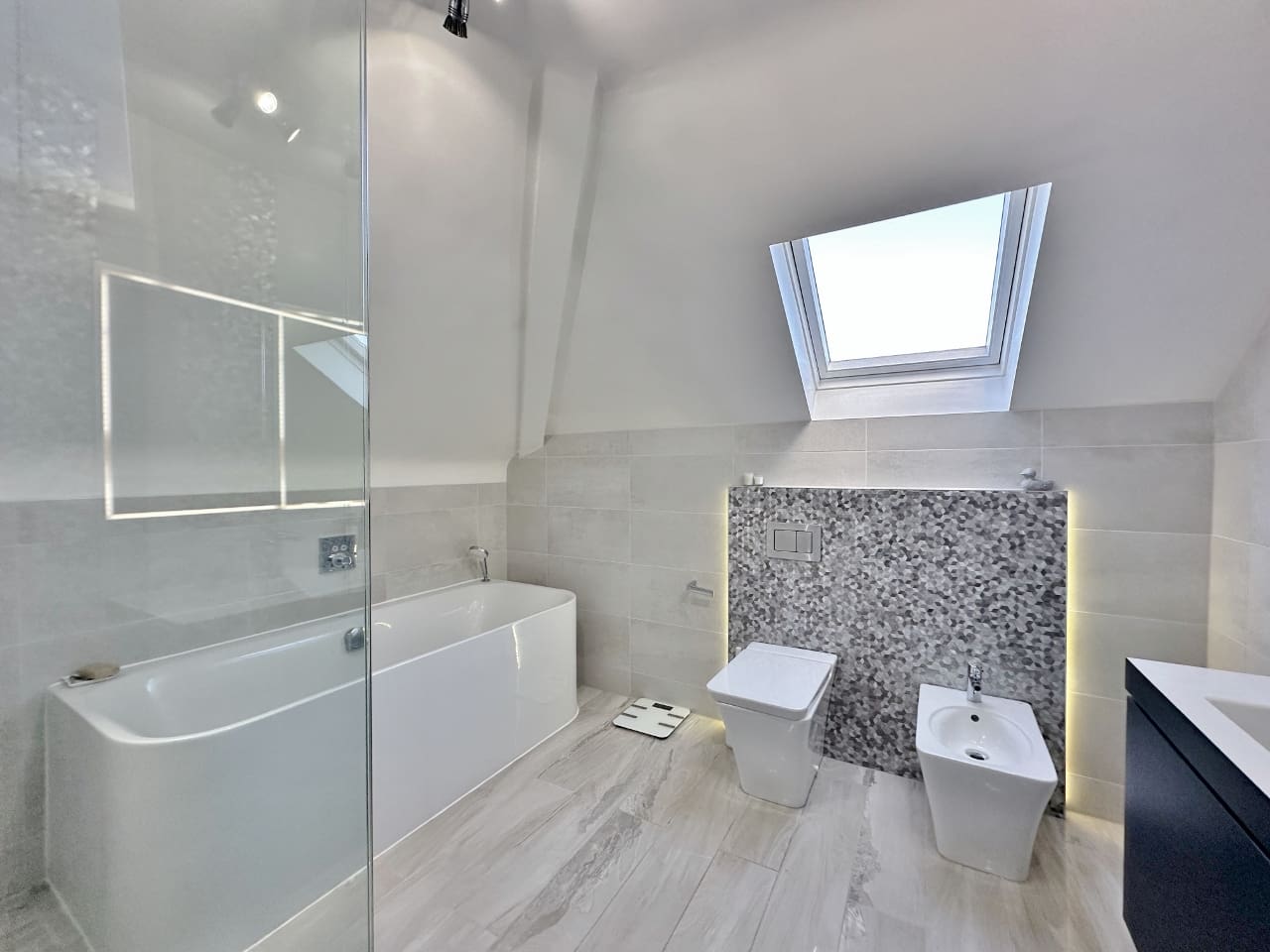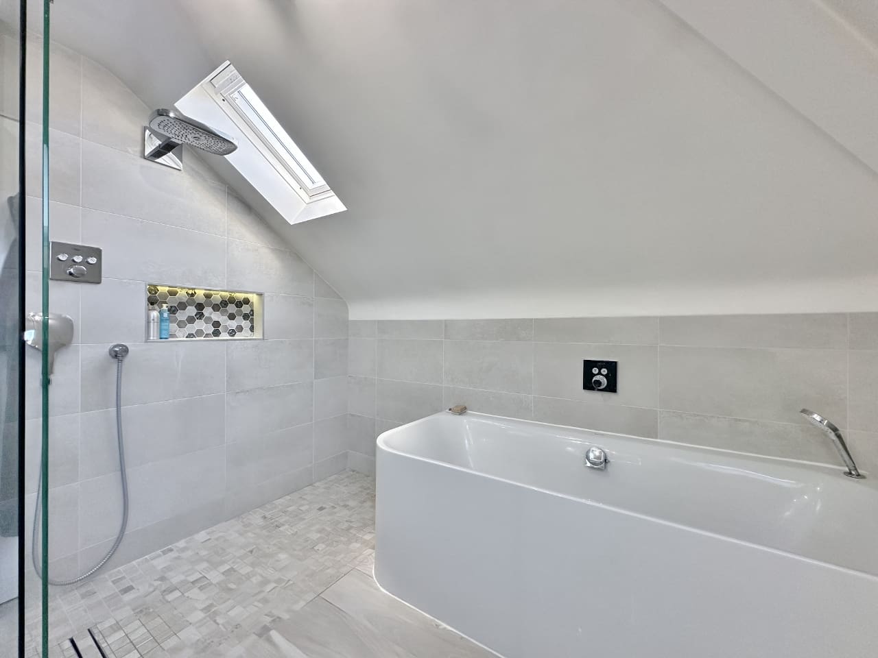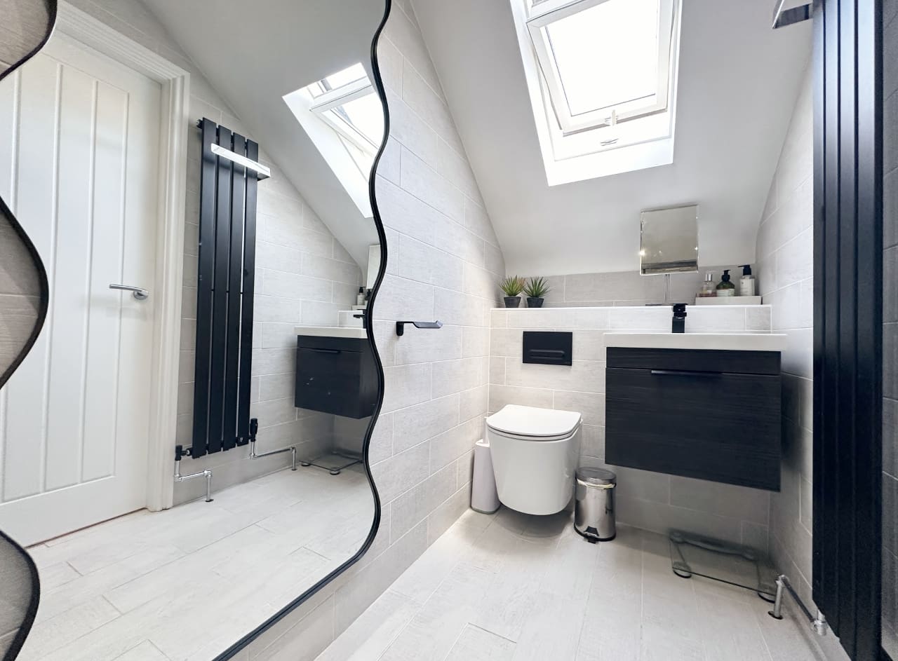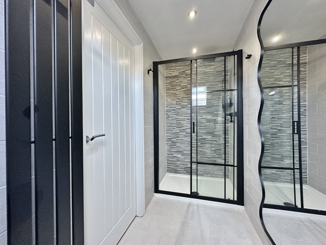 A grand entrance hallway welcomes you into this property and sets the standard for the rest of the accommodation, featuring an imperial staircase and full height windows flooding the space with natural light. From here you have a formal lounge and access into the breathing open plan living kitchen diner, a generous sized room with bespoke fitted kitchen with underfloor heating and electric velux with rain sensor, large dining area with bi-folding doors opening to the superb rear garden and a lounge area with log burning stove. The ground floor further offers a utility room with underfloor heating, gym/bedroom five, study/bedroom six and a modern shower room.