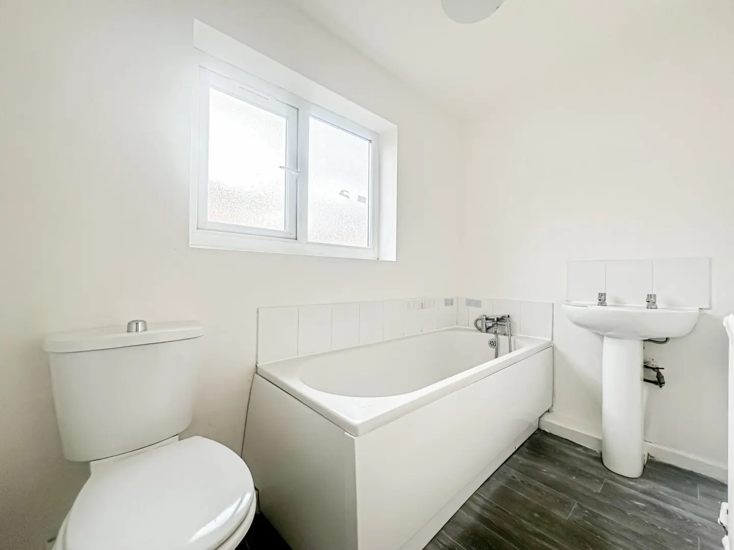An entrance hall greets you into the property, leading through to a spacious bay-fronted family lounge, followed by a second substantial reception room, and concluding the ground floor is a modern fitted kitchen. The first floor offers two generously sized double bedrooms and a well-proportioned single room, each finished to a high standard, accompanied by a contemporary style three-piece family bathroom suite.
