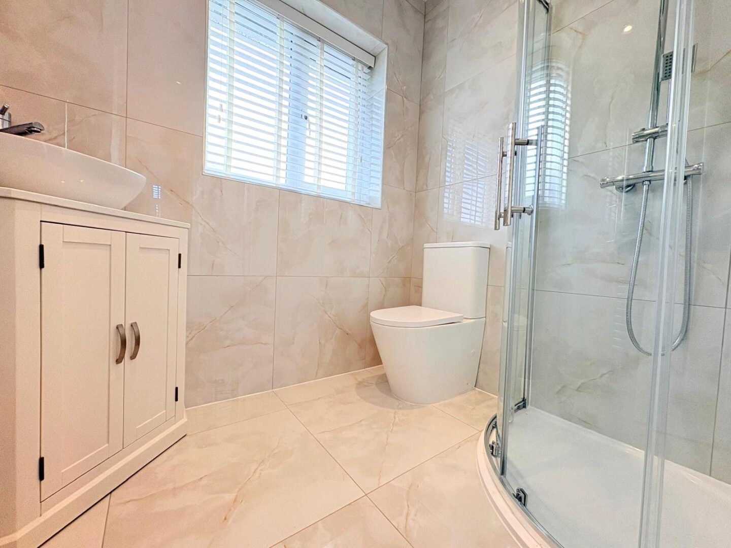 To the first floor are three well-proportioned bedrooms, including a principal suite with a stylish en-suite shower room and a versatile dressing area or home office. A contemporary family bathroom serves the remaining bedrooms, all of which are finished to a high specification and offer a calm, comfortable retreat.