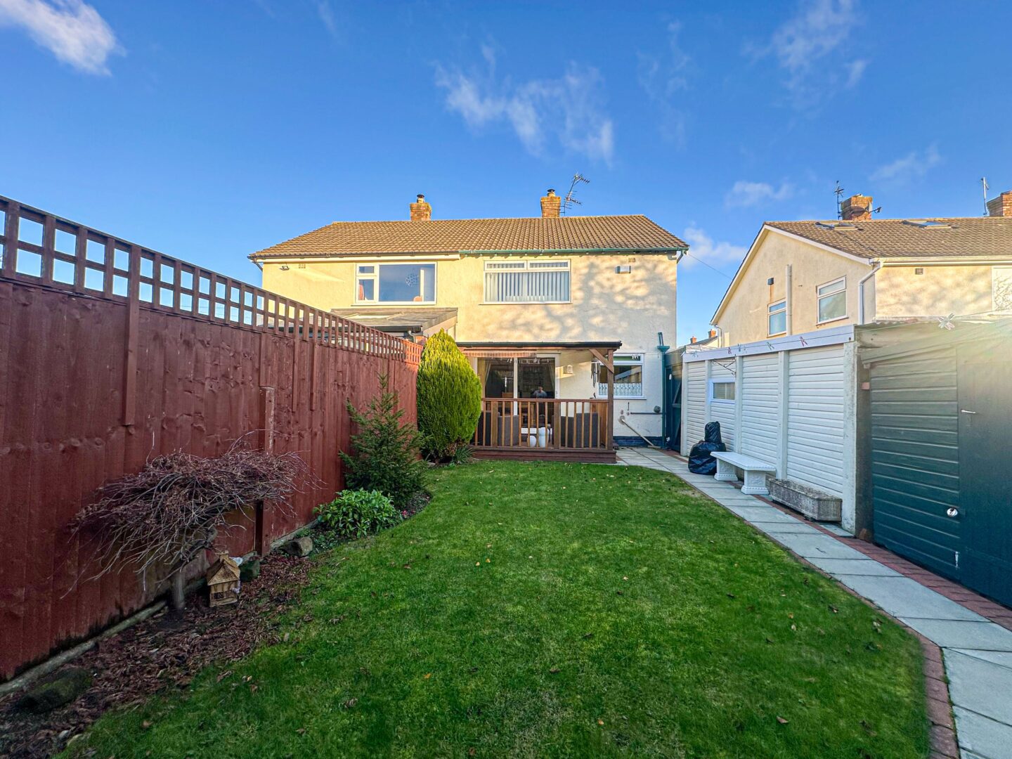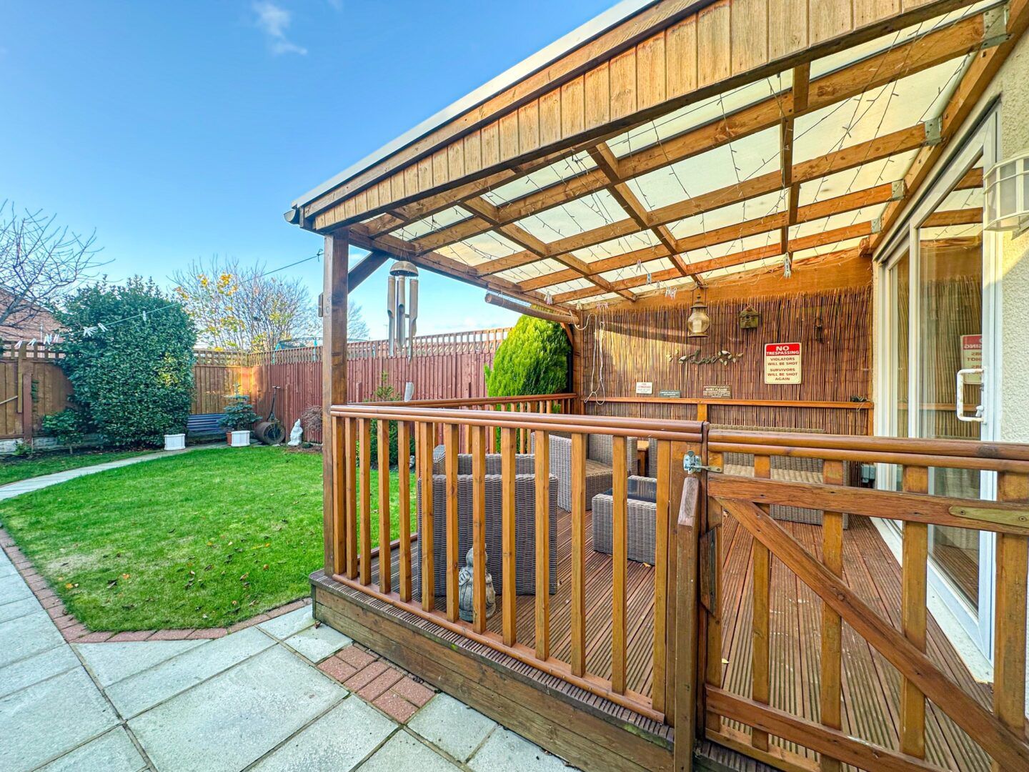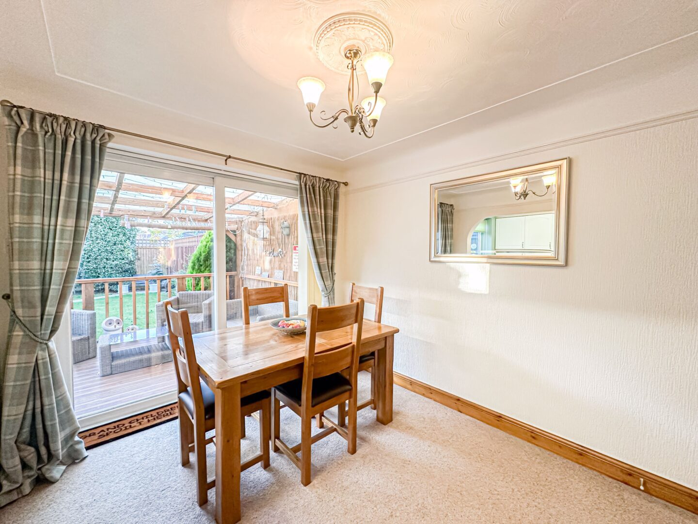 Externally, the property is further enhanced by a meticulously maintained rear garden which presents a charming outdoor space for the whole household to enjoy, consisting of a neatly manicured lawn and a covered decking area ideal for al-fresco dining and entertaining.