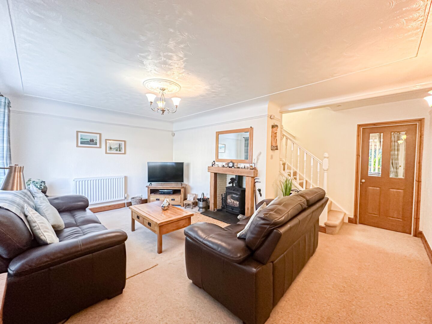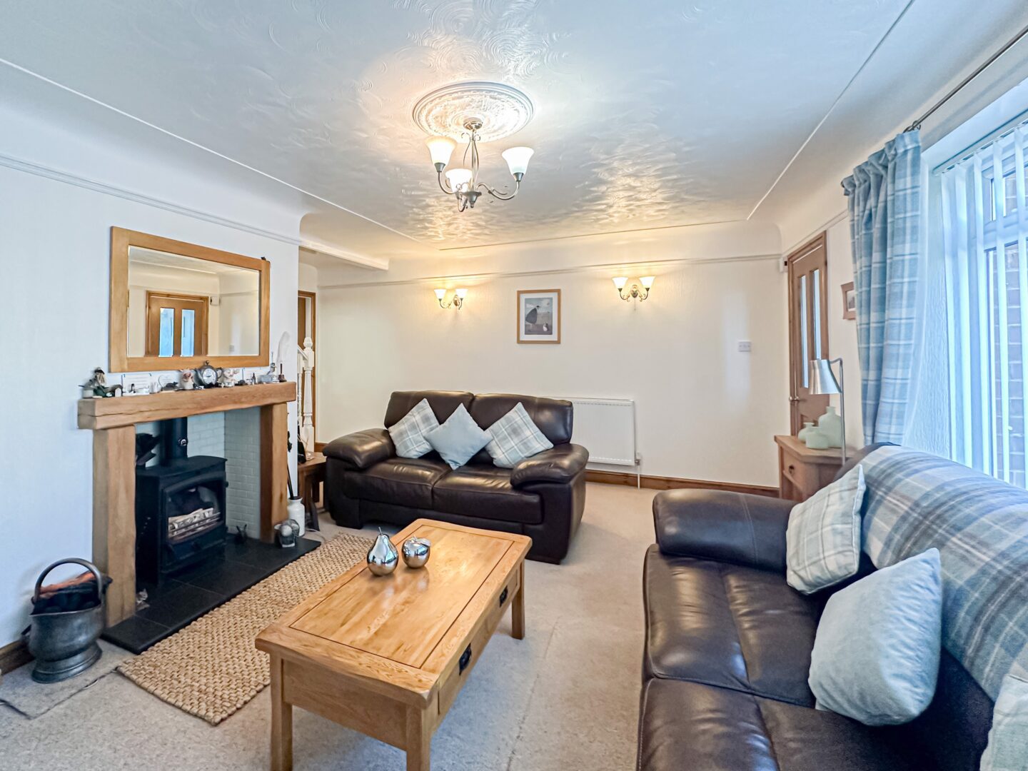 Entering via the porch, you are greeted into the property by a spacious family lounge which is flooded with natural light, presenting a welcoming setting to relax and unwind. This is followed by a dining area which enjoys a set of sliding doors providing views and access out to the rear garden, and flows seamlessly into a sizable fitted kitchen, presenting a social space for enjoying family mealtimes and cooking in company. Concluding the ground floor is a converted lean-to which accommodates a convenient utility room.