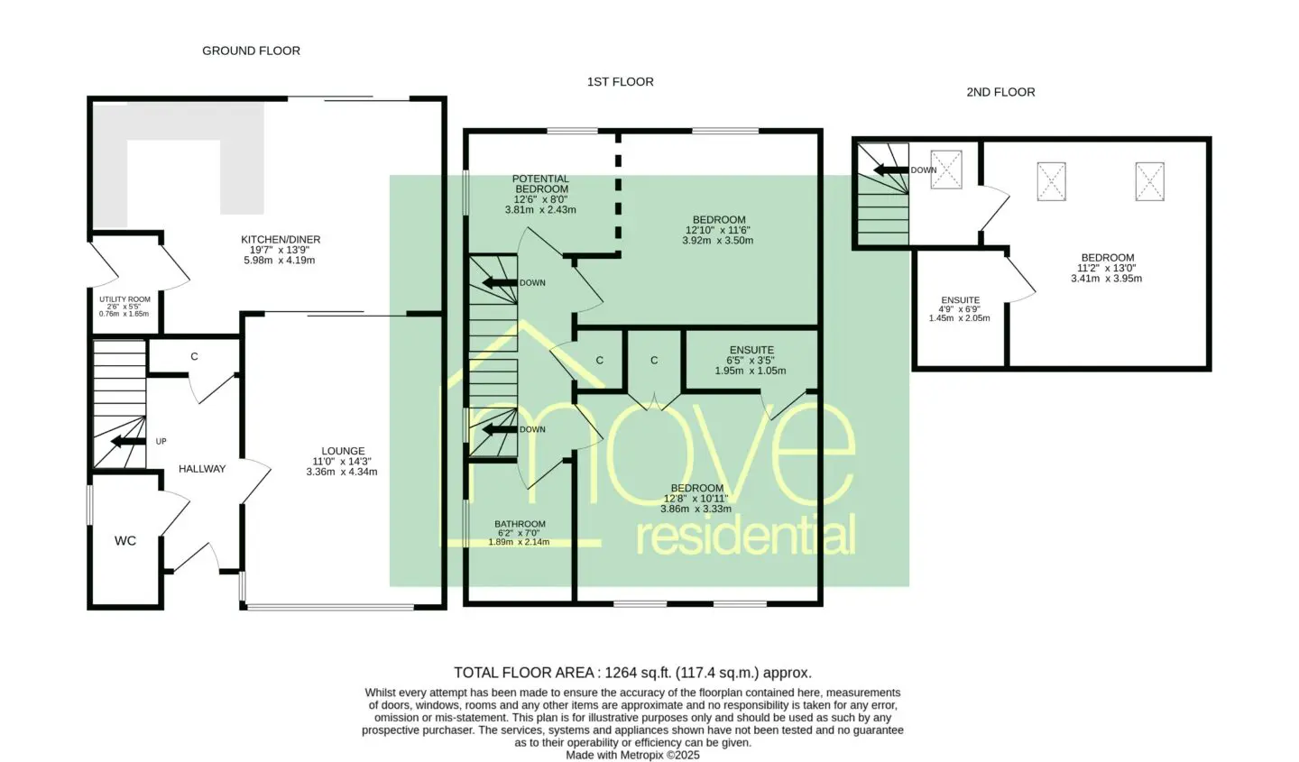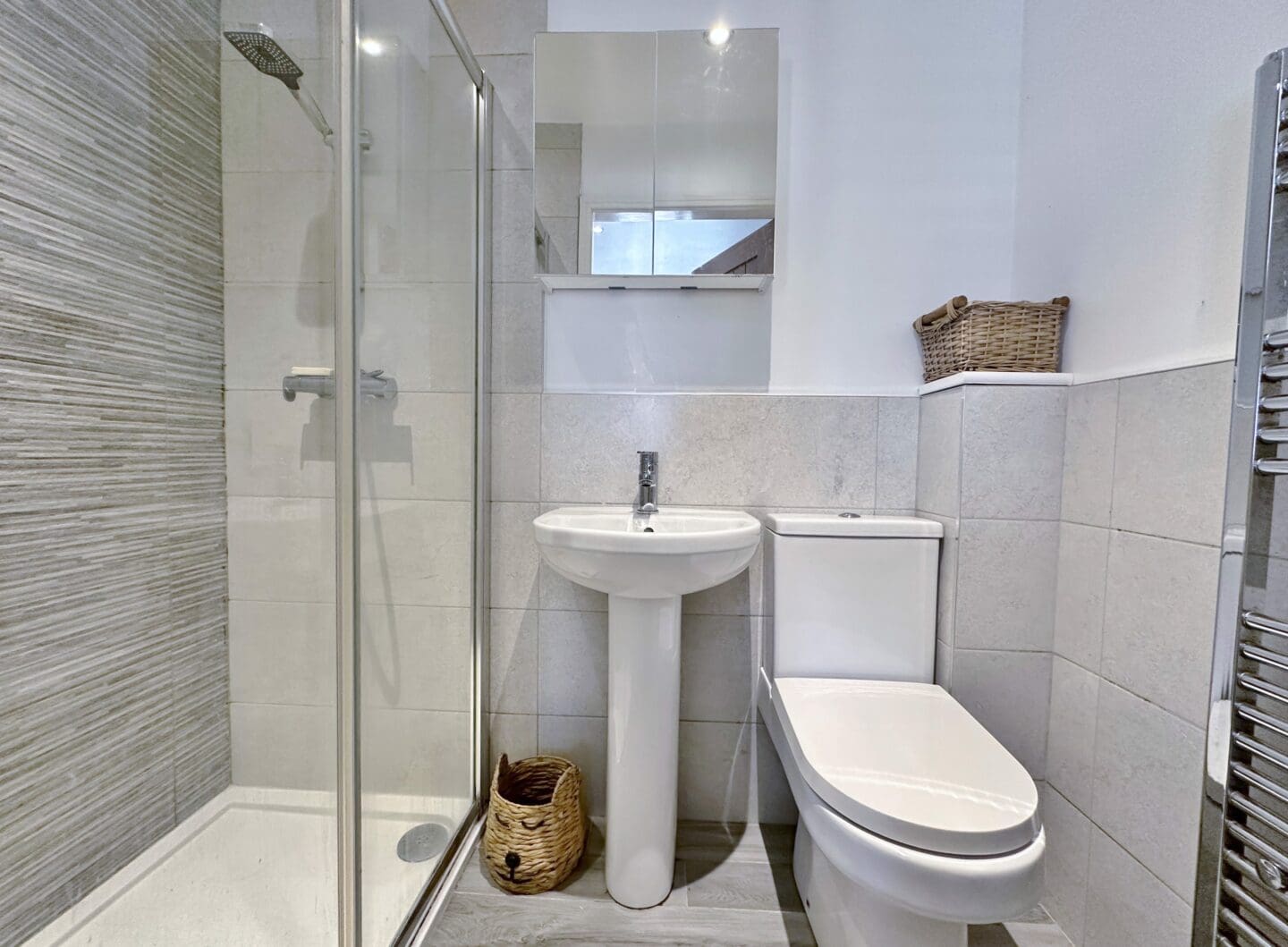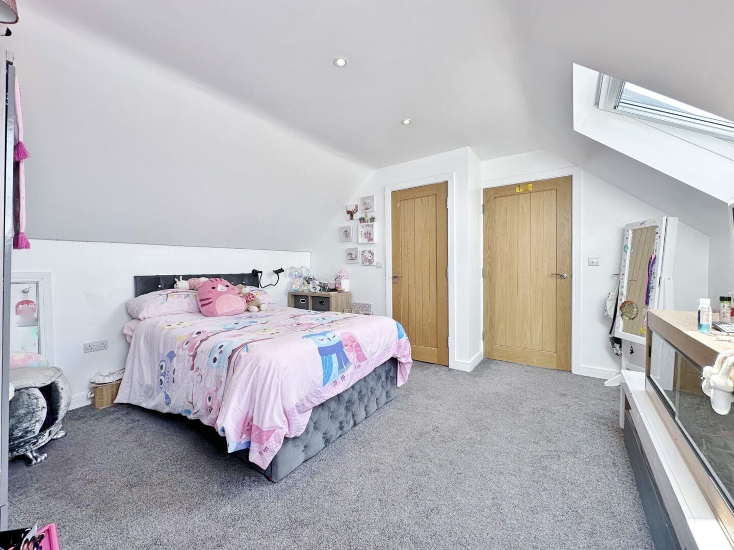 On the first floor, you’ll find two generously sized bedrooms, including one with a sleek en suite shower room, along with a modern family bathroom. The top floor is dedicated to a further large double bedroom, complete with its own en suite.