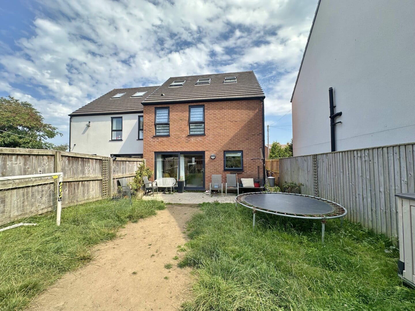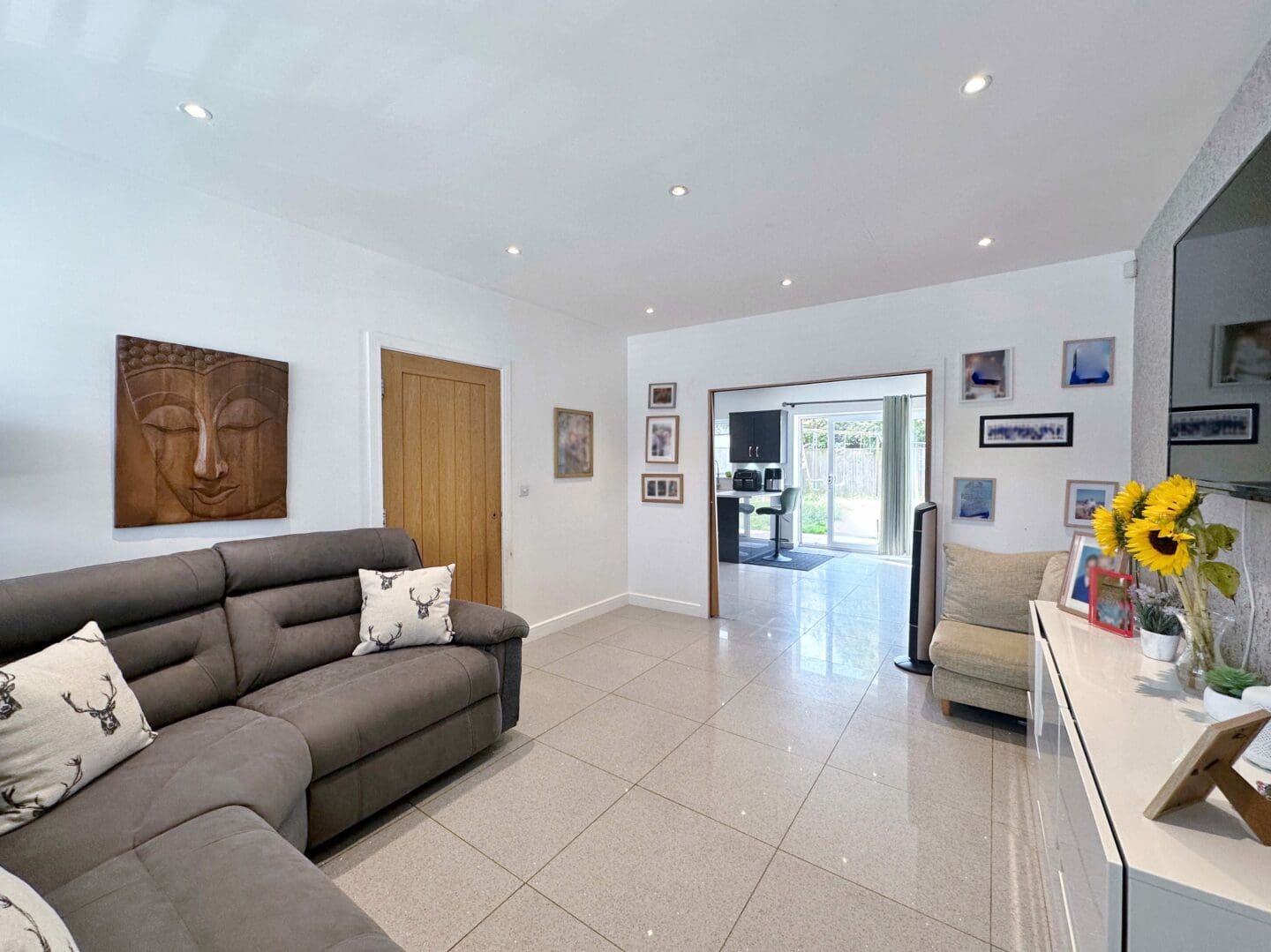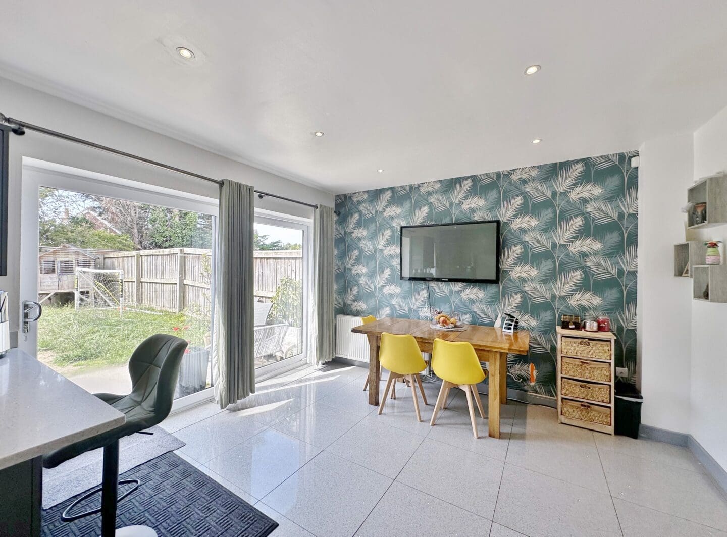 The interior has been finished with a fresh, contemporary décor throughout. The ground floor welcomes you with a hallway offering useful storage and a convenient downstairs W.C. A bright, well proportioned living room opens via sliding double doors into a stylish open plan kitchen and dining area with patio doors opening to the delightful rear garden. A practical walk in pantry/utility space is neatly tucked just off the kitchen, adding to the home’s functionality.