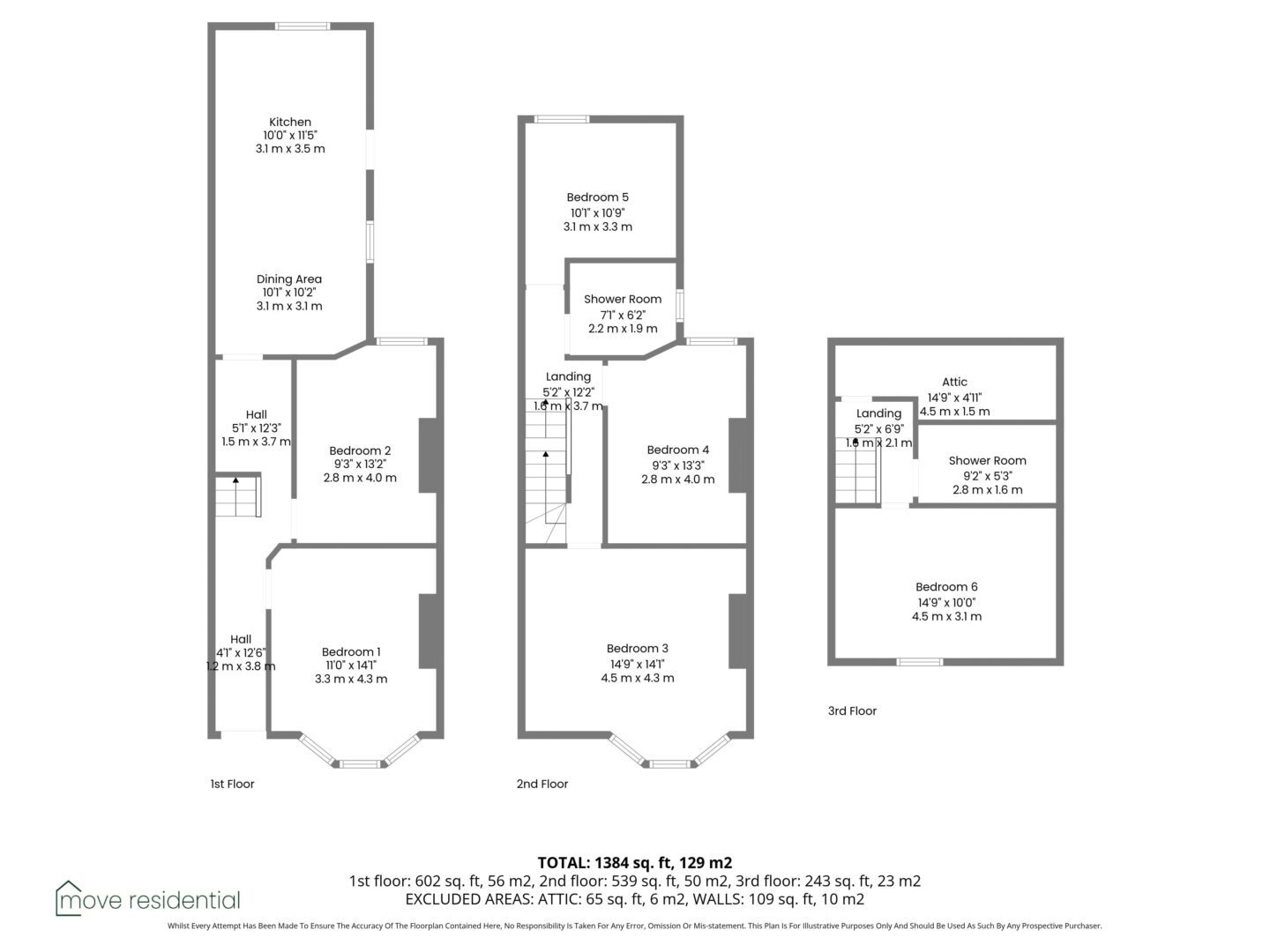 The first floor offers three bright and generously sized bedrooms, accompanied by a contemporary style family shower room. At the pinnacle of the property, the second floor is home to the sixth and final bedroom, illuminated by a skylight, along with a second modern shower room.