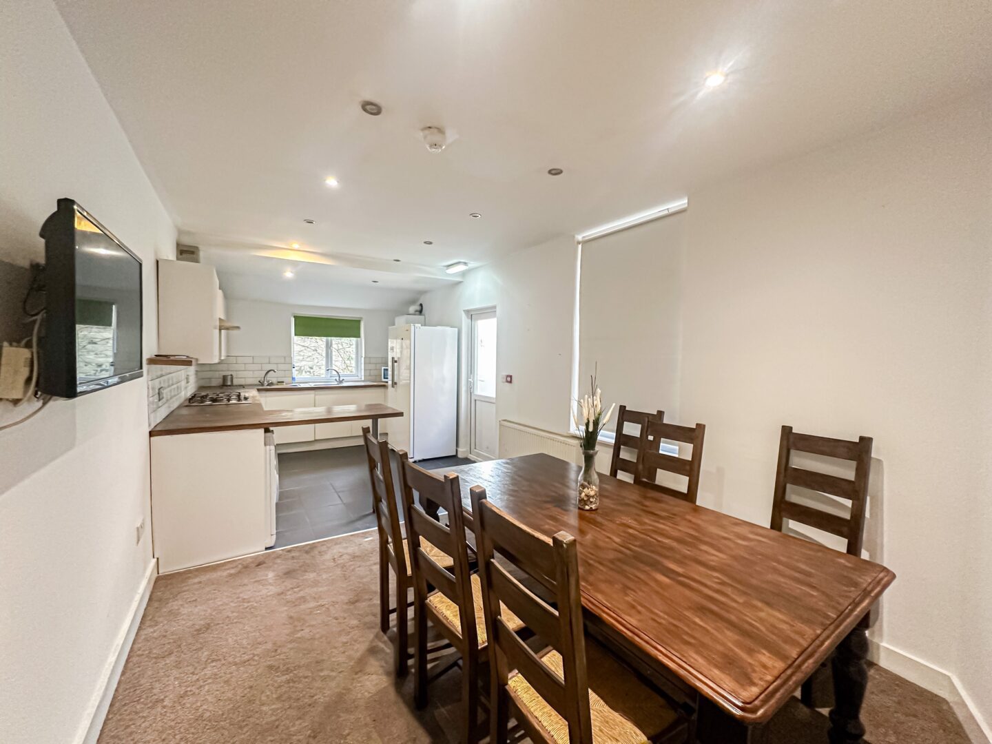 An entrance hall greets you into the property, leading through to two spacious ground floor bedrooms, the front room benefitting from a bay window. Following this is an extended kitchen diner complete with a range of fitted base and wall units, plentiful worktop space, and ample room to accommodate a dining table, offering a social setting for sharing mealtimes and cooking in company.