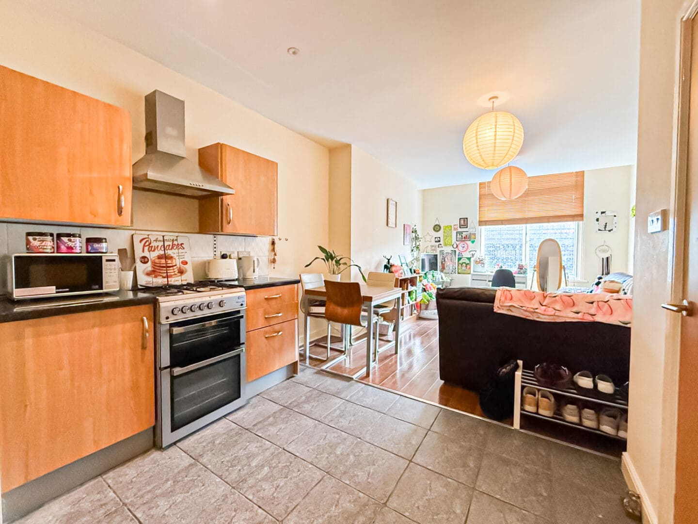 Accessed via a well-maintained communal entrance with secure fob access and intercom system, you are greeted into the apartment itself by an inviting entrance hall which leads through to a generous open plan kitchen dining and living space, offering a welcoming social setting for relaxing and entertaining guests. The kitchen is complete with a range of fitted units and complementary worktops, whilst the living and dining area has been finished in a fresh contemporary décor featuring attractive wood style flooring. The sleeping accommodation consists of two well-proportioned bedrooms, each well-presented and flooded with natural light. The master enjoys the added luxury of an ensuite shower room, and concluding the interior of this wonderful apartment is a deluxe three-piece family bathroom suite.
