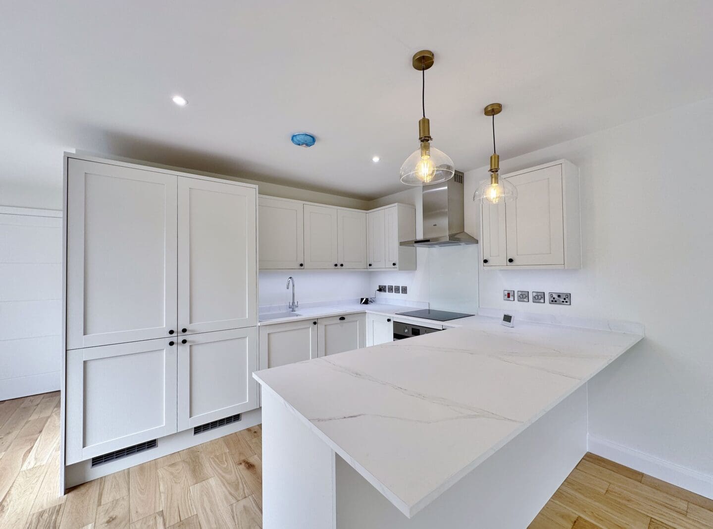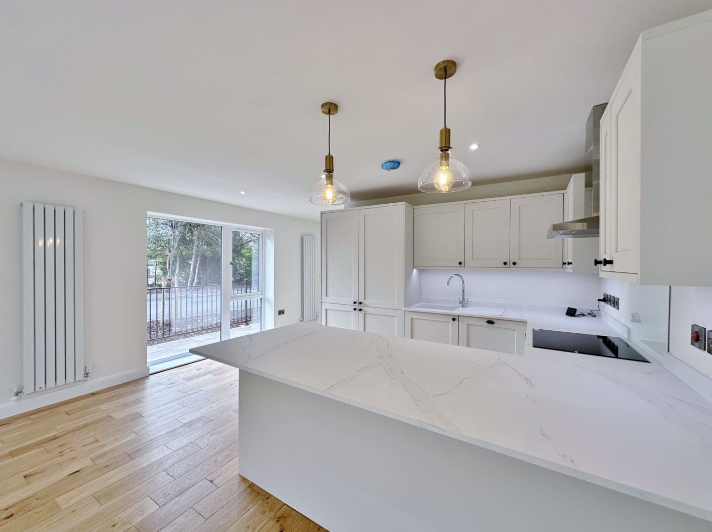 Completed to an exemplary standard, each home will be equipped with a low carbon air source heat pump which will provide cost-effective heating and hot water, while significantly reducing carbon emissions and energy bills. Fully equipped kitchens will have integrated appliances with a choice of colour available. The ground floor will boast engineered wood flooring and bi-fold doors will span the full width of the living room opening to the delightful rear gardens. Premium bathrooms will be installed in each property along with EV charger provisions.