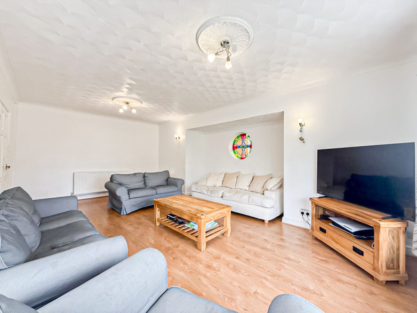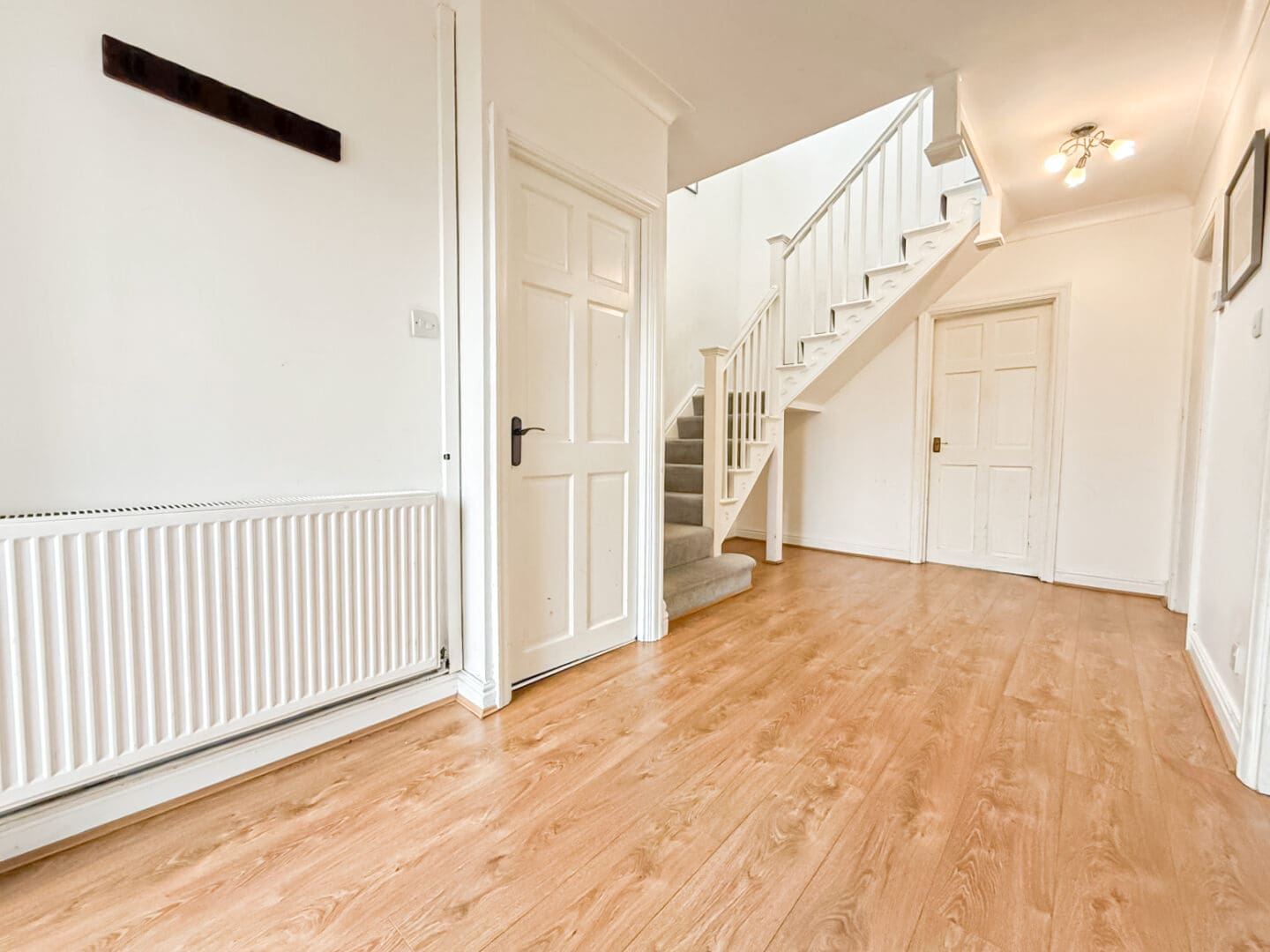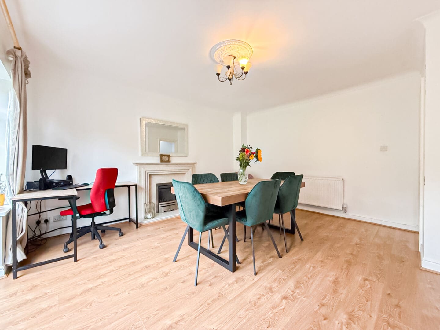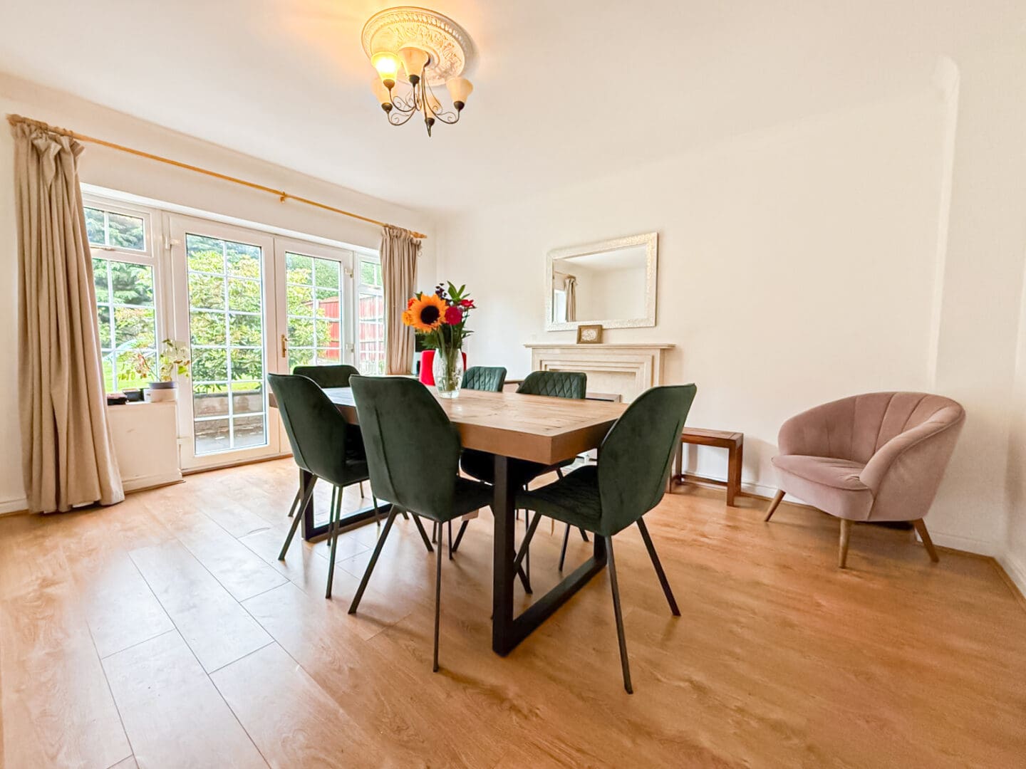 Upon entering the residence, you are greeted by an inviting entrance hall which leads through to a bright and spacious family lounge. Finished in a neutral décor featuring attractive wood style flooring, this presents a welcoming space for relaxation and entertaining. Following this is an impeccably presented dining room, enjoying a feature fireplace and a set of french doors to the rear, providing a charming setting for enjoying family mealtimes and hosting guests. Continuing through you will find a generous kitchen diner complete with a range of modern fitted base and wall units, complementary worktops providing plentiful surface space, and a selection of integrated appliances. With ample room to accommodate a dining table, this offers a social space for casual dining and cooking in company. Concluding the extensive ground floor is a convenient WC.