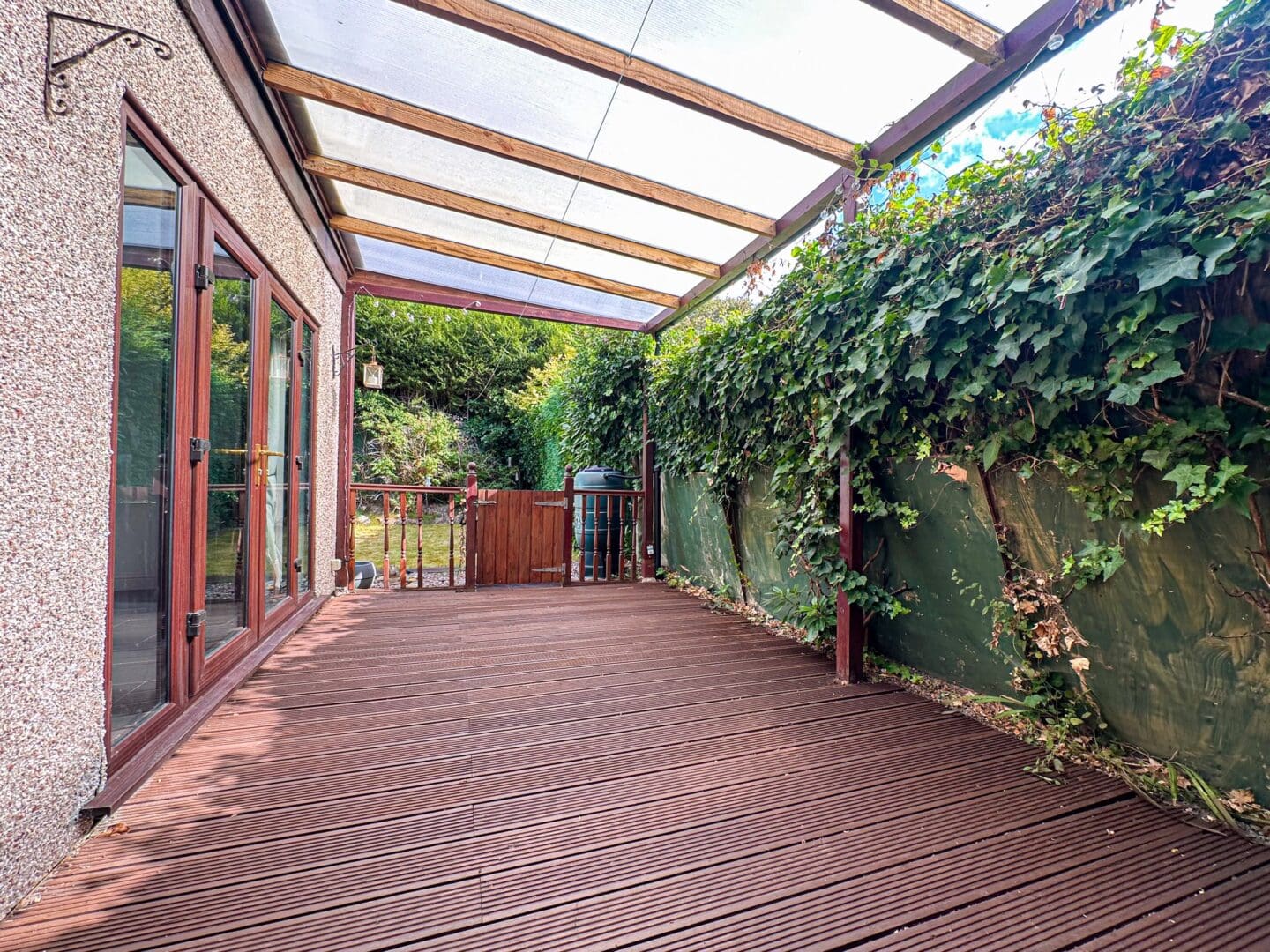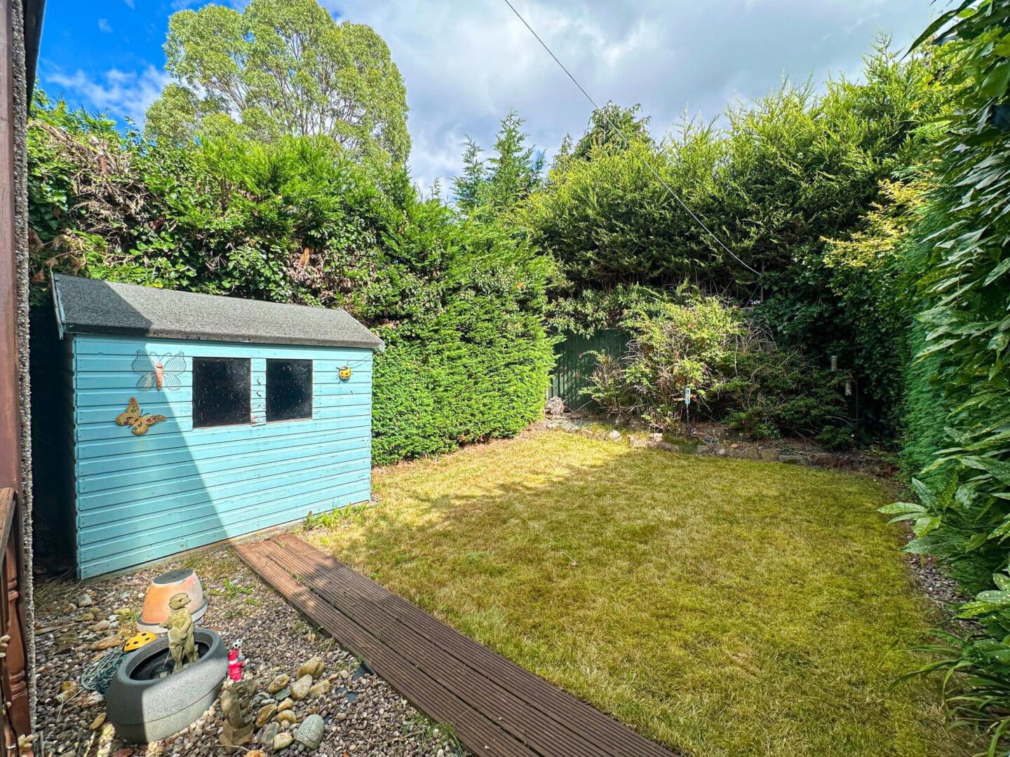 Externally the property further benefits from a delightful rear garden consisting of a neatly maintained lawn and a decking area, with established greenery borders offering privacy and seclusion. To the front, a sizable driveway provides ample off-road parking.