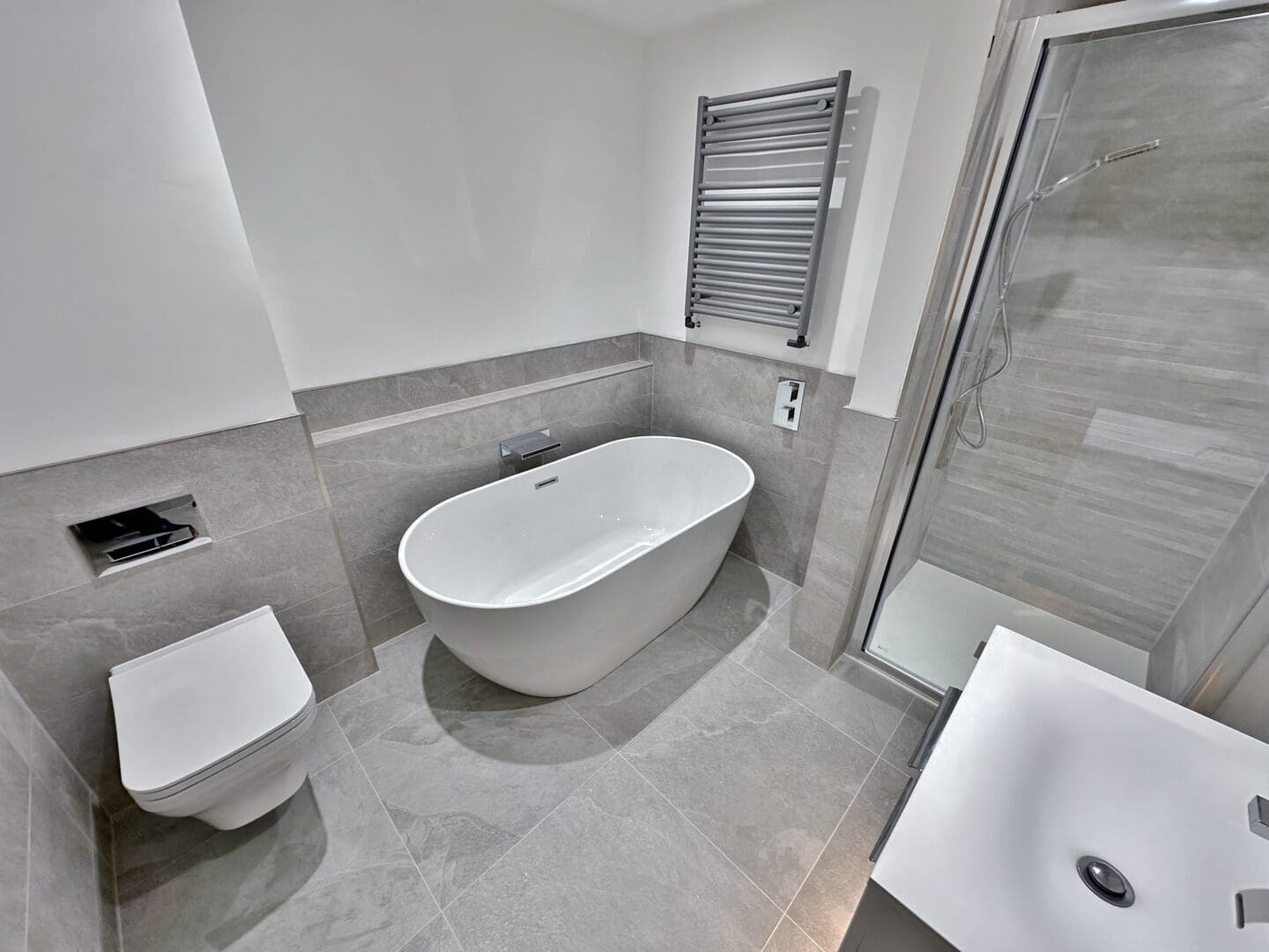 Apartment 2.. Ground floor three bedroom accommodation offering executive living space spanning approximately 1354 square foot all with a flawless finish. Briefly comprising a hallway, two storage cupboards, impressive open plan living kitchen dining room with bi-folding doors to a private terrace and utility room off. Master bedroom with en suite, second double bedroom with ensuite, third bedroom and bathroom.