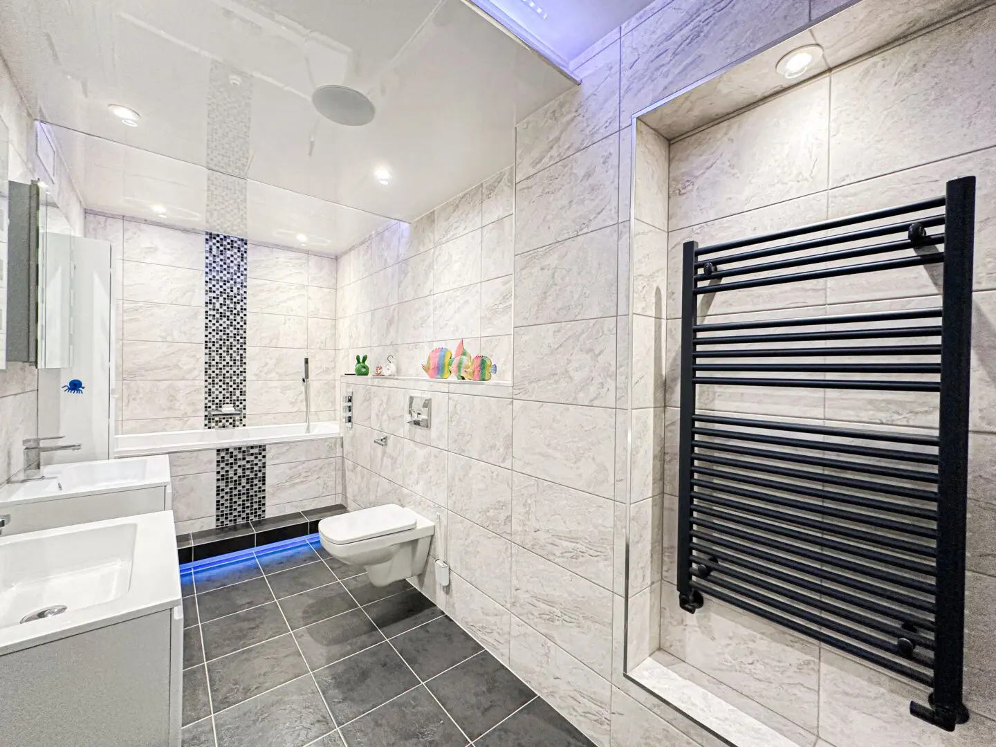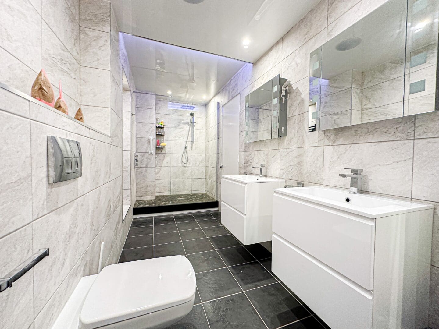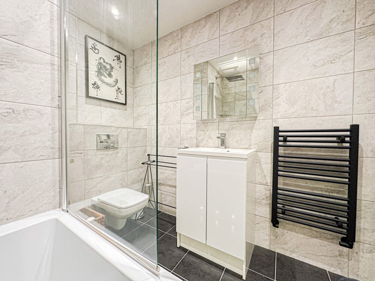 The apartment offers three generously proportioned bedrooms, two of which include walk-in wardrobes and luxurious en suite bathrooms, the third can alternate as a study or office. The master suite is a sanctuary in itself, boasting a sumptuous en suite with double sinks, bath and walk-in rain shower; bath mirrors with built-in TVs and underfloor heating add a touch of modern indulgence. The third is a shower room that further enhances flexibility for family or guests. Additionally, there is a sizable external storage room along the passage, and two allocated basement parking spaces, accessed via an adjacent lift.