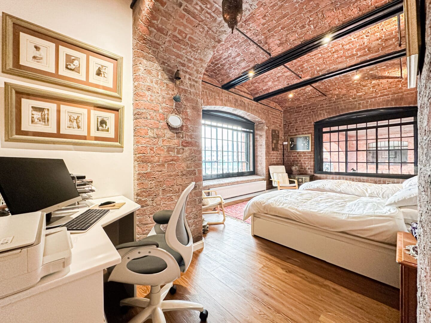 Access to the 115 individual apartments, each of unique layout located on four floors, is by four lifts, from which wind carpeted corridors, the walls adorned with photographs of old and memorable vessels that frequented the port and docks over many years. The emotion is that of a 5-star self-catering hotel suite, its exposed brick walls and high vaulted ceilings providing sonorous acoustics for the wonderful enjoyment of music.