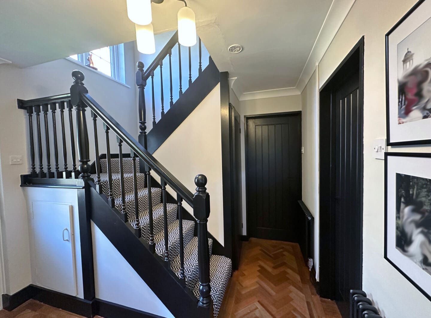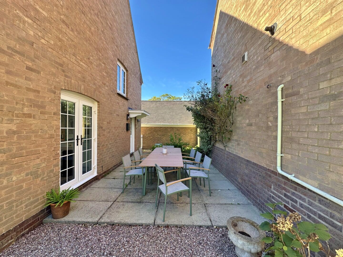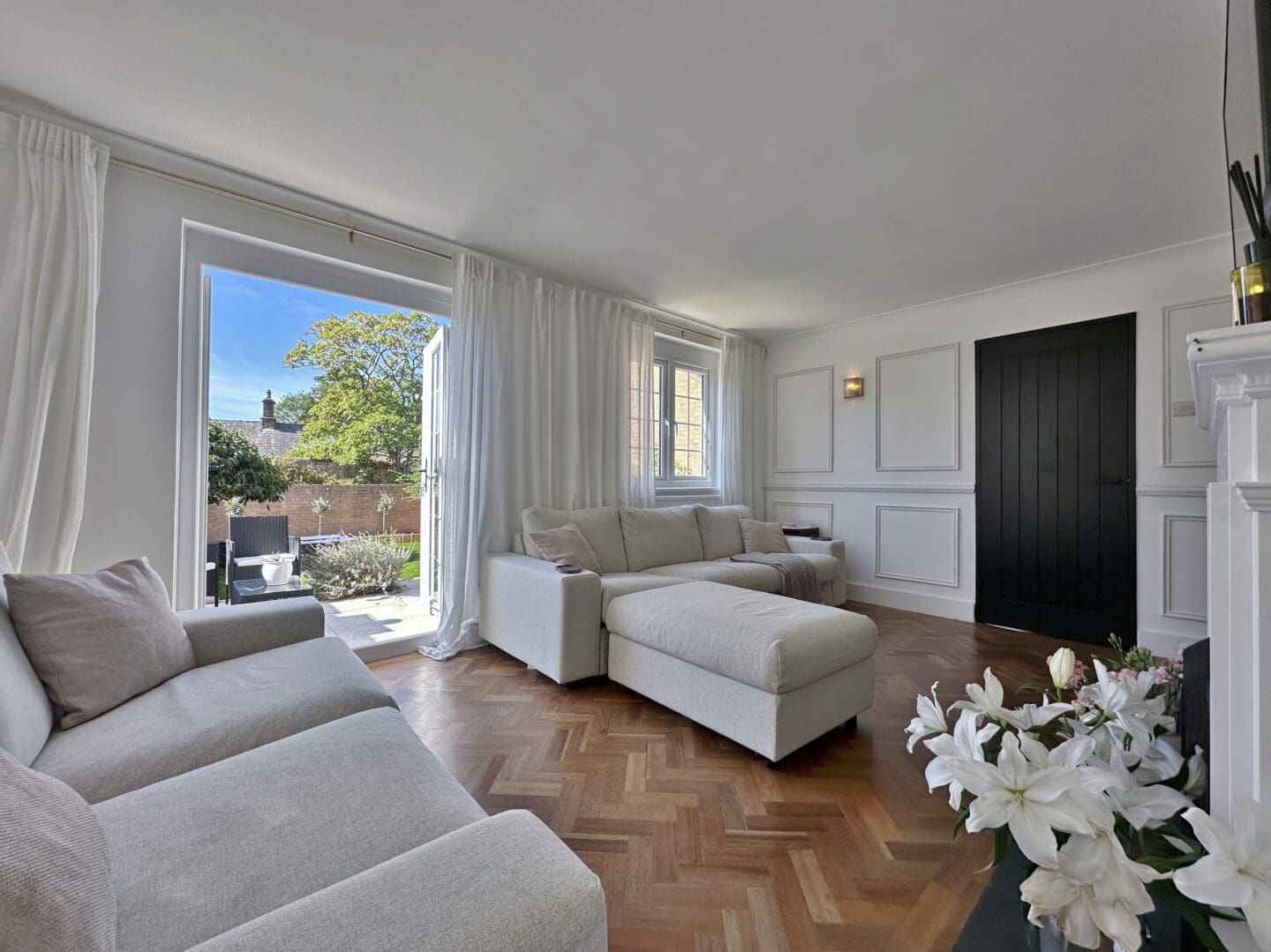 The property enjoys a beautifully landscaped private front garden with lawn and porcelain tiles, perfectly positioned to make the most of a sunny aspect. To the rear, the home benefits from direct access onto a tranquil communal green, creating an idyllic backdrop and a sense of peace rarely found in such a prime location.