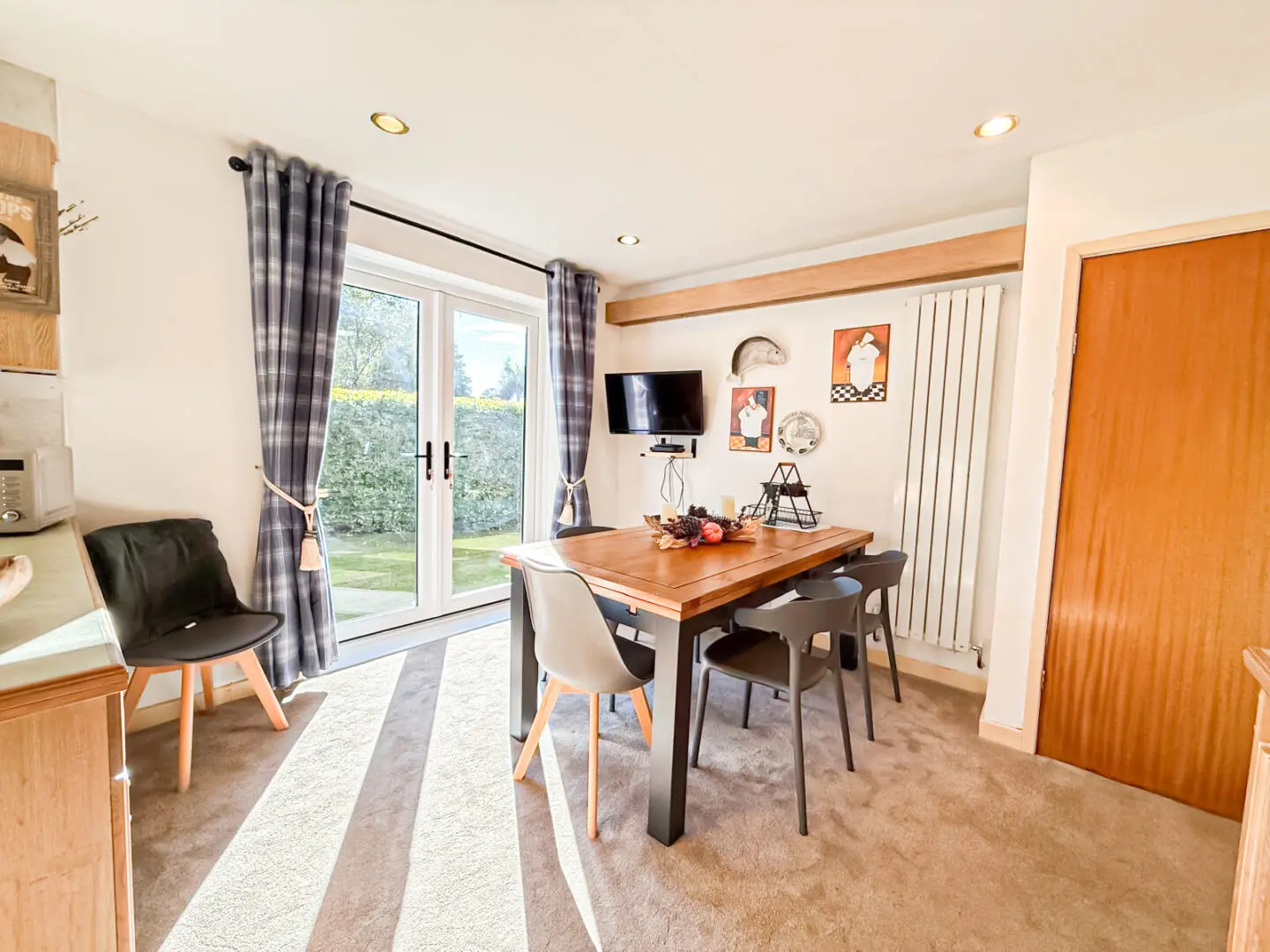 Entering via the porch, you are greeted into the home by an inviting entrance hall, which leads through to a spacious family lounge. Impeccably finished in a tasteful décor boasting plush carpeting and a feature fireplace, this provides a welcoming space to relax and entertain guests. Following this is a generous kitchen diner complete with a range of fitted base and wall units and plentiful worktop space. The dining area enjoys french doors providing views and access out to the rear garden, offering the ideal setting for sharing mealtimes and cooking in company. The sleeping accommodation consists of two well-proportioned double bedrooms, each finished to an excellent standard and receiving plenty of natural light. Accompanying the bedrooms and adding the finishing touch to the interior of this lovely home is a shower room alongside a separate WC.