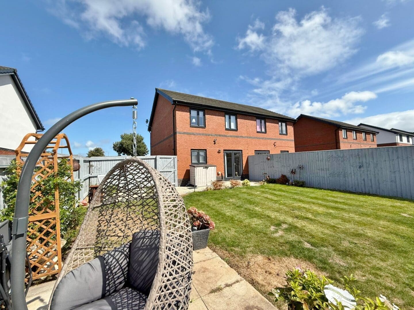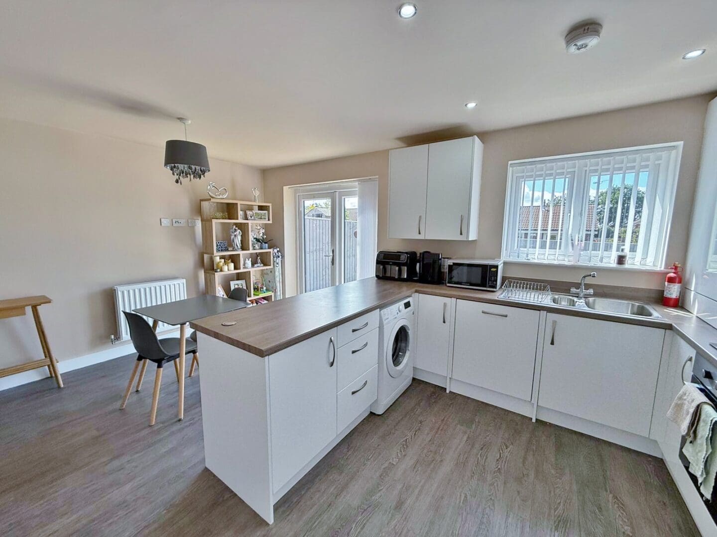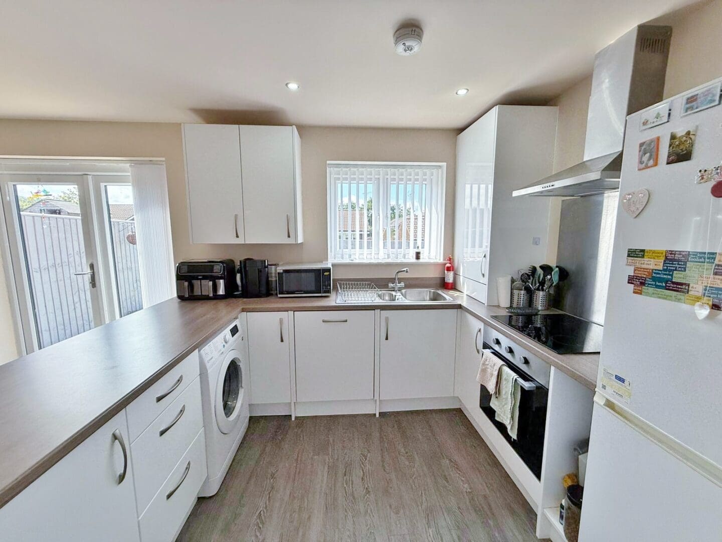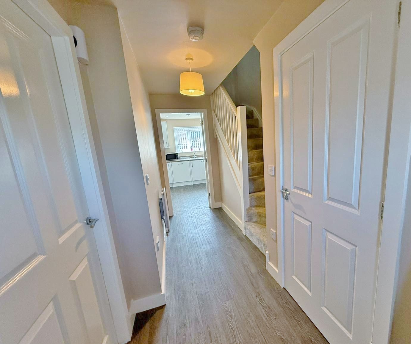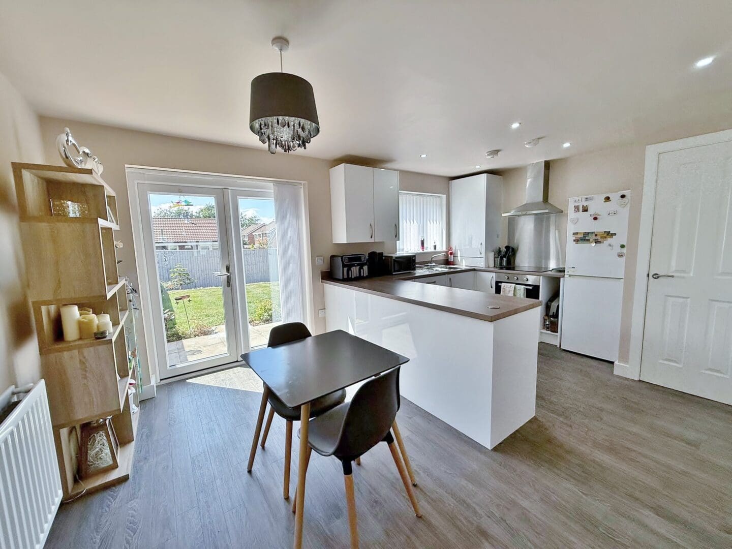 Immaculately presented throughout with a fresh and neutral décor, the property offers a well planned layout perfect for modern family living. Upon entering, you are welcomed by an inviting hallway that leads into a spacious open plan living, kitchen and dining area. The modern fitted kitchen is complemented by integrated appliances and flows effortlessly into the dining and lounge space, with patio doors opening onto a delightful rear garden, ideal for both everyday living and entertaining. To the first floor, you will find three well proportioned bedrooms, including a master with en suite shower room, as well as a contemporary family bathroom. Externally, the home benefits from ample off road parking, a front garden, and a large enclosed rear garden that enjoys a private aspect. Featuring a patio and a neatly lawned area, this outdoor space is perfect for summer gatherings or simply relaxing in peace.