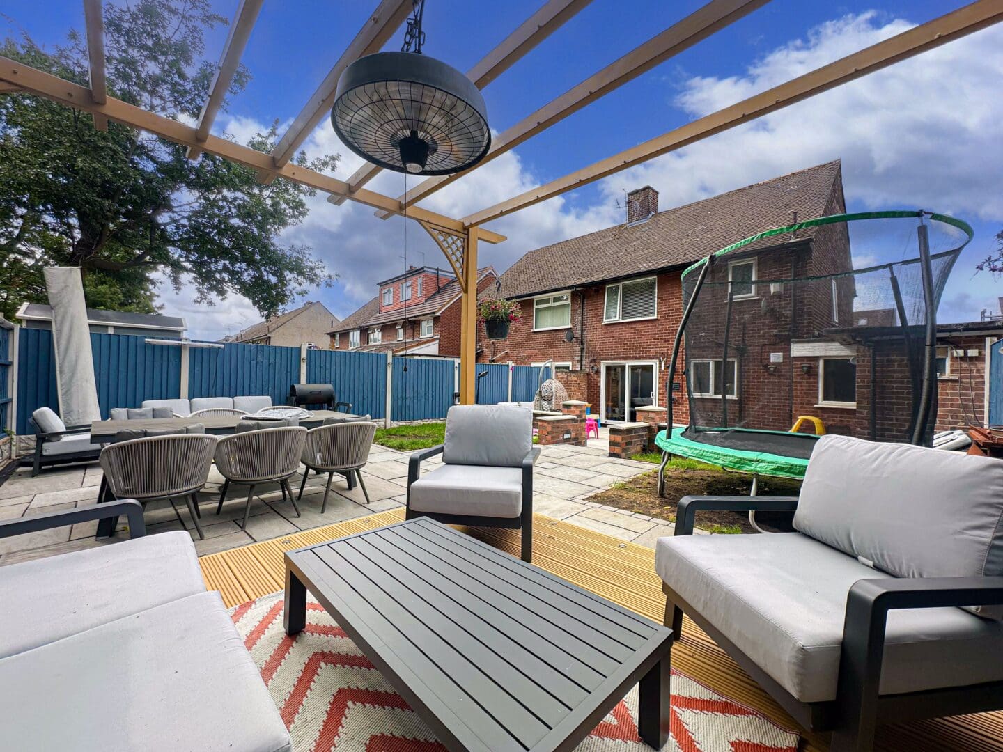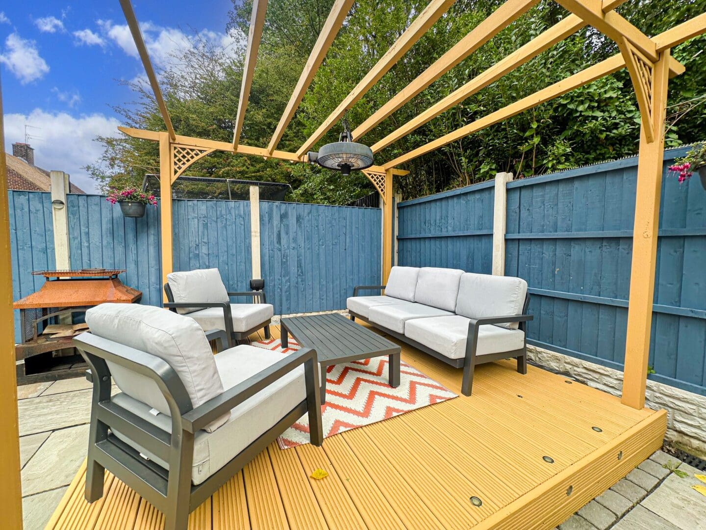 Externally, the property is enhanced by a substantial rear garden which has been smartly flagged to provide the ultimate outdoor entertaining space, complete with a pergola. Backing onto Court Hey Park, the garden further benefits from not being overlooked, and enjoys direct access into the park. To the front, a driveway accommodates off-road parking, and an integral garage offers additional storage space.