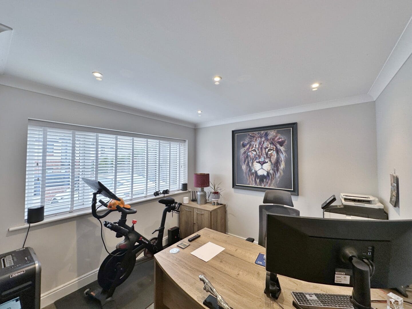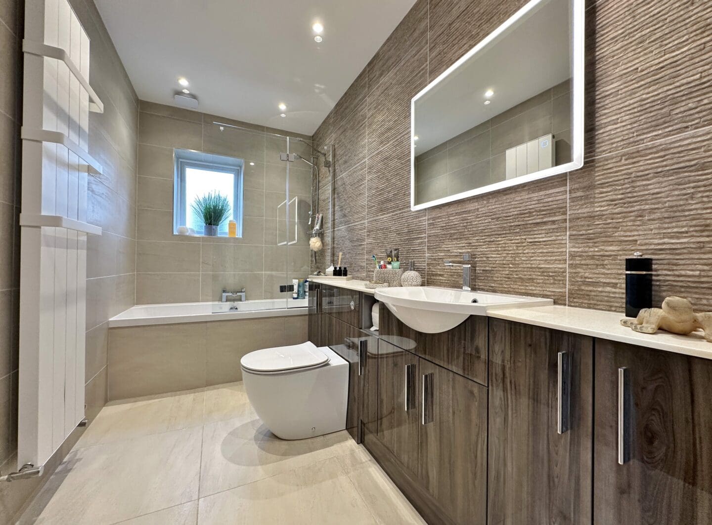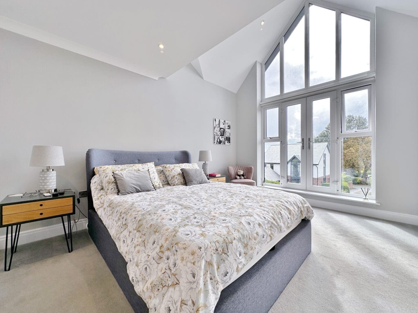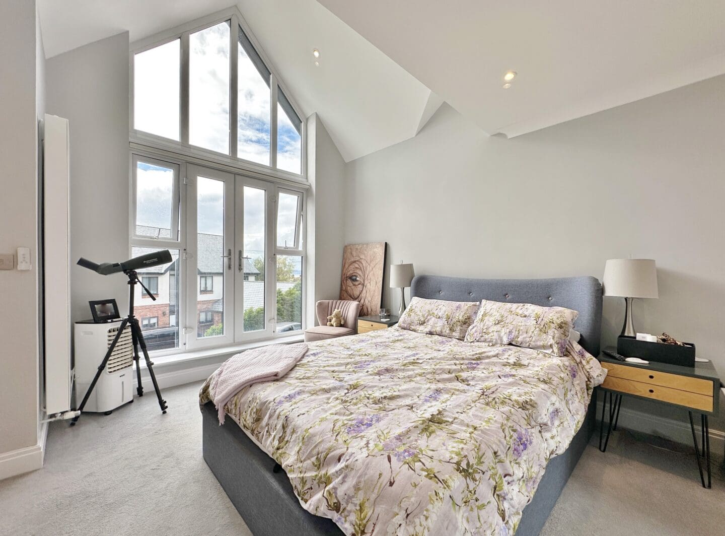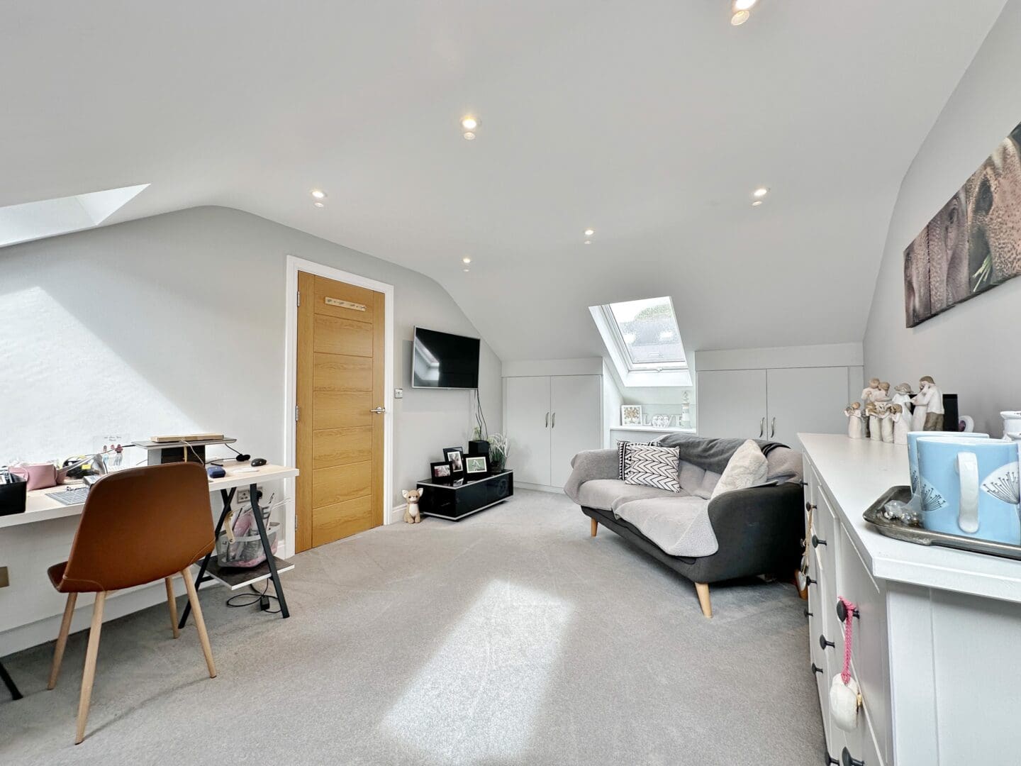 Inside, the accommodation is spread over three floors. The ground level is centred around a striking open plan living, dining, and kitchen area, complete with a large island and high end appliances. Bi-folding doors open out onto the rear garden, which has been designed for entertaining and relaxation, featuring porcelain paving, mature planting, a pergola, and hot tub. A separate lounge with a log-burning stove, a home office, a utility room, and a shower room complete this floor. The first floor offers a superb master suite with Juliet balcony, a walk through dressing area (which could be converted back into a bedroom), and an adjoining en-suite. Two further bedrooms share a modern shower room. On the top floor are two additional doubles with fitted storage and wonderful views extending towards Wales, along with another stylish shower room.