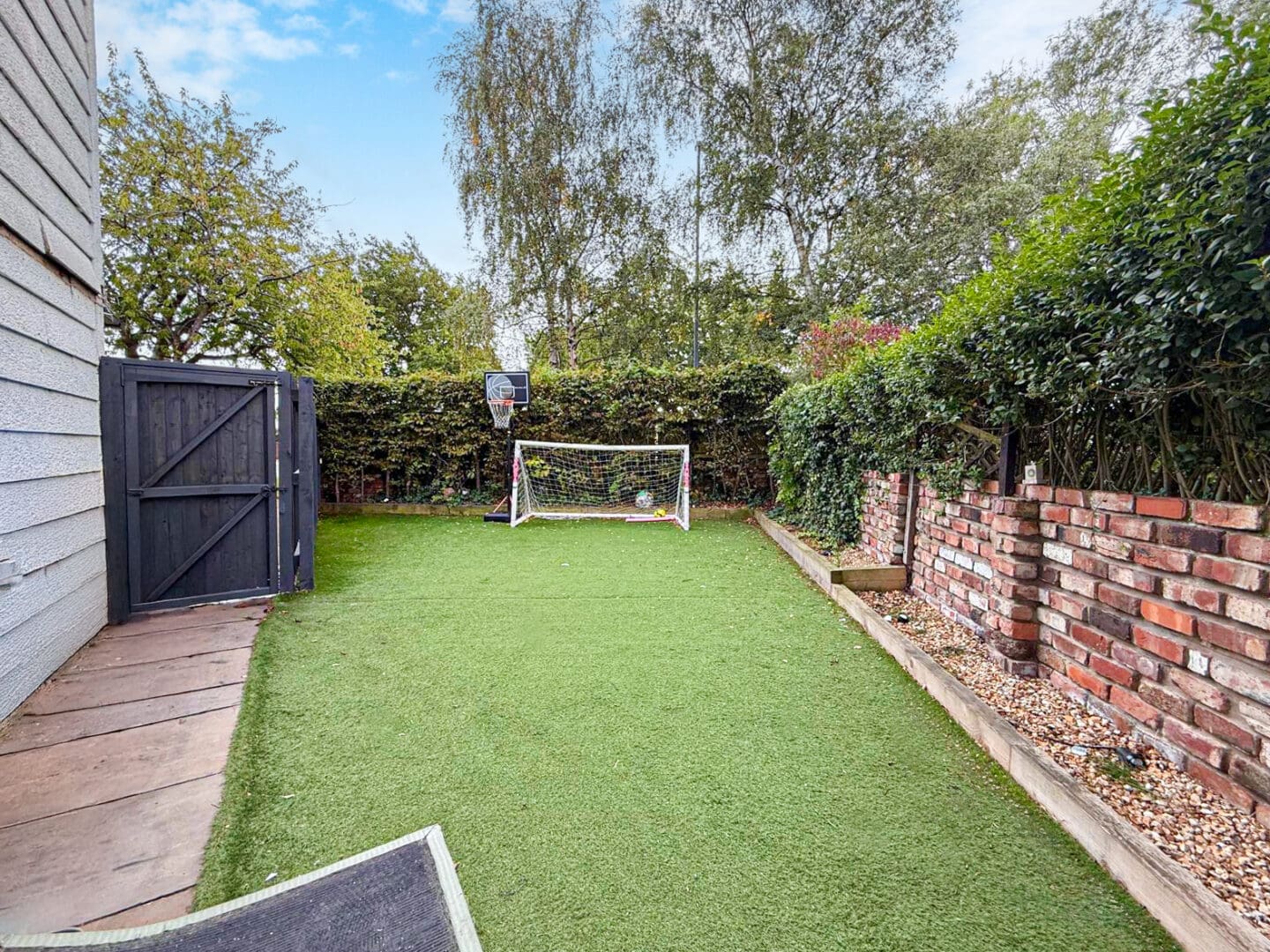 Externally, the property further benefits from a sizable rear garden, consisting of a lawn and raised decking area, along with an artificial grass area to the side, offering a fantastic outdoor space for the whole household to enjoy. To the front, a driveway provides ample off-road parking.