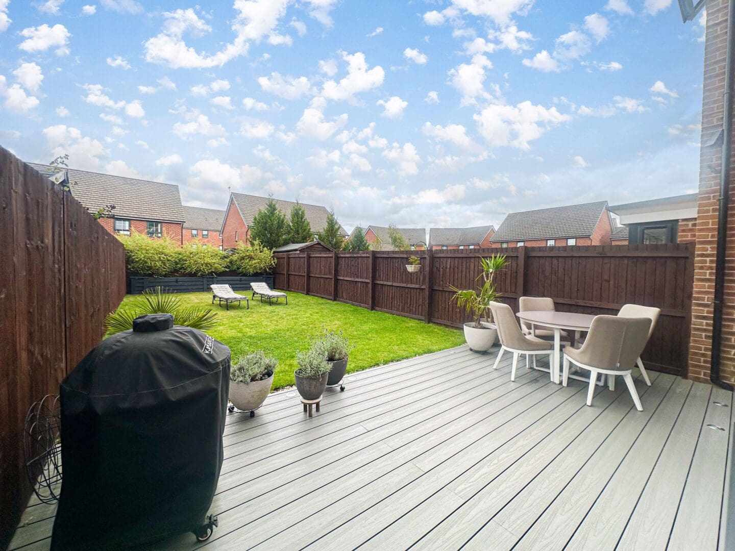 Externally, the property further benefits from a sizable rear garden which offers a fantastic outdoor space for the whole household to enjoy, made up of a neatly maintained lawn and raised decking area. To the front, a driveway provides ample off-road parking.